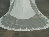 Lace veil of 1.5 meters wide and 3 meters long, with elegant lace-trimmed edges for a touch of romance. It is finished with a chrome fastening at the top, making it a perfect choice for ...