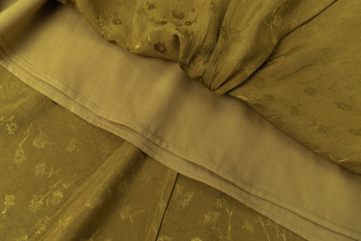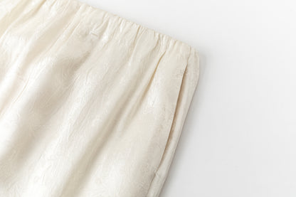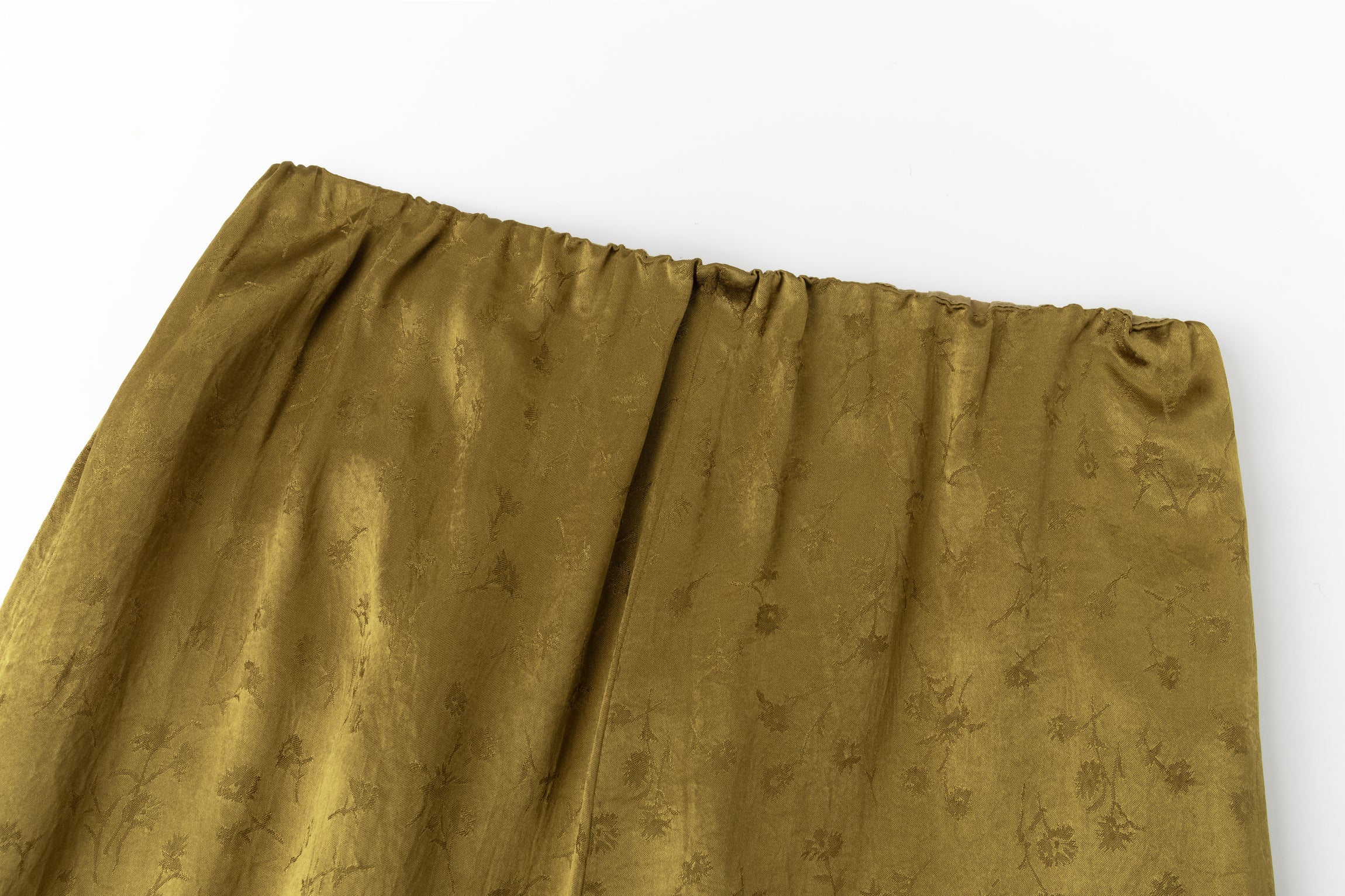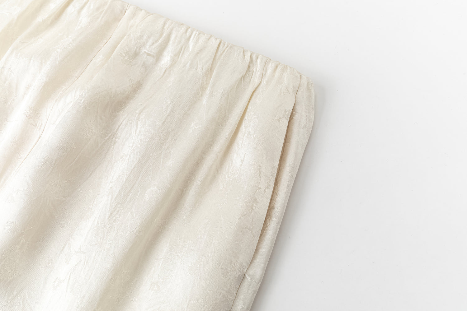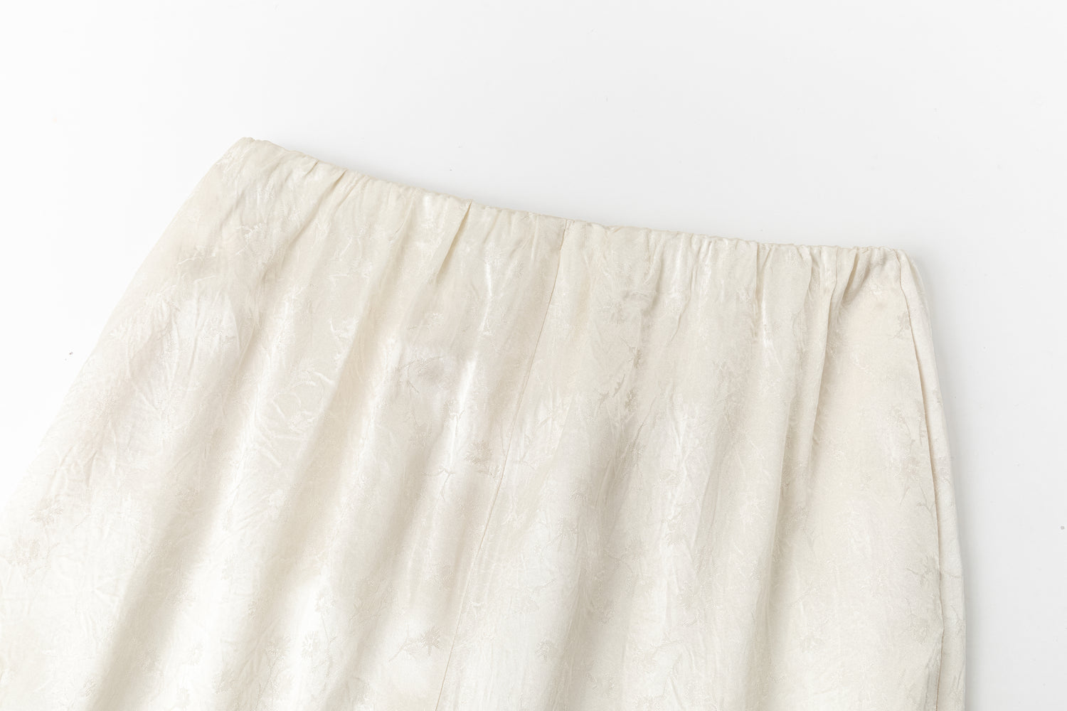 Matching long skirt designed to complement the halter-neck dress. Features a flowing, floor-length silhouette that drapes beautifully, echoing the diagonal cut and delicate floral motifs...