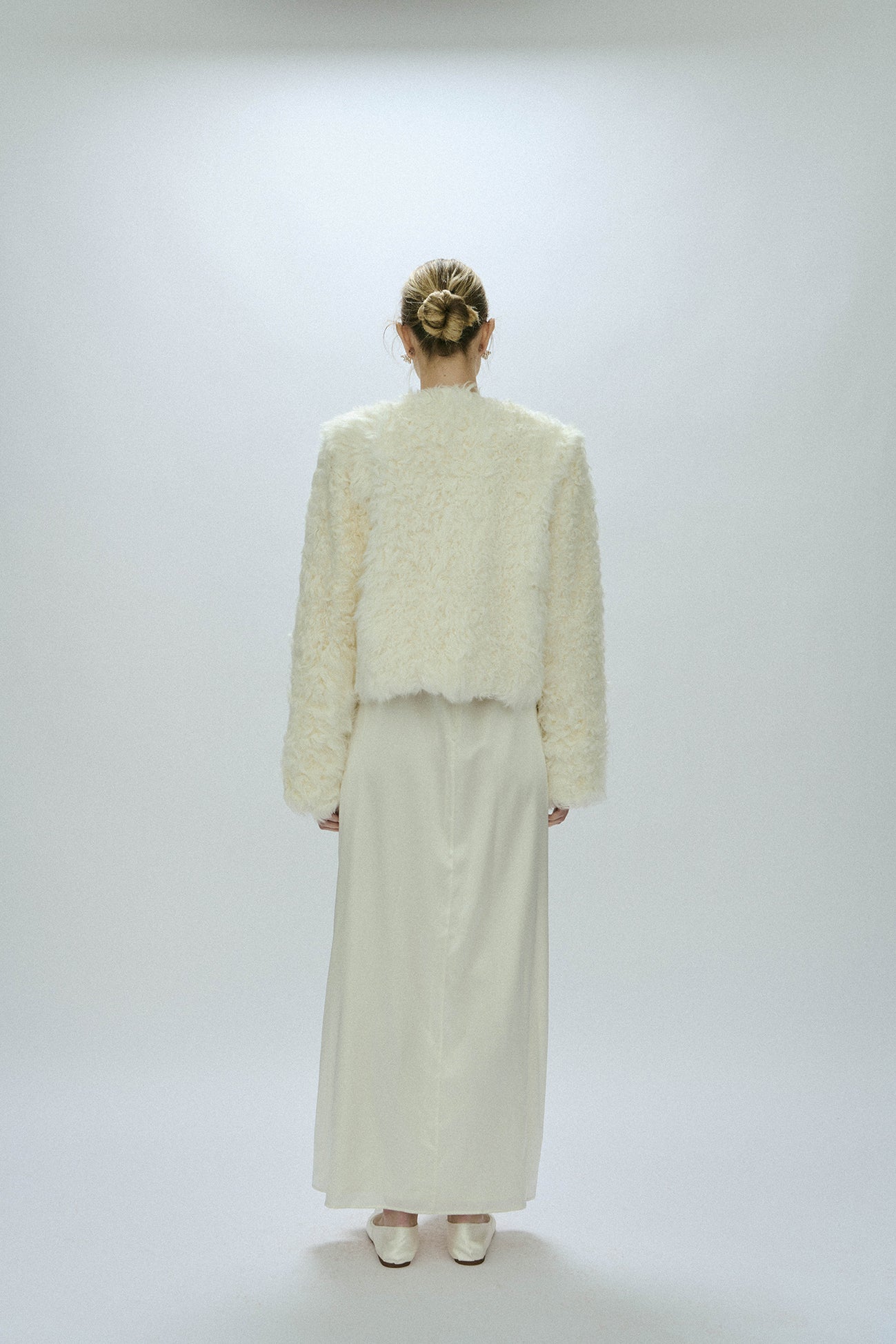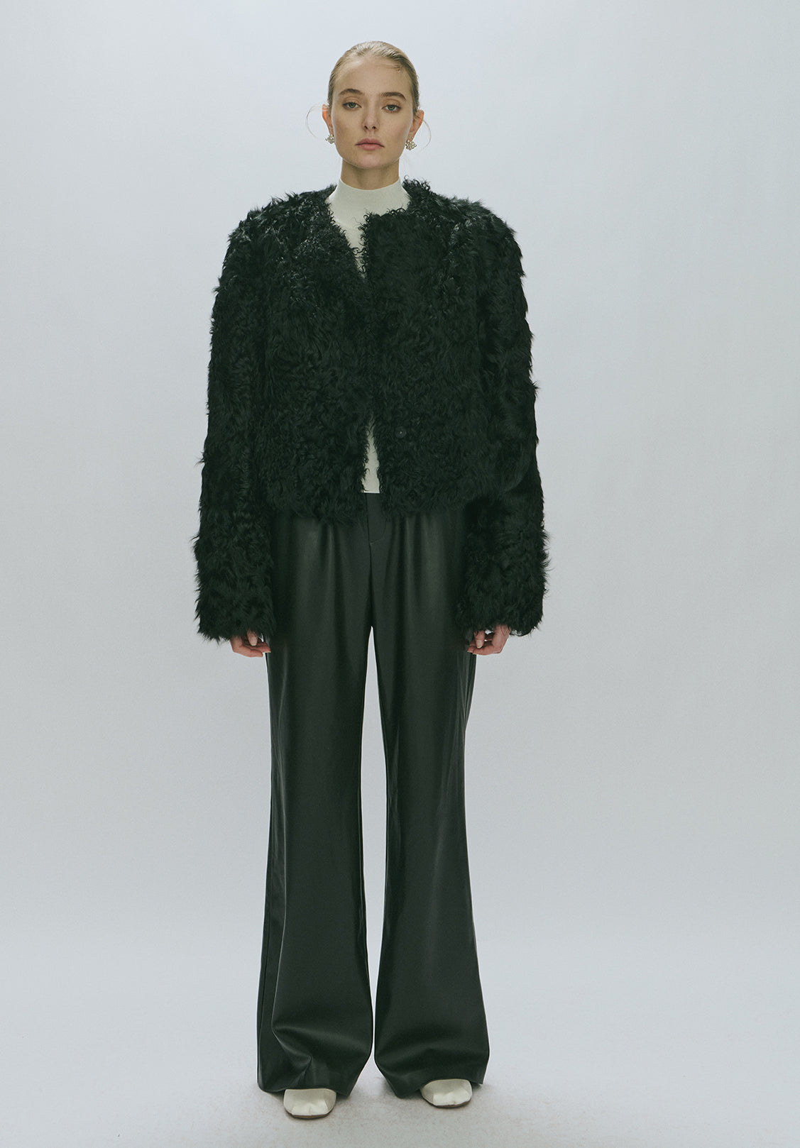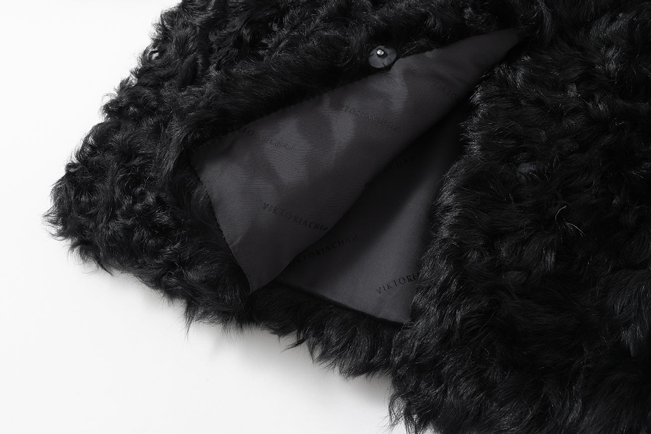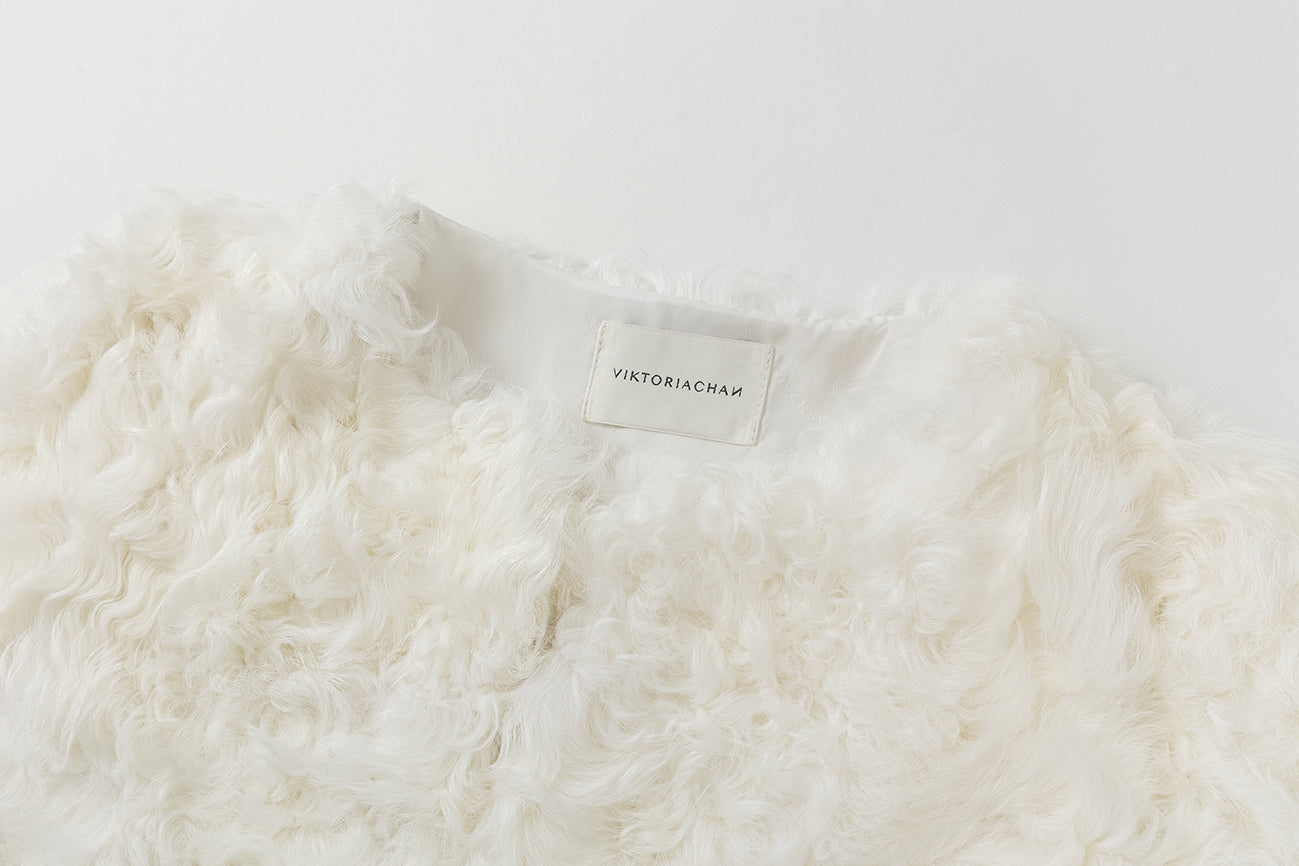 Sherling jacket in short model. Fits oversized in style. Light padded lining. Comes in ivory and black with buttons in the front and pockets. The must have jacket that fits with everythi...