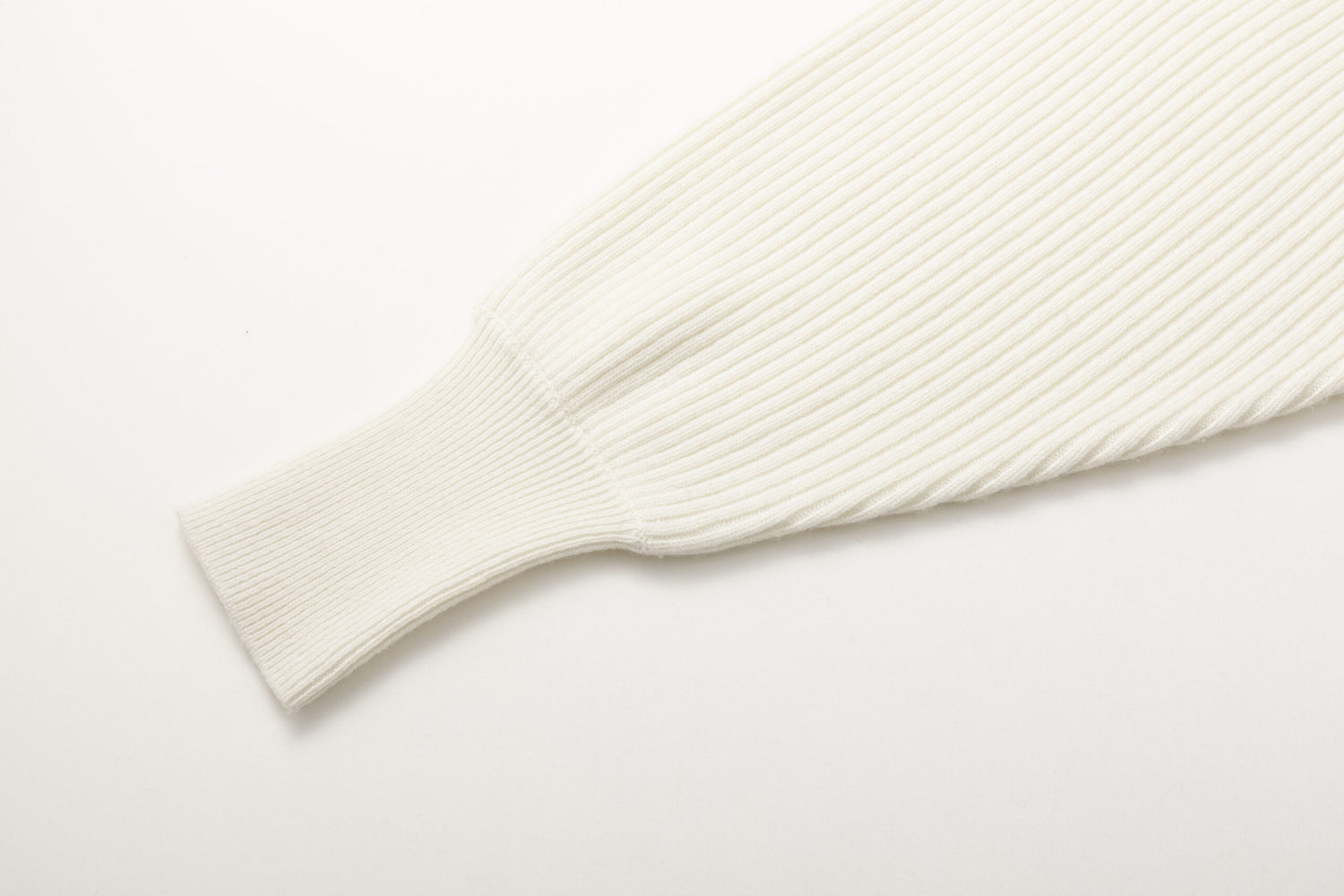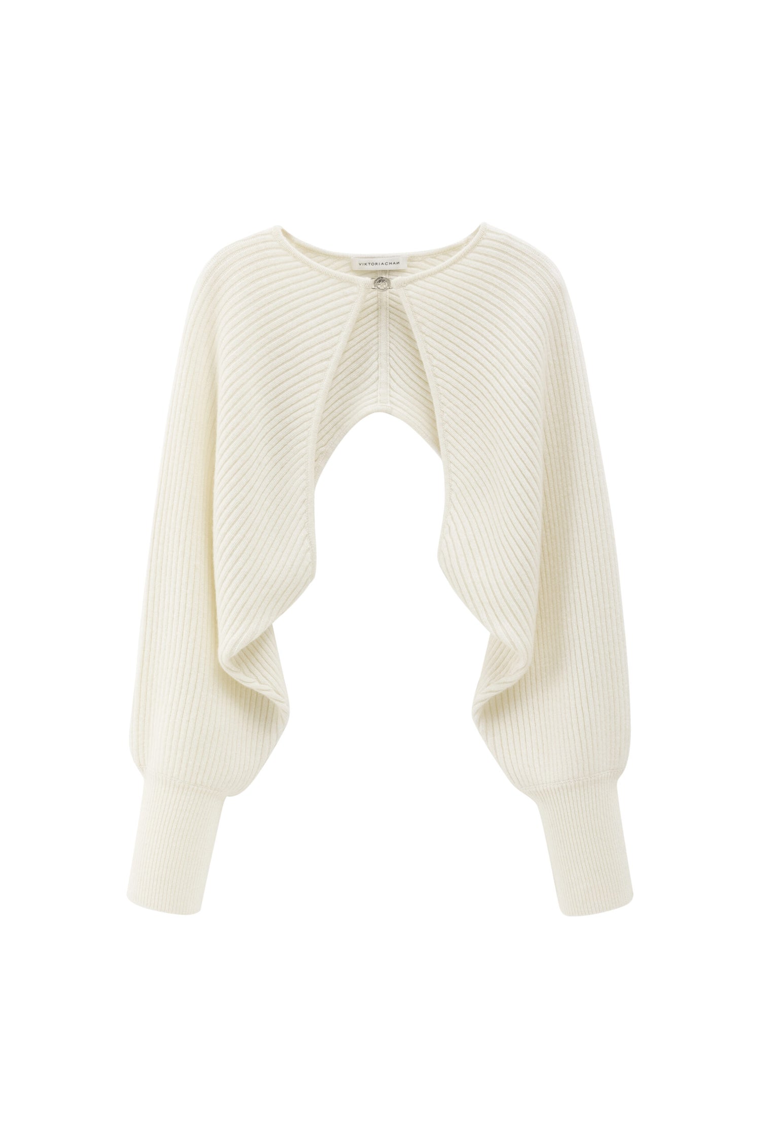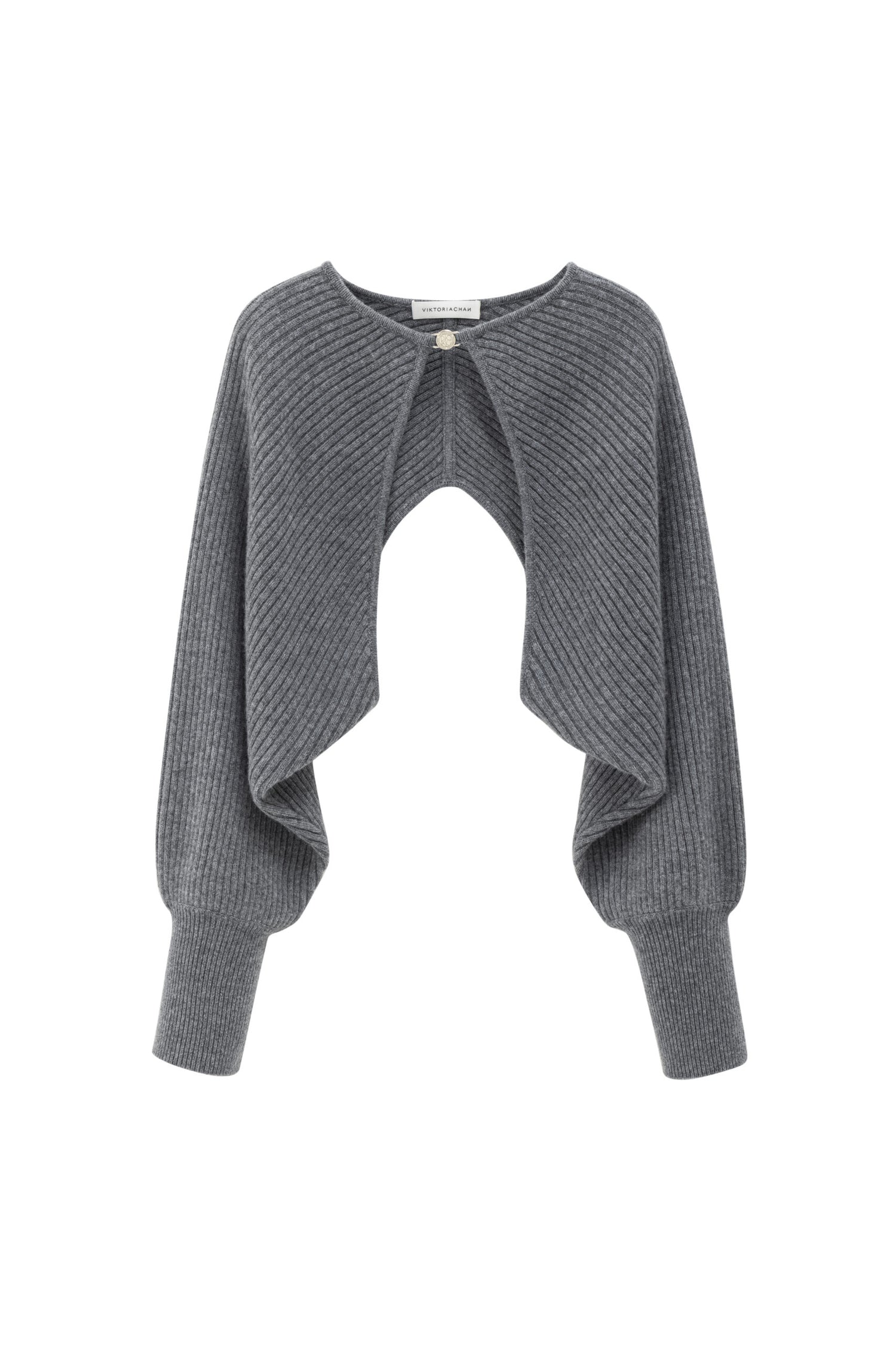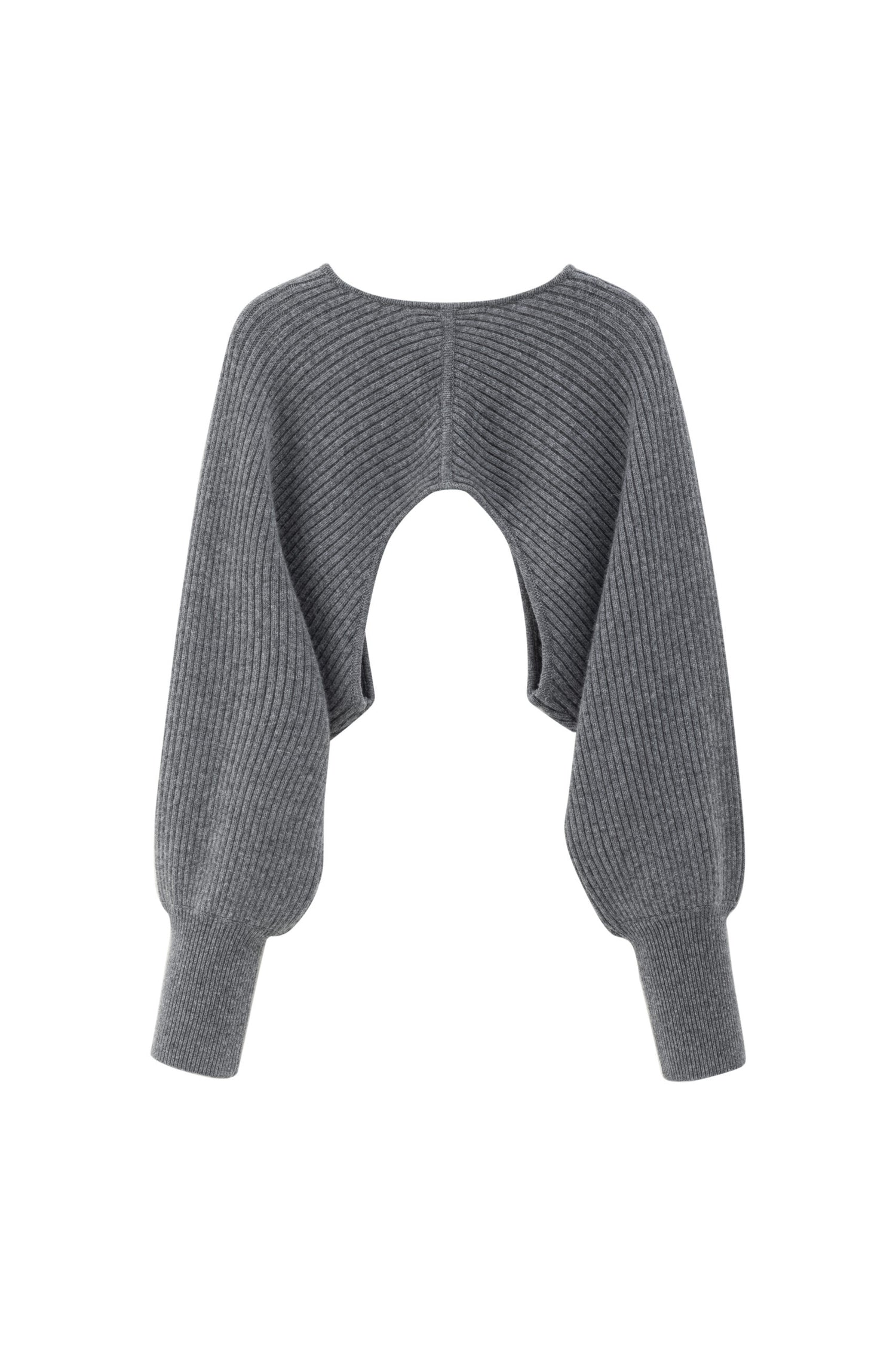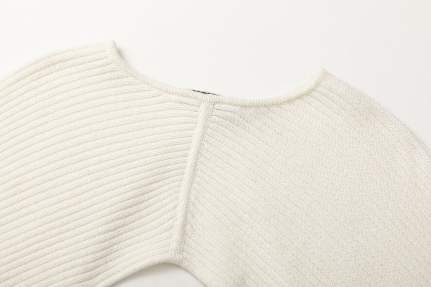 Two peice knit top with a cape like sleeve pullover to be worn either front or back. Logo detail in the front. Small cuffs creating a balloon ish effect. Small fitted tank worn as turtle...