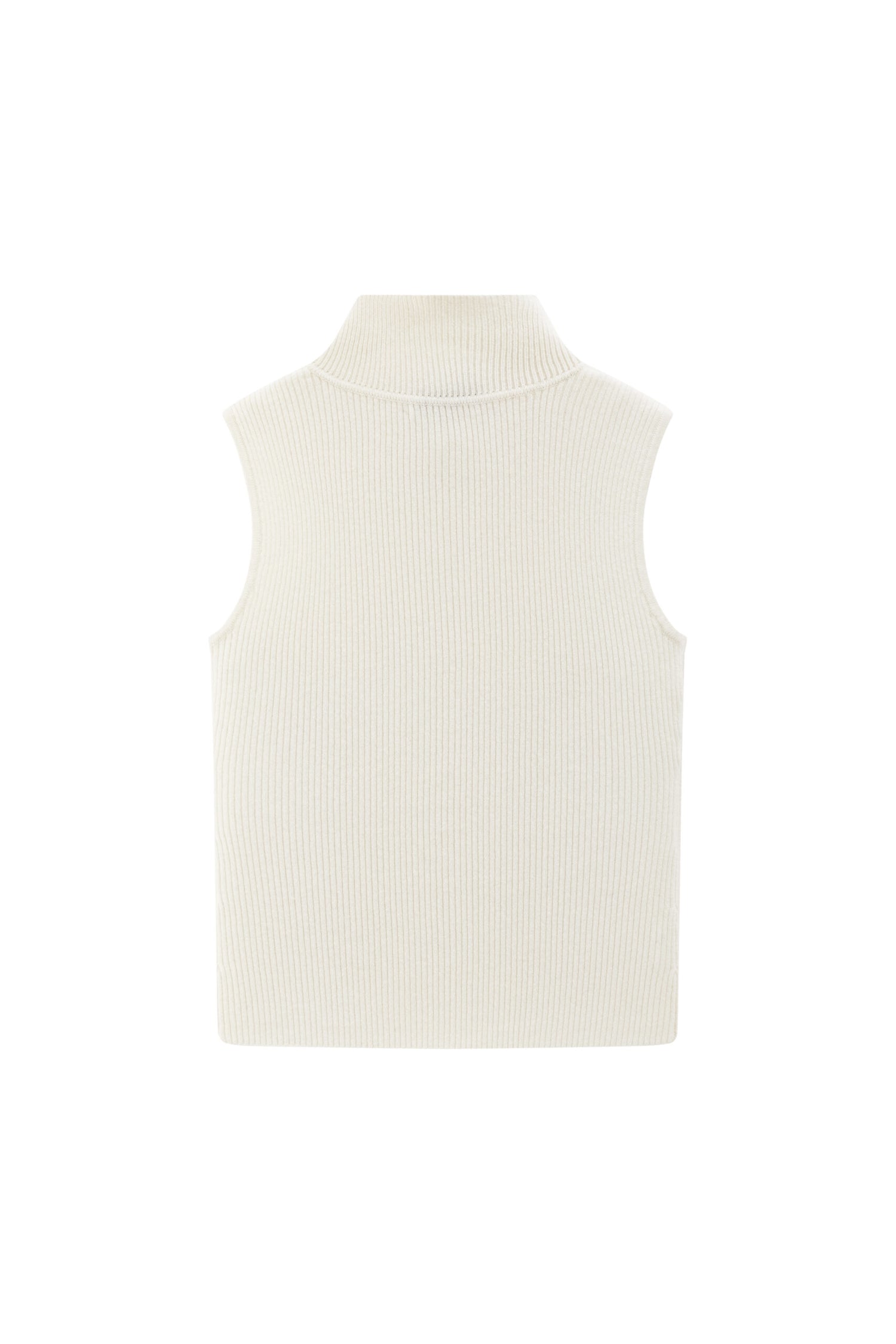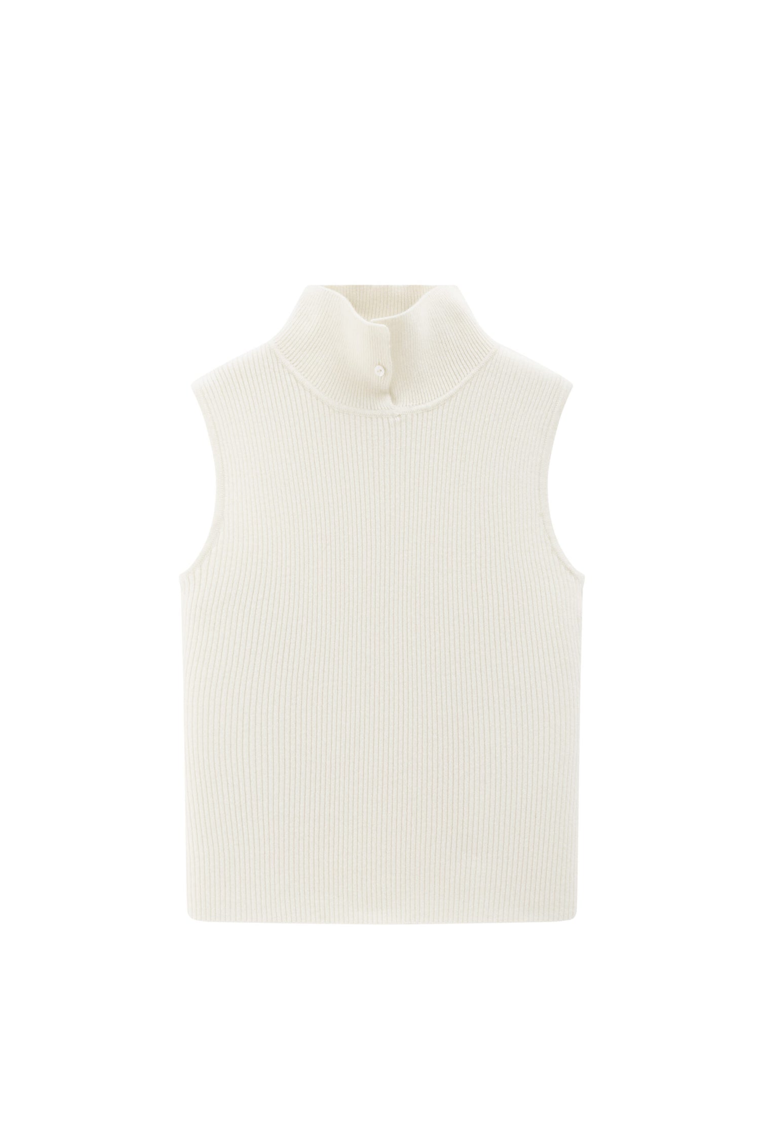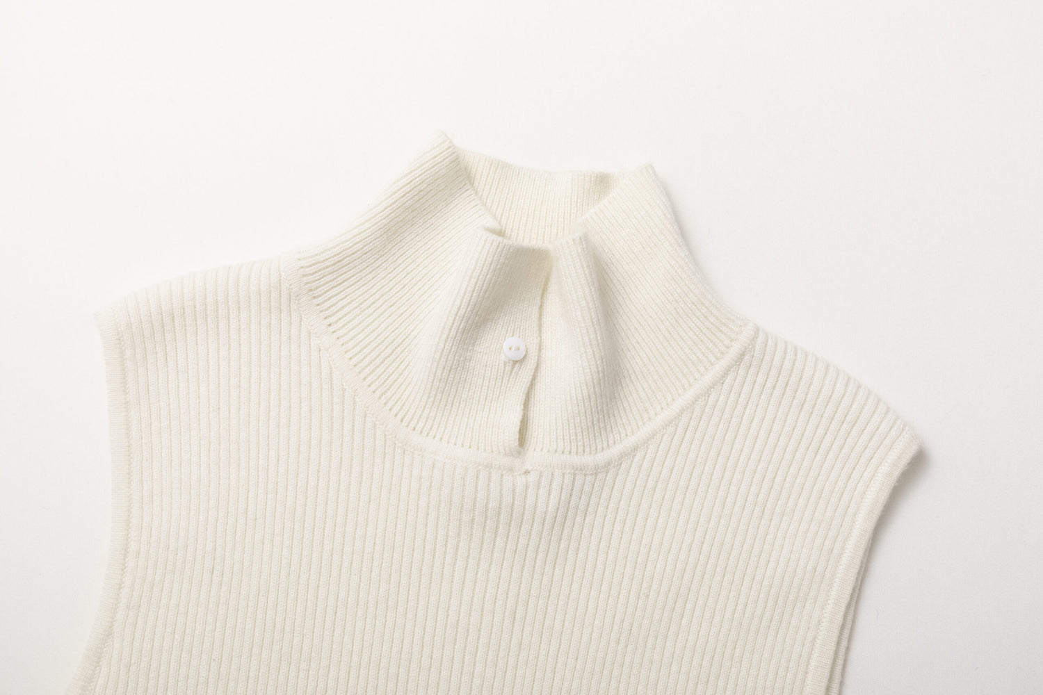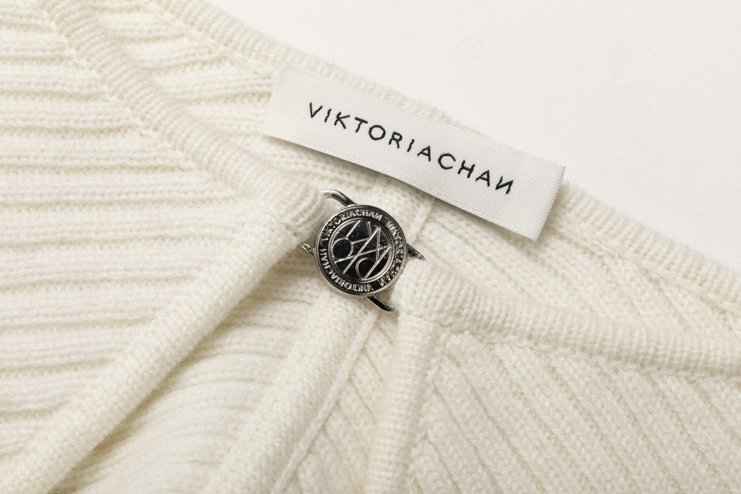Two peice knit top with a cape like sleeve pullover to be worn either front or back. Logo detail in the front. Small cuffs creating a balloon ish effect. Small fitted tank worn as turtle...