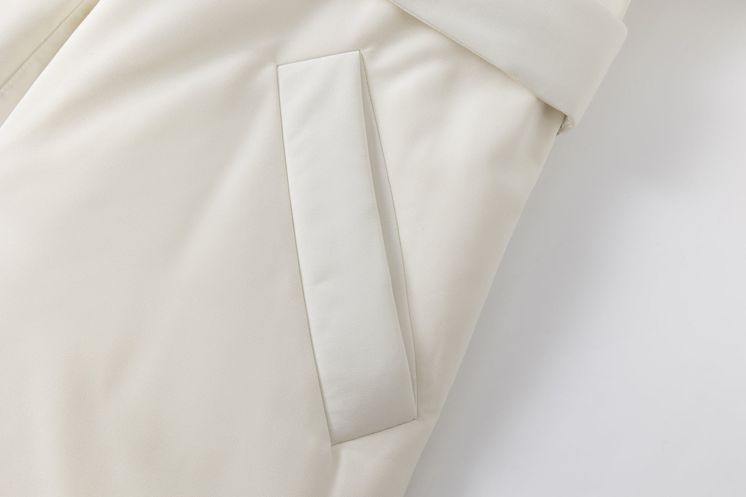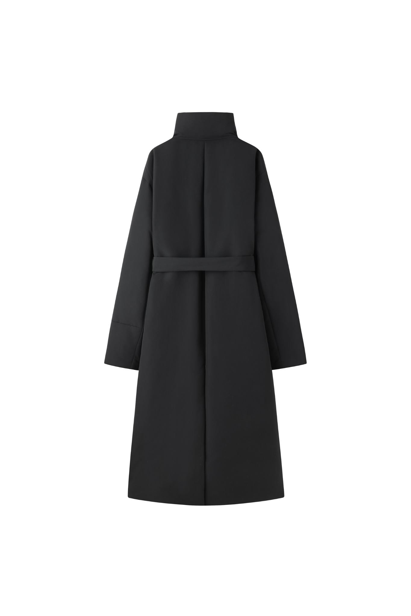 Long Down Jacket, designed for ultimate warmth and style. This jacket features a sleek, minimalist silhouette with a high collar and a detachable belt, knotted at the front for a customi...