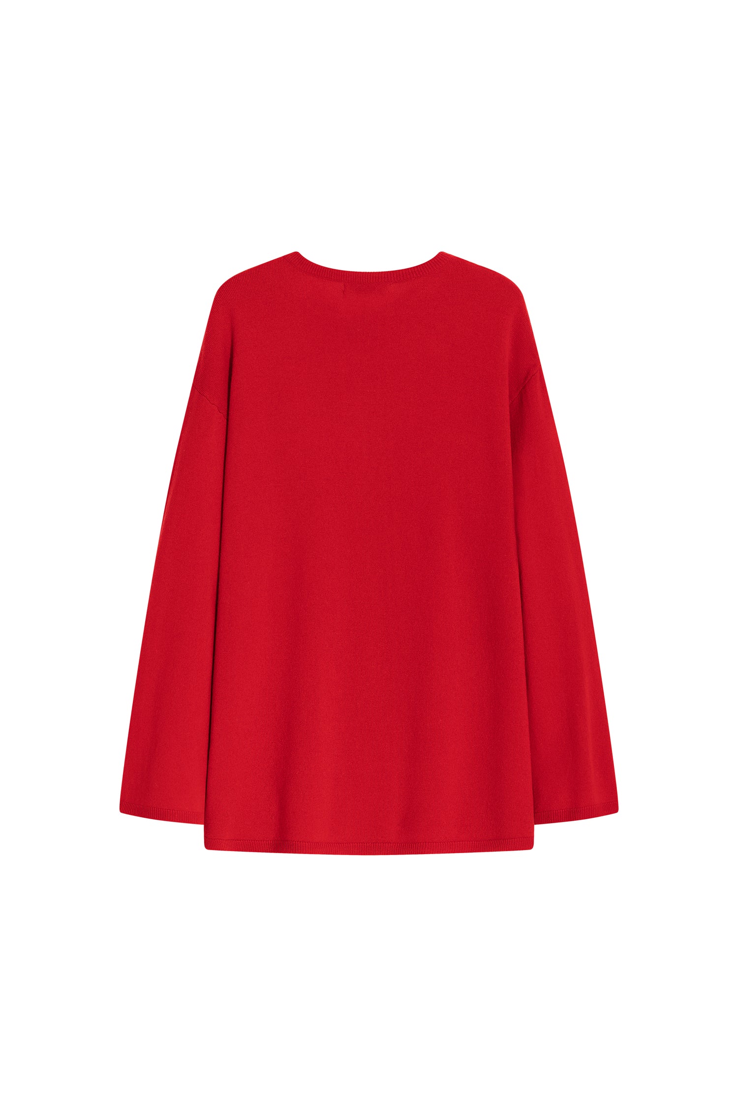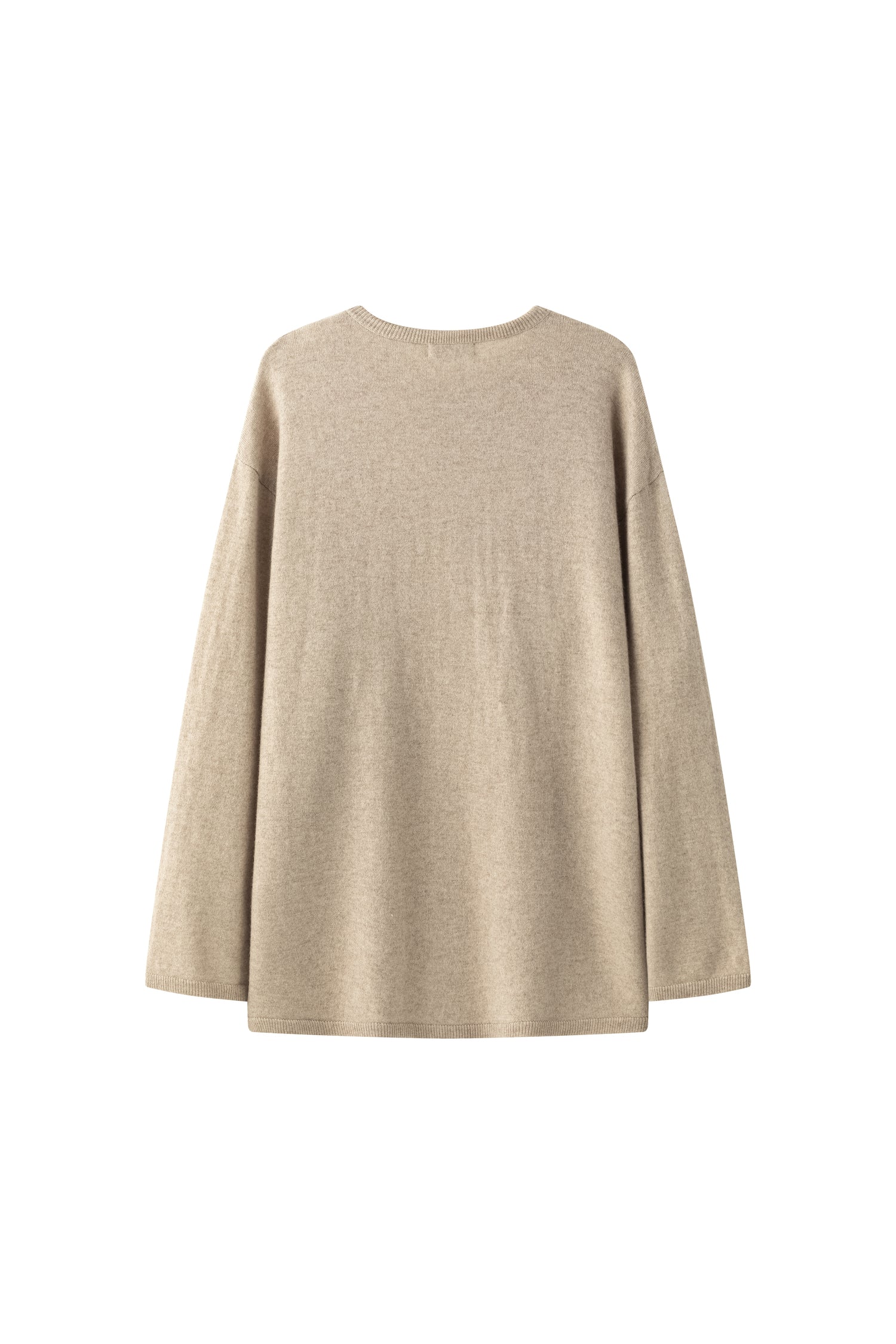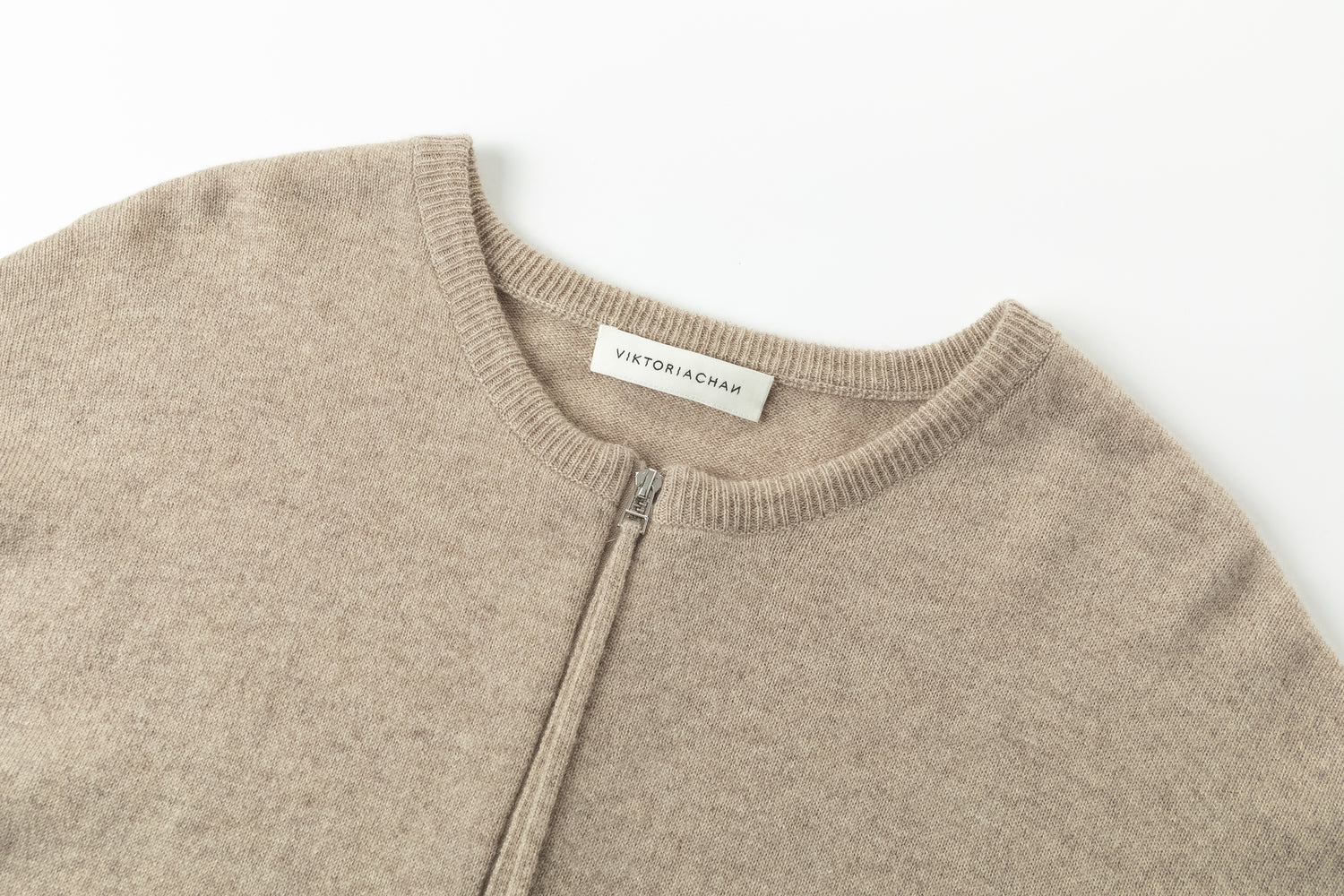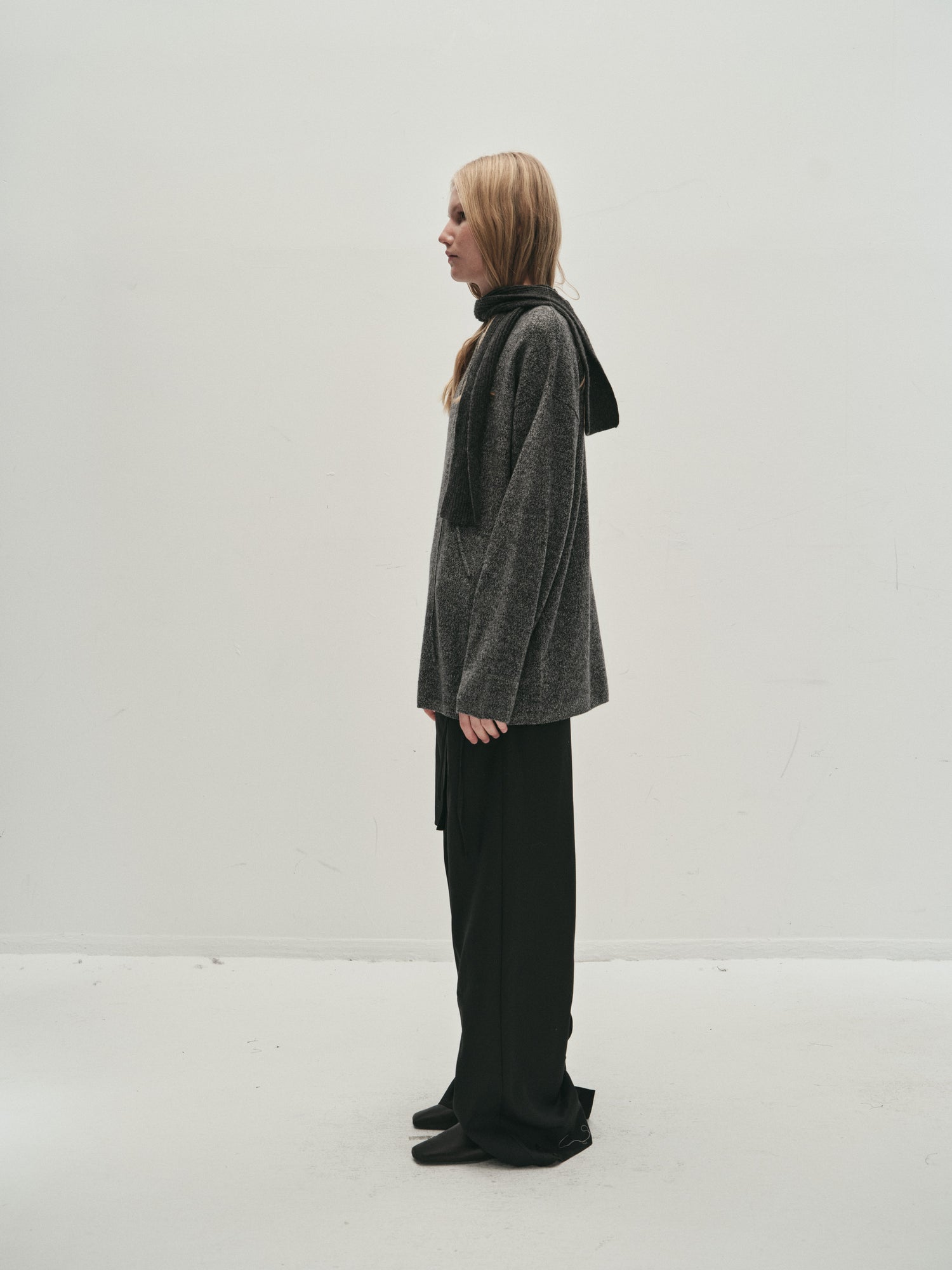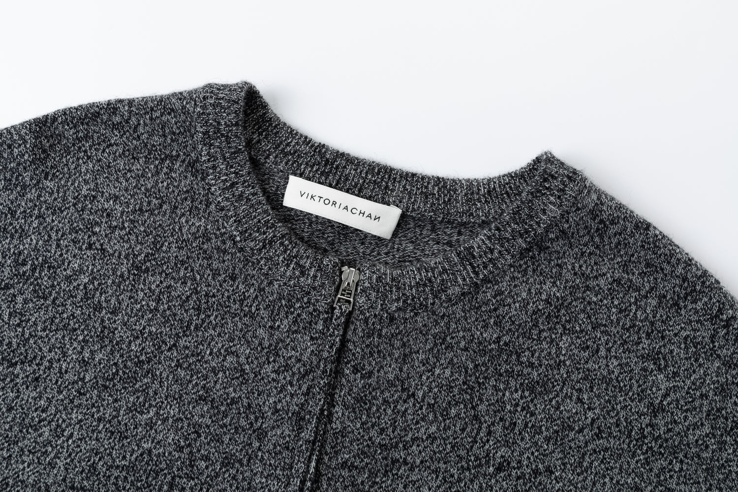 Oversized knit pullover with zipper detailed neckline. Ribbed details on neckline and hems.