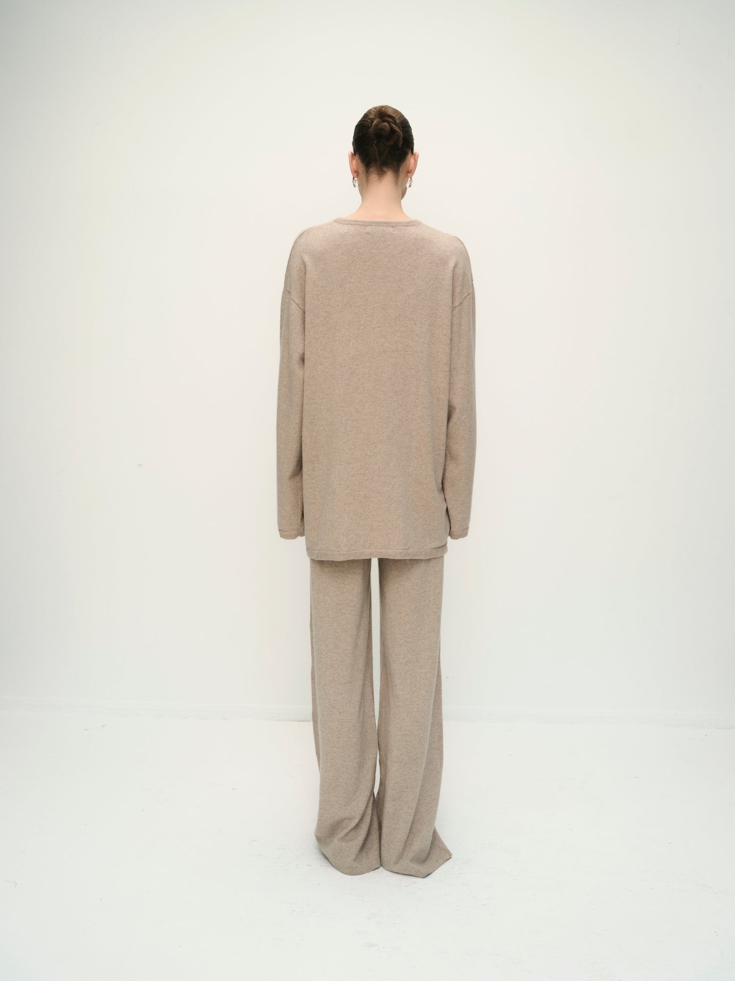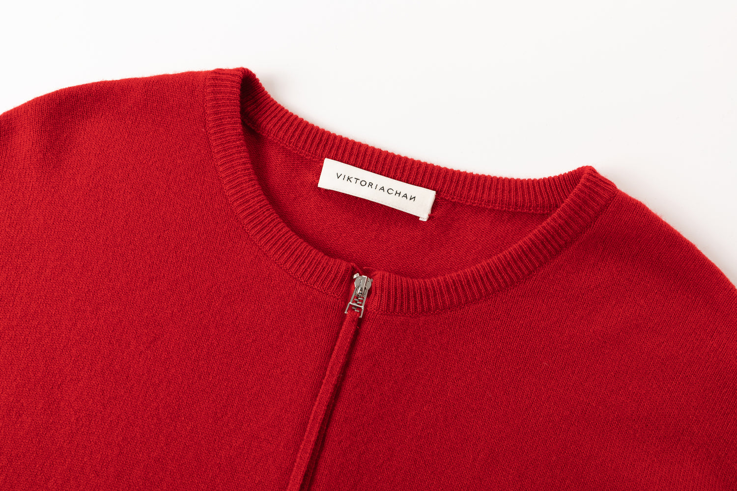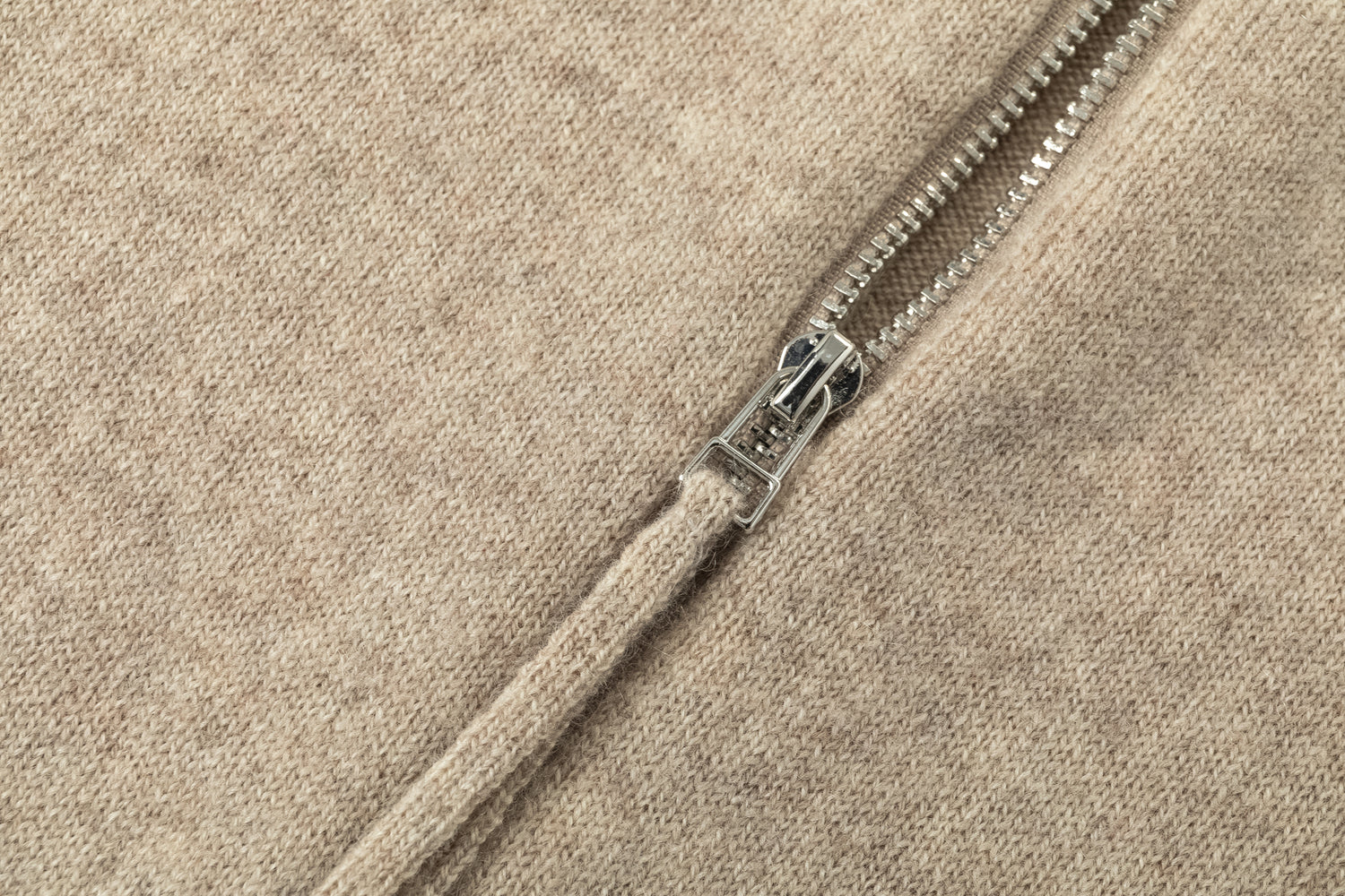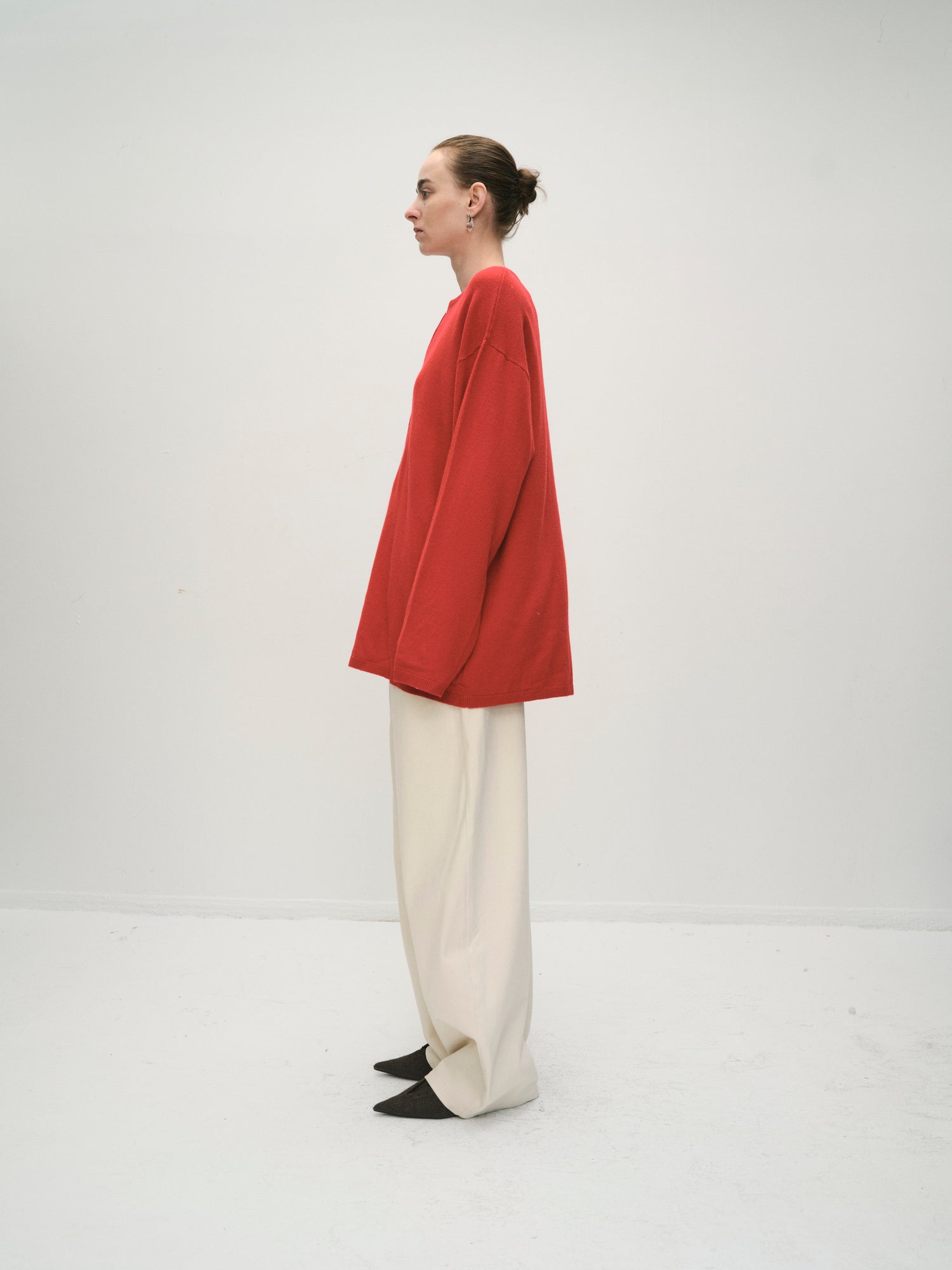 Oversized knit pullover with zipper detailed neckline. Ribbed details on neckline and hems.