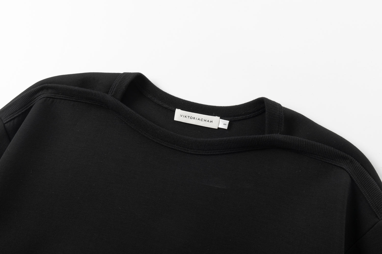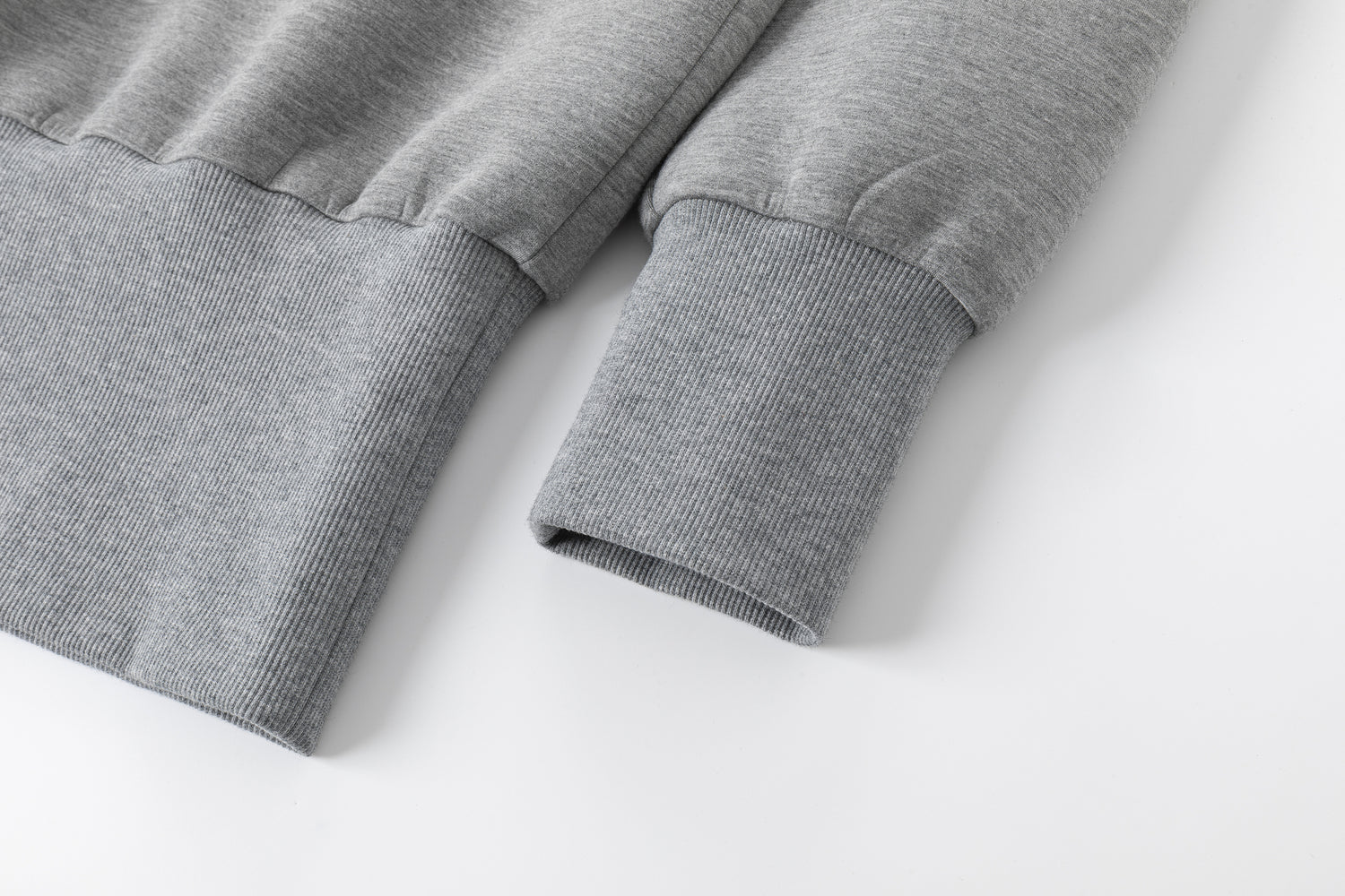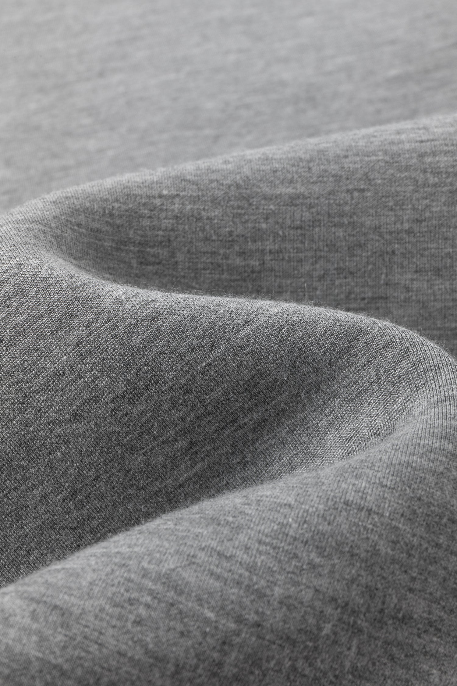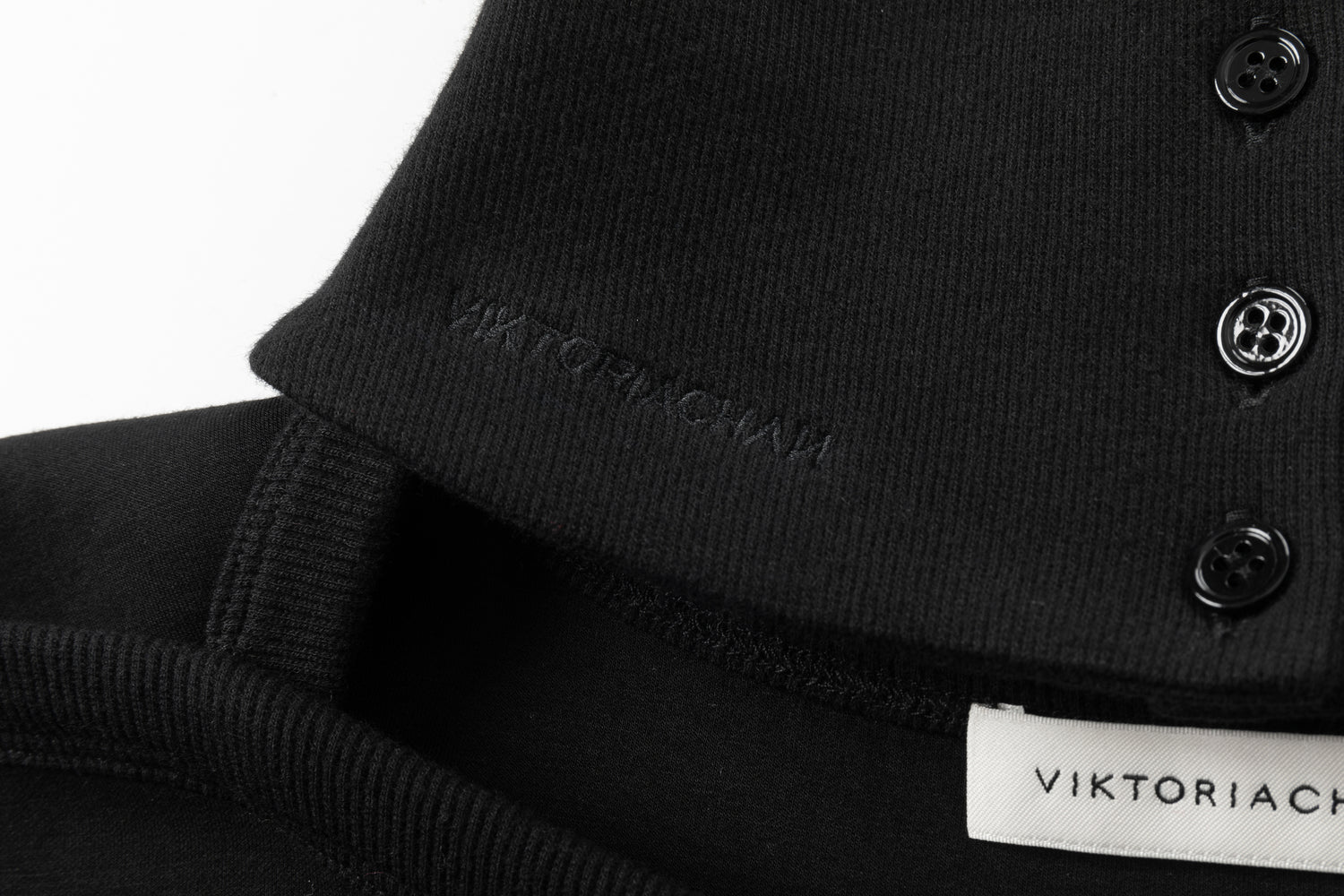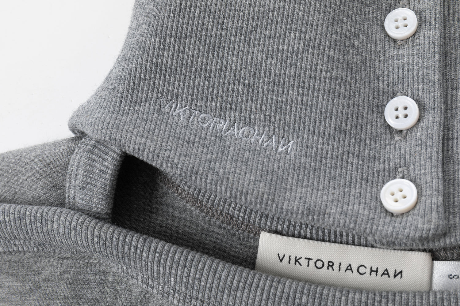 High-neck soft pullover with a relaxed fit, ribbed cuffs and hem, and a high funnel neck featuring discreet white button closures at the back of the collar for subtle detailing.