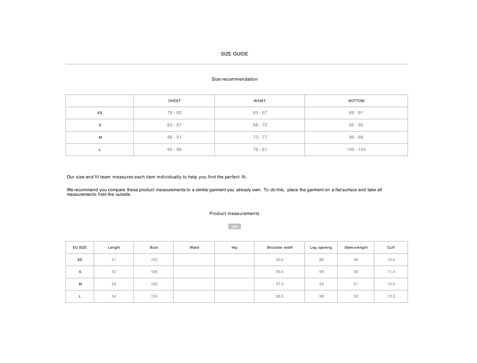 The model is 1.76 m tall and wears a size S. For more detailed sizing information, please consult our size charts.
