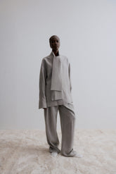 The trousers feature long darted pleats at the front and pleats at the back, enhancing their tailored appearance and offering a sleek silhouette. Pair these trousers with the Venus scarf...