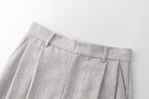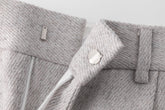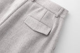 These tailored trousers boast a straight cut and front pleats for added structure, crafted in a textured neutral-toned fabric, accentuated by a single welt pocket with a flap at the back...