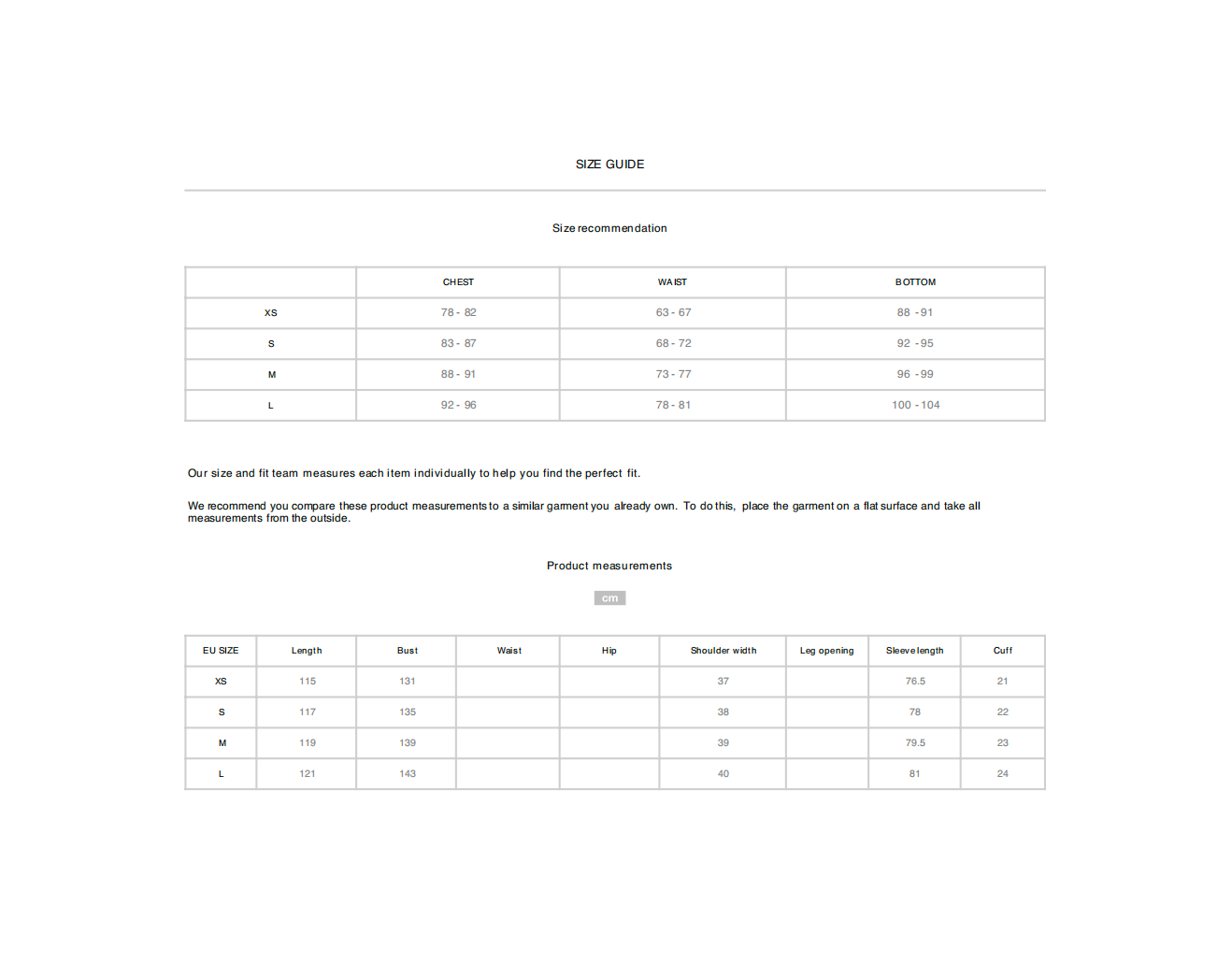 The model is 1.76 m tall and wears a size S. For more detailed sizing information, please consult our size charts.
