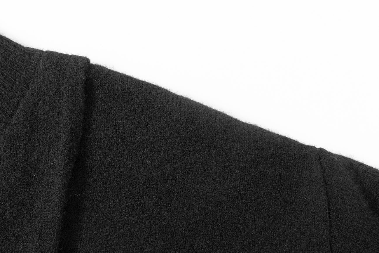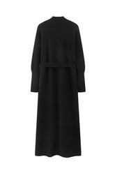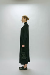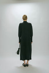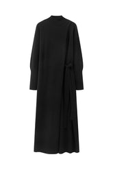 Wool dress worn in different ways. Mid raise high neck and ribbed cuffs. One side is open with holes in the side to choose your own way to wear it. Wear it tied half, back and forth or j...