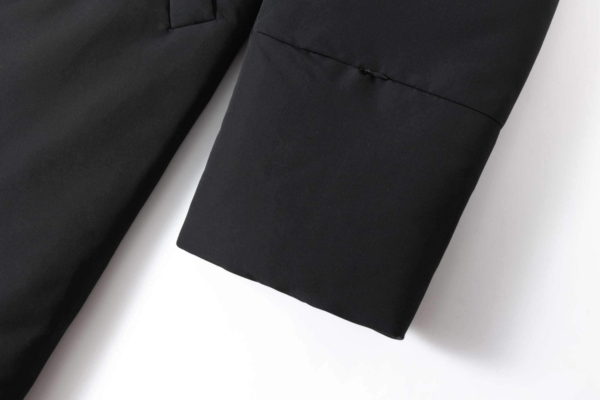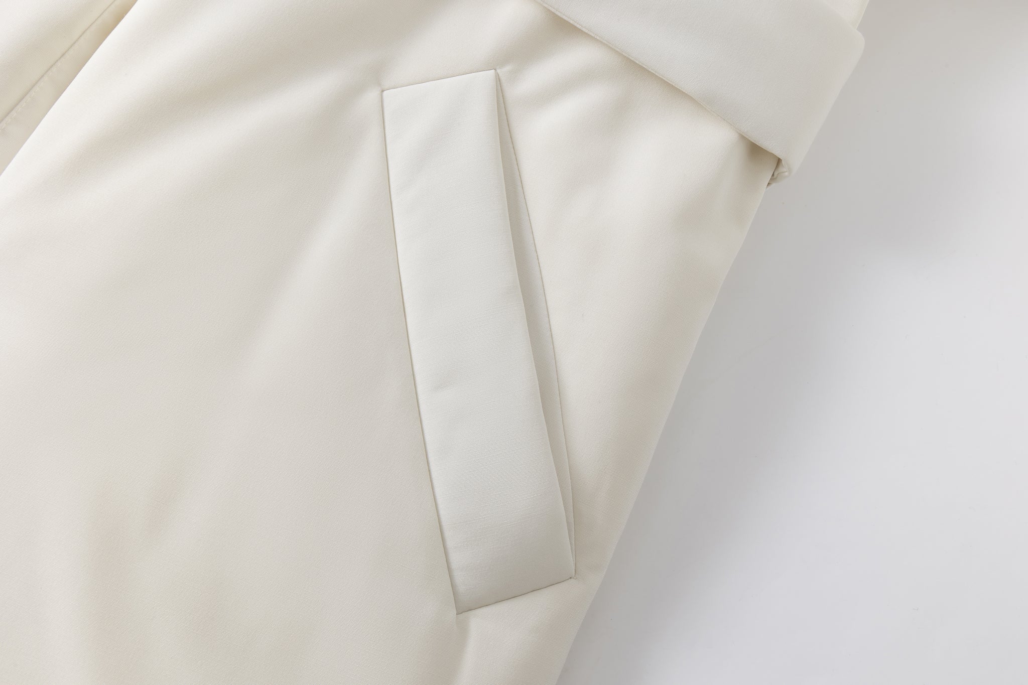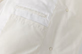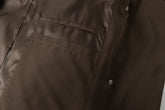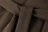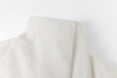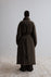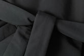 Design: High collar, detachable front-knotted belt, no visible buttons or zippers, sleeve hem zip