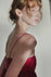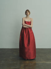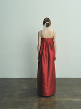 Minimalistic empire silhouette in a deep red shade. It features thin spaghetti straps and a straight neckline, with gentle gathers just below the bust that create a flowing, loose fit.