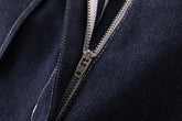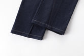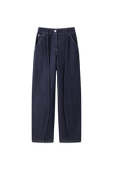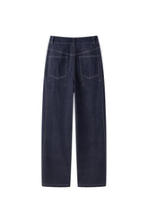 Bold cut jeans with asymmetric cut on the side and back pocket details.