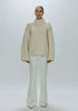 Midi sweater with wide sleeves and mid high neckline decorated with herringbone details around all the edges. It's a romantic but yet cool sweater, to style with simple trousers for a mi...