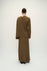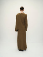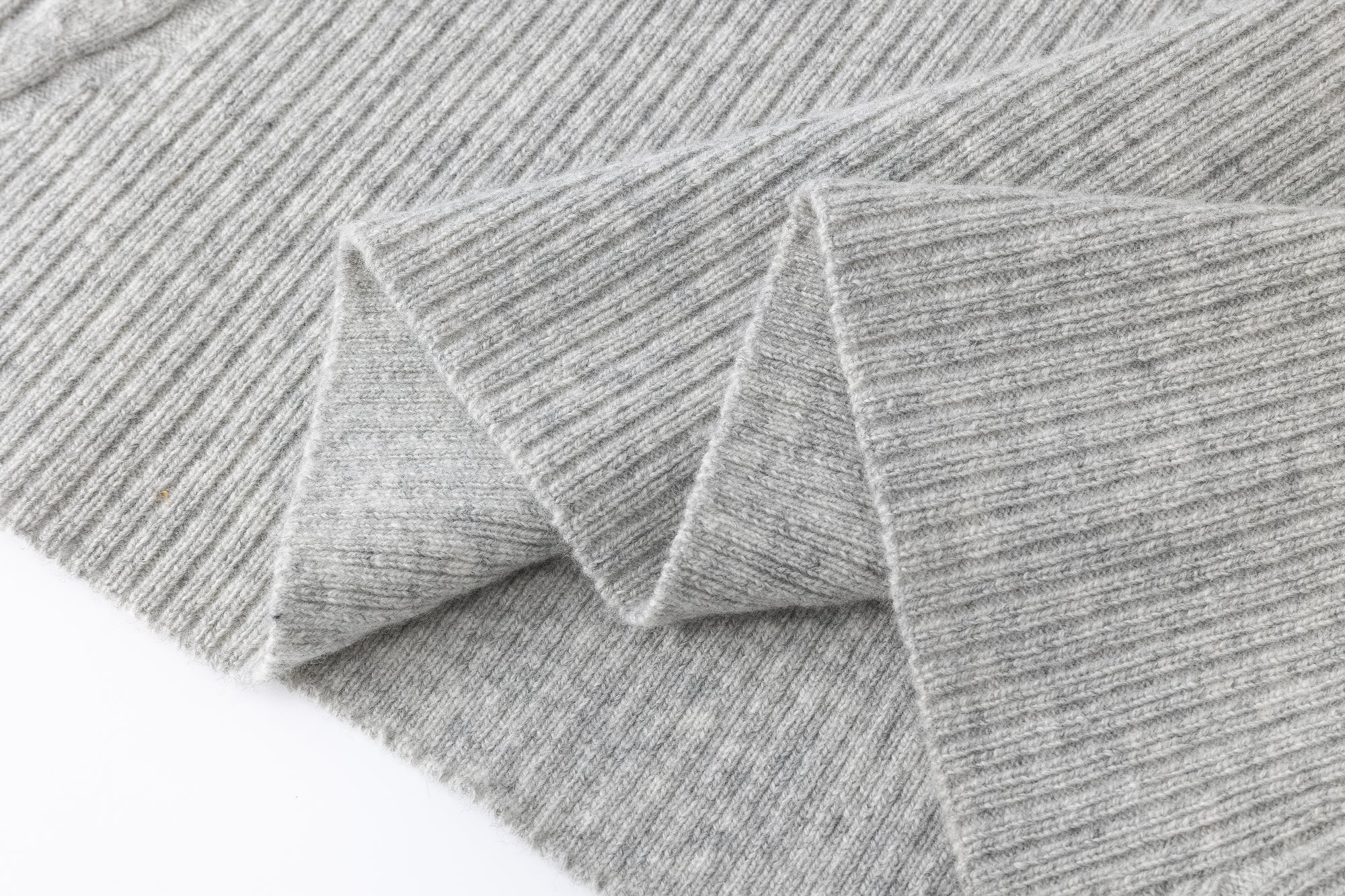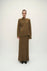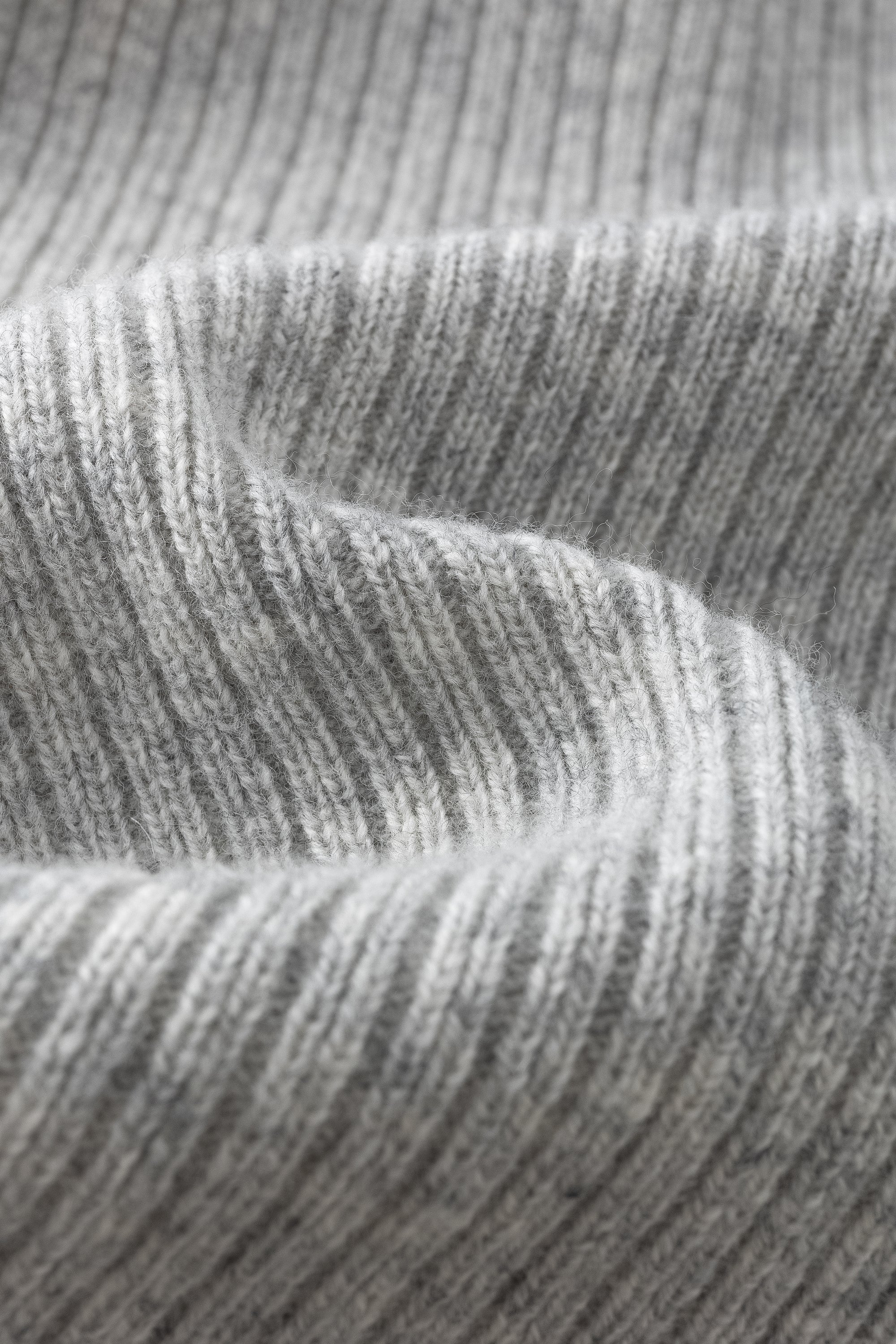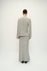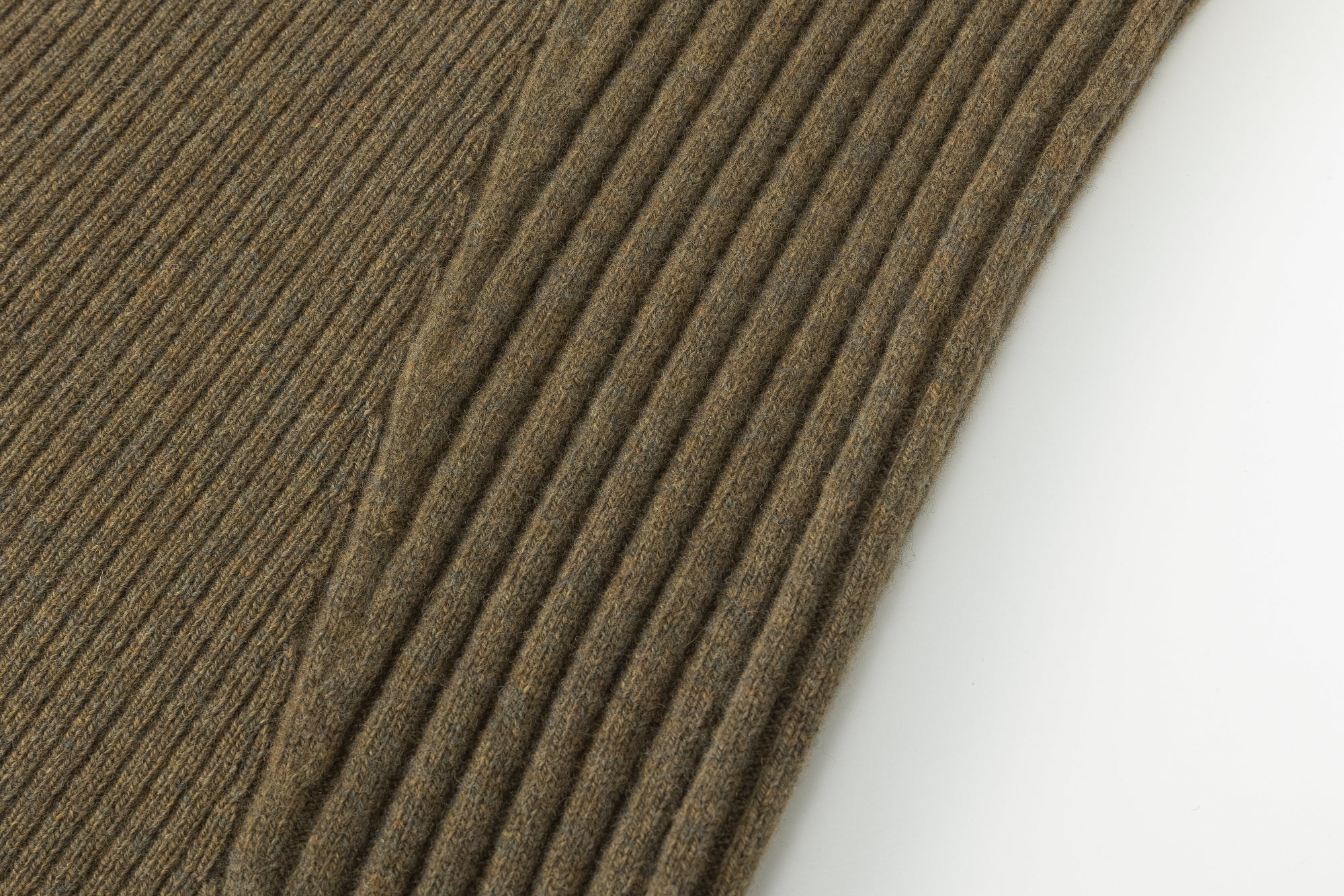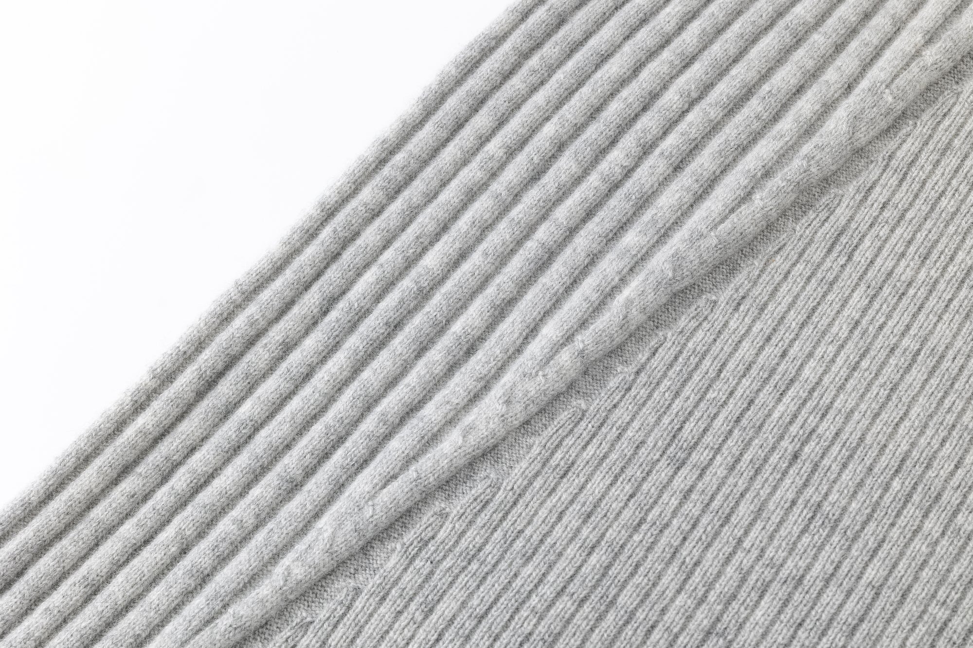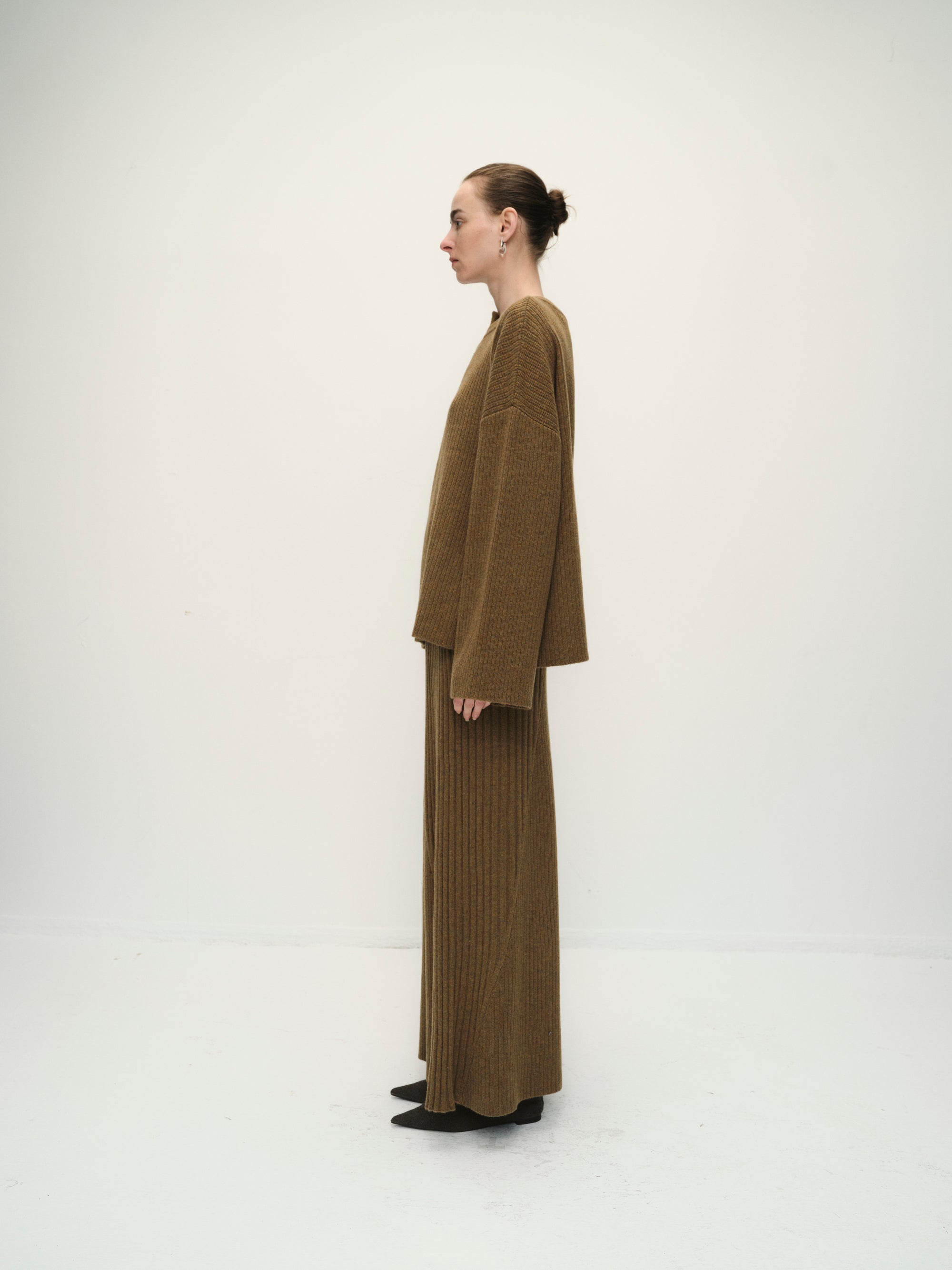 100% wool long knit skirt with a ribbed pattern throughout. The ribbed pattern follows an asymmetrical design, adding texture and sculptural structure