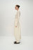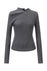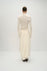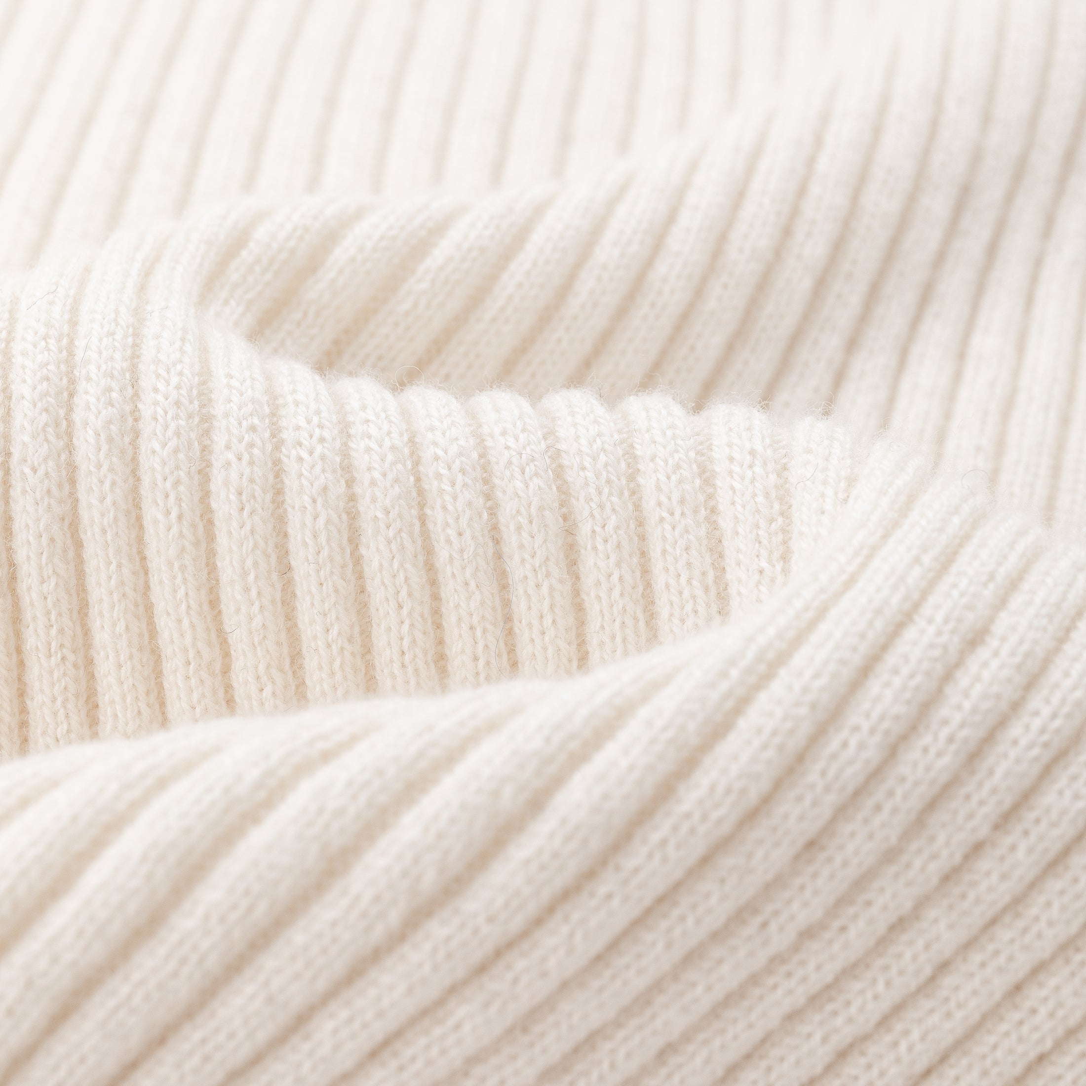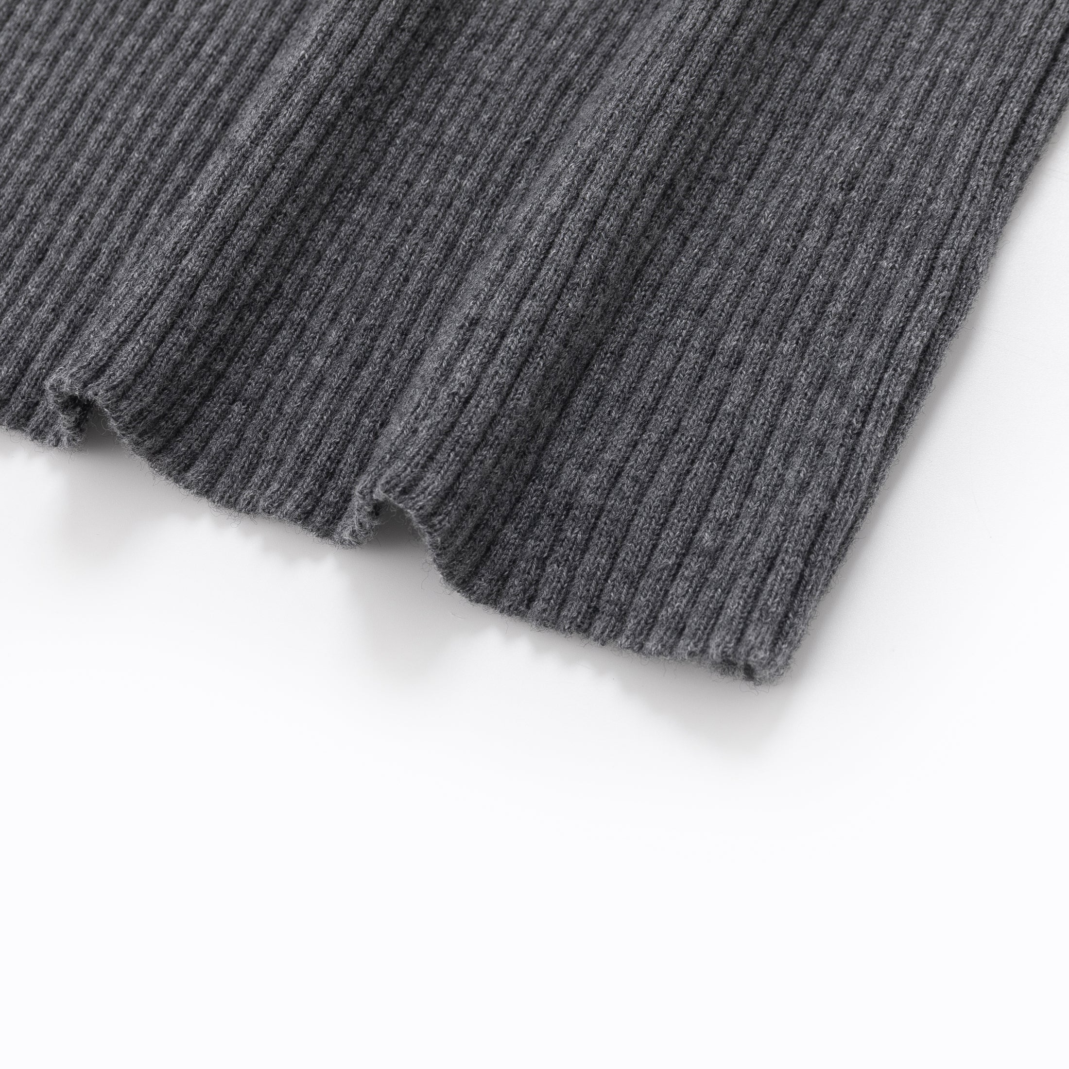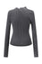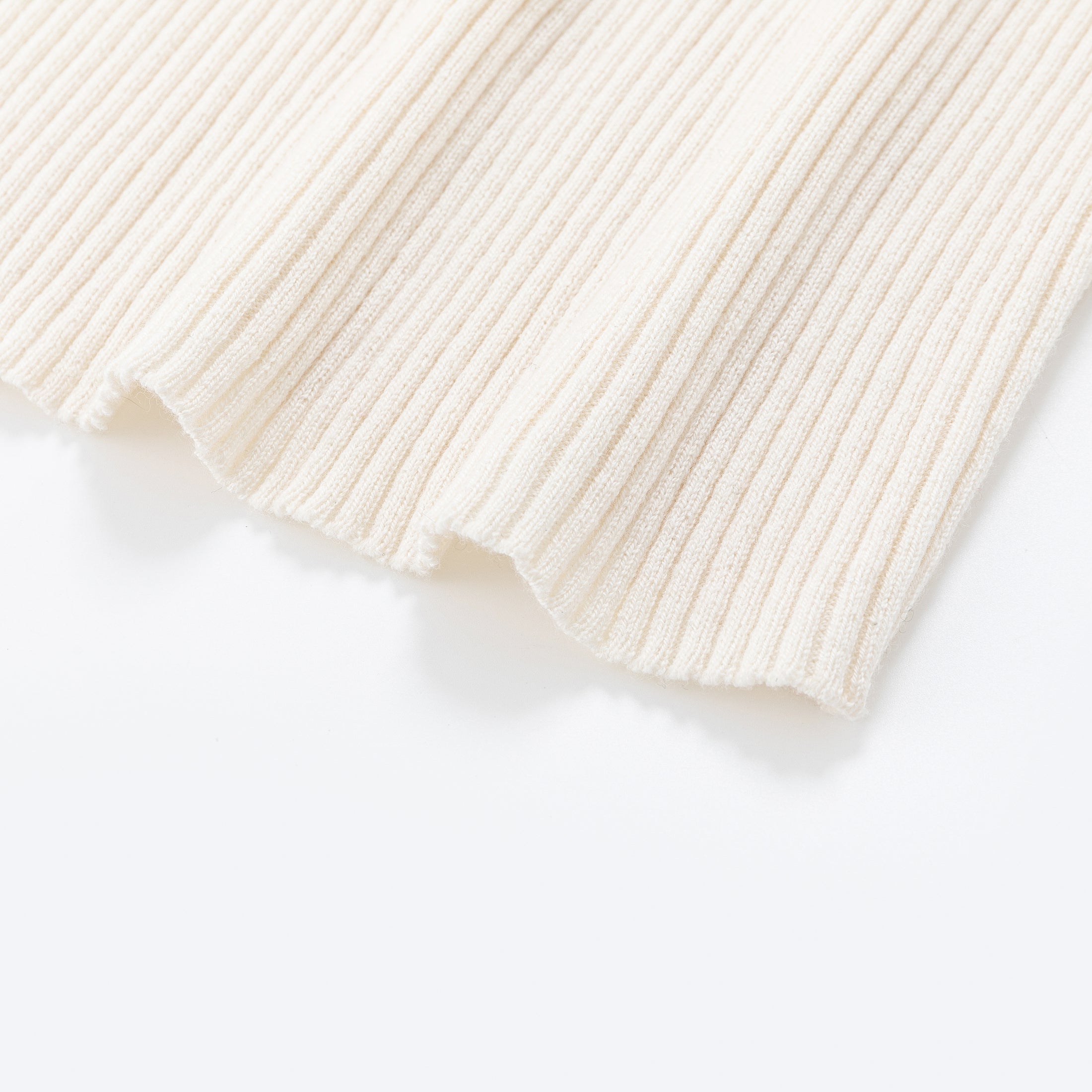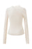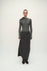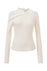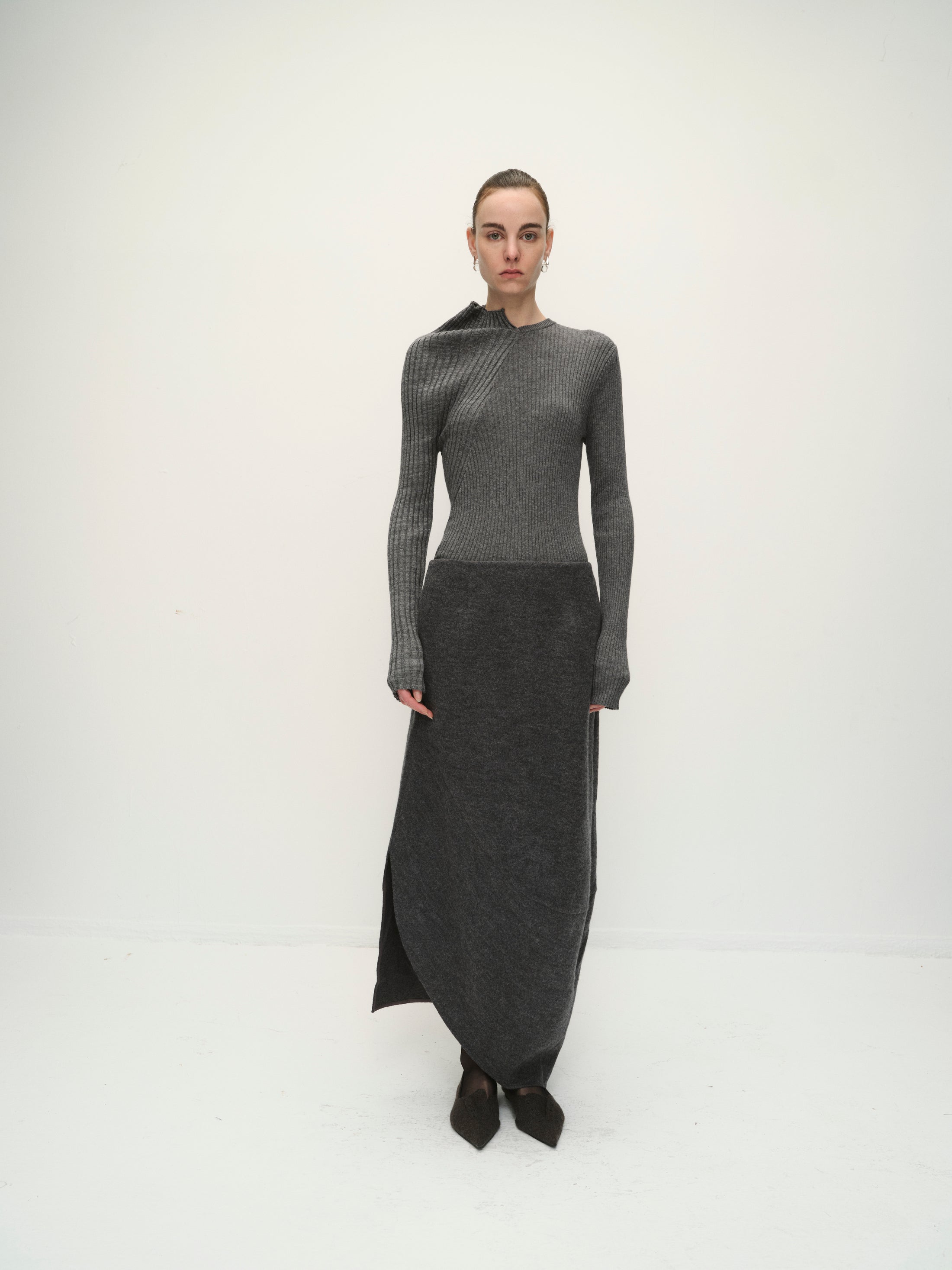 Fitted ribbed knit top with asymmetrical diagonal pattern across the front. The neckline is open with a slit for a modern, minimalistic look.