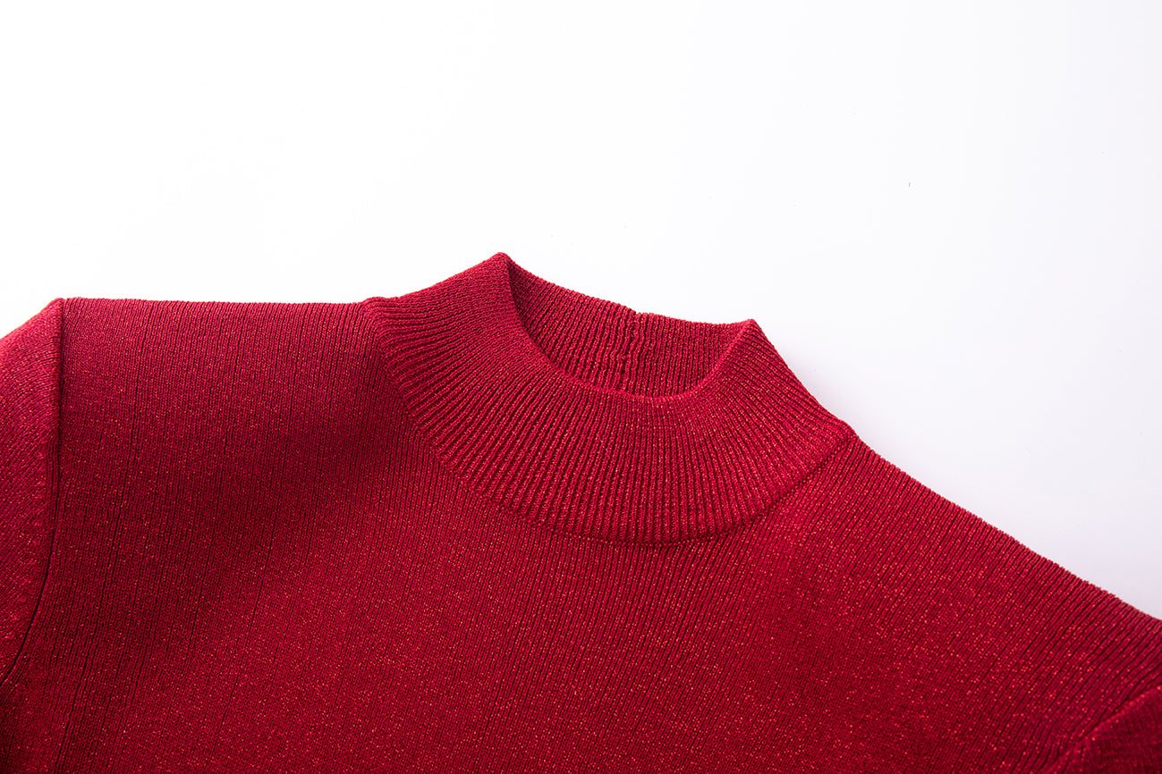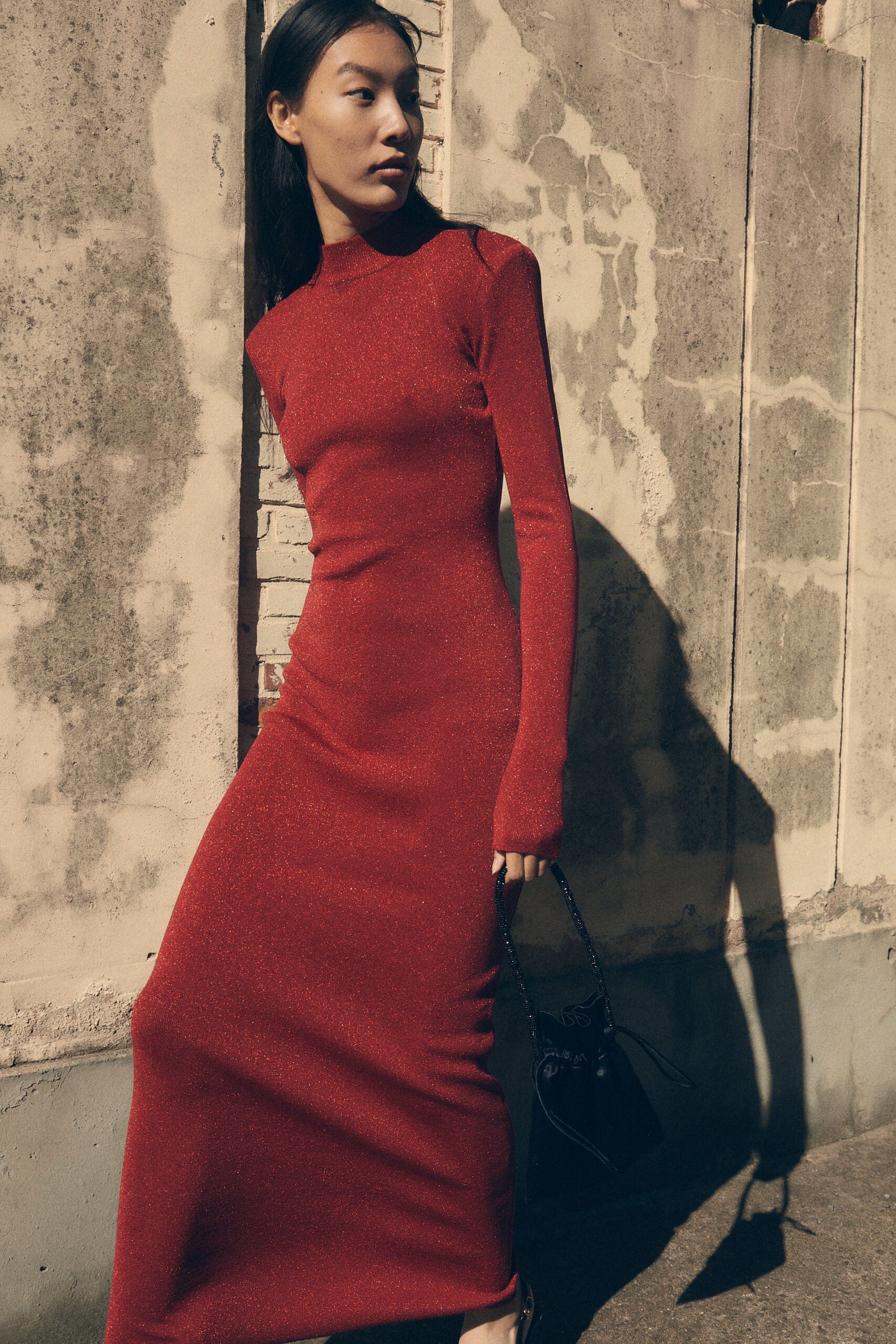 Fitted knit dress with shoulder pads, slim sleeves and open back. Make a smashing figure! Made in a sparkled fabric that is super beautiful for the winter parties. Style with high heels ...