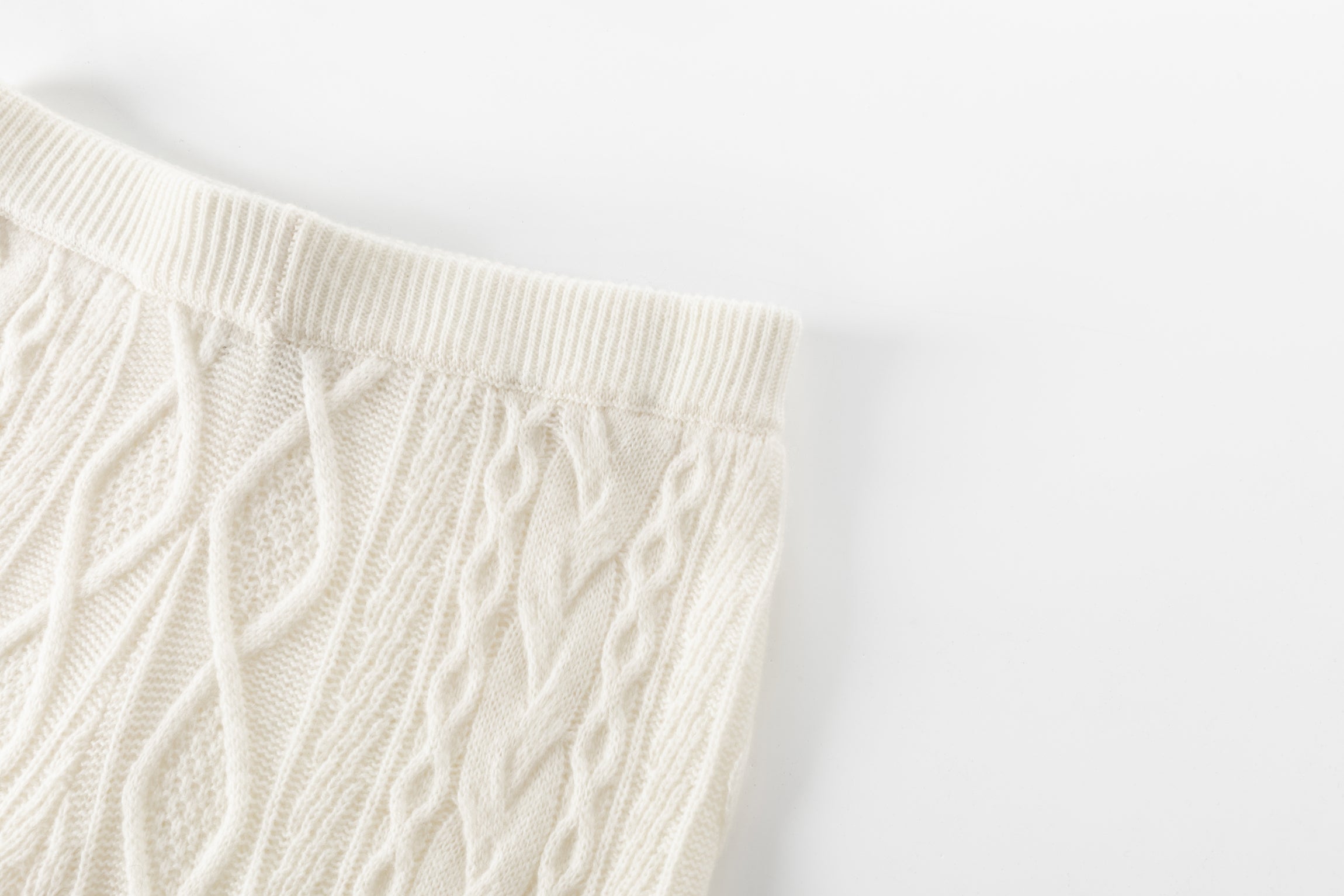 Soft and stretchy pant with elastic waistband and vertical cable knit design.