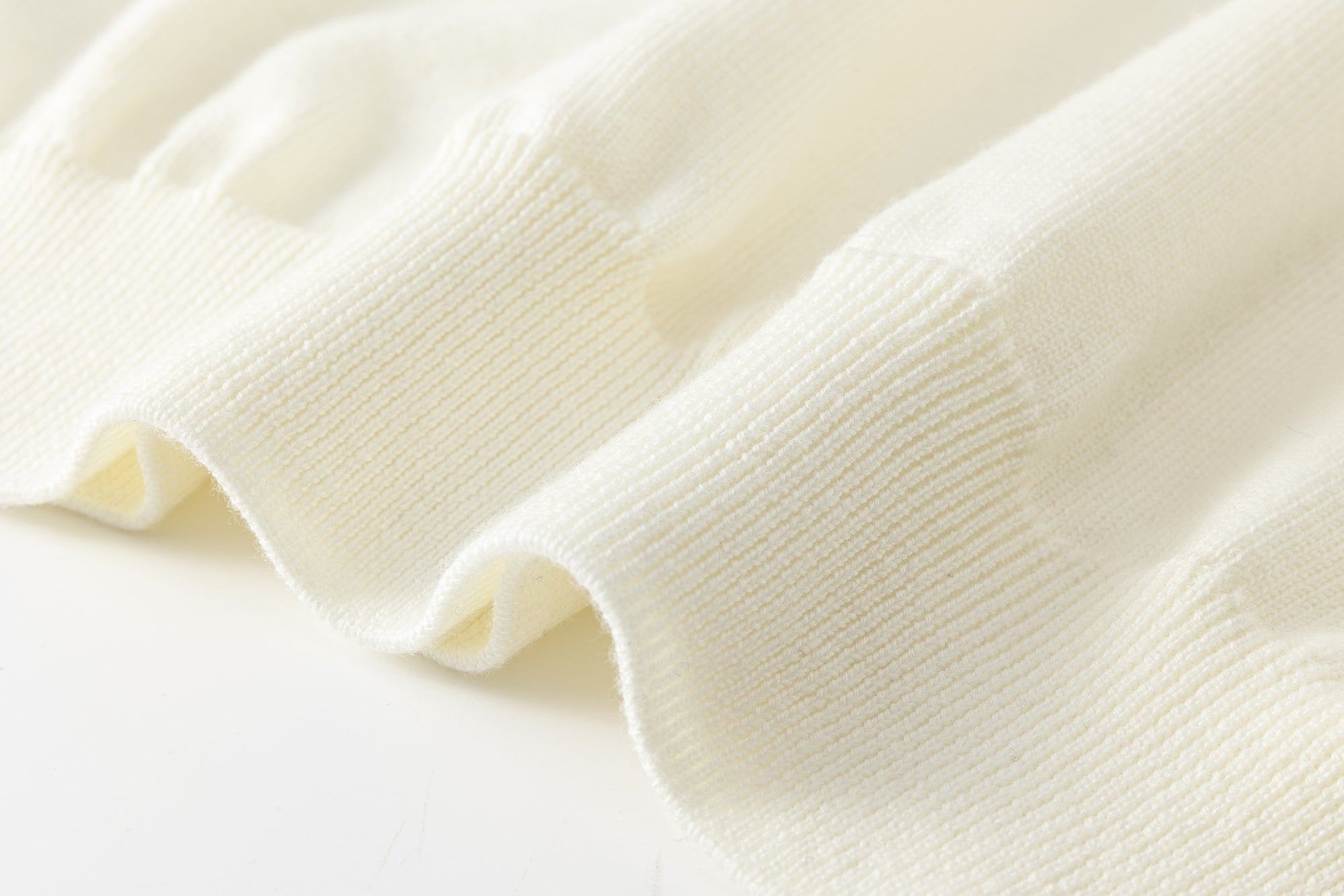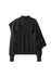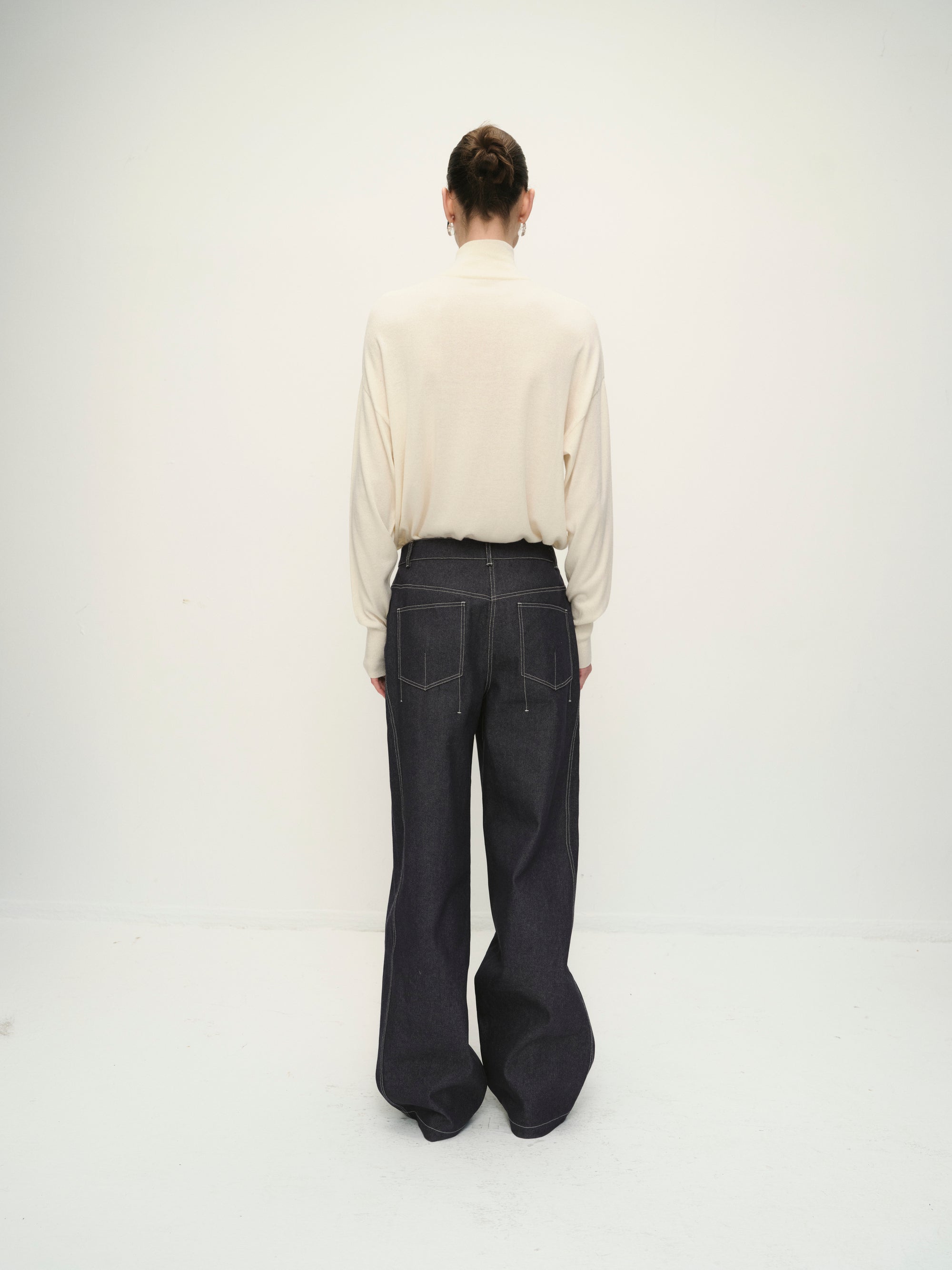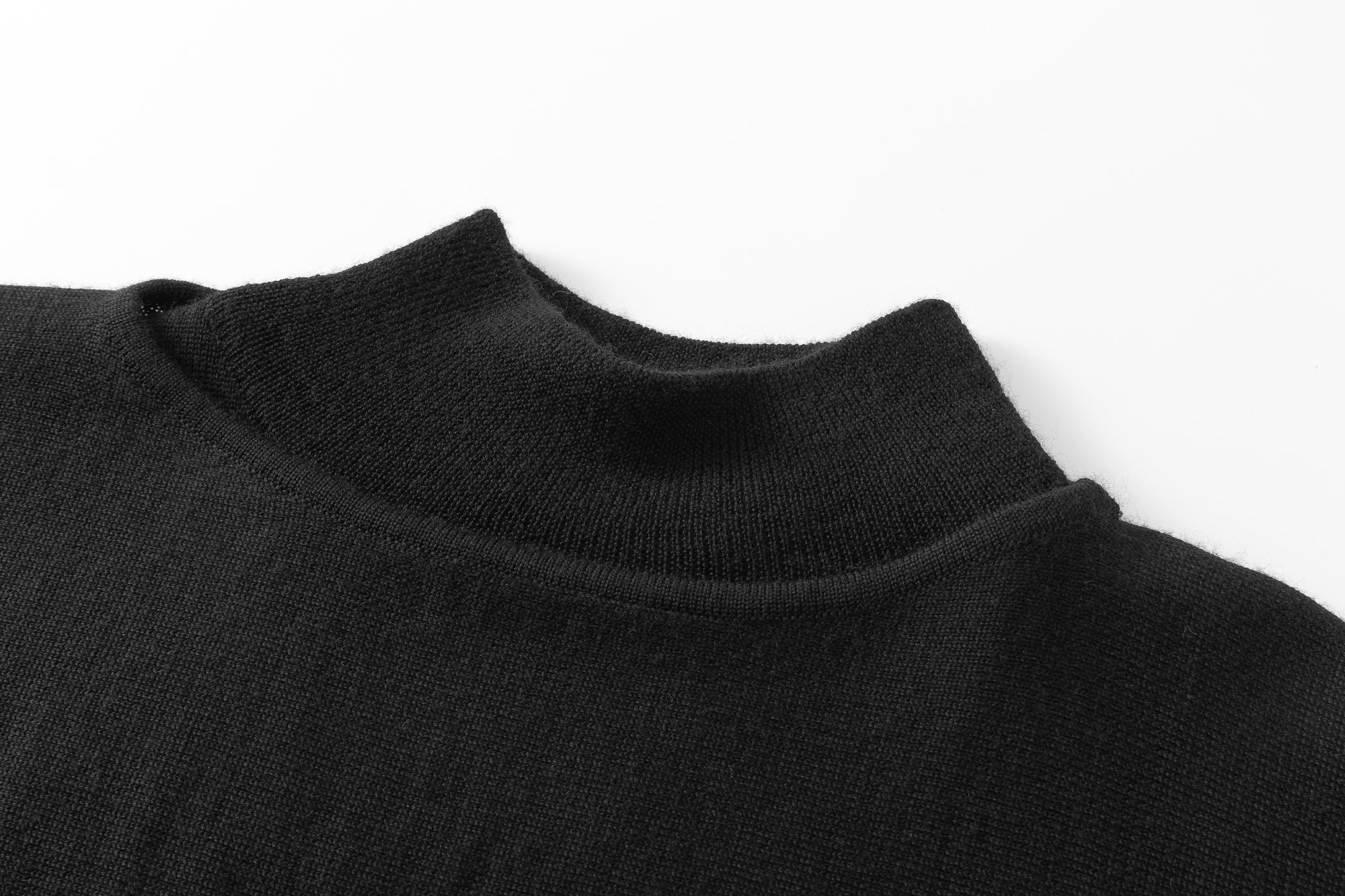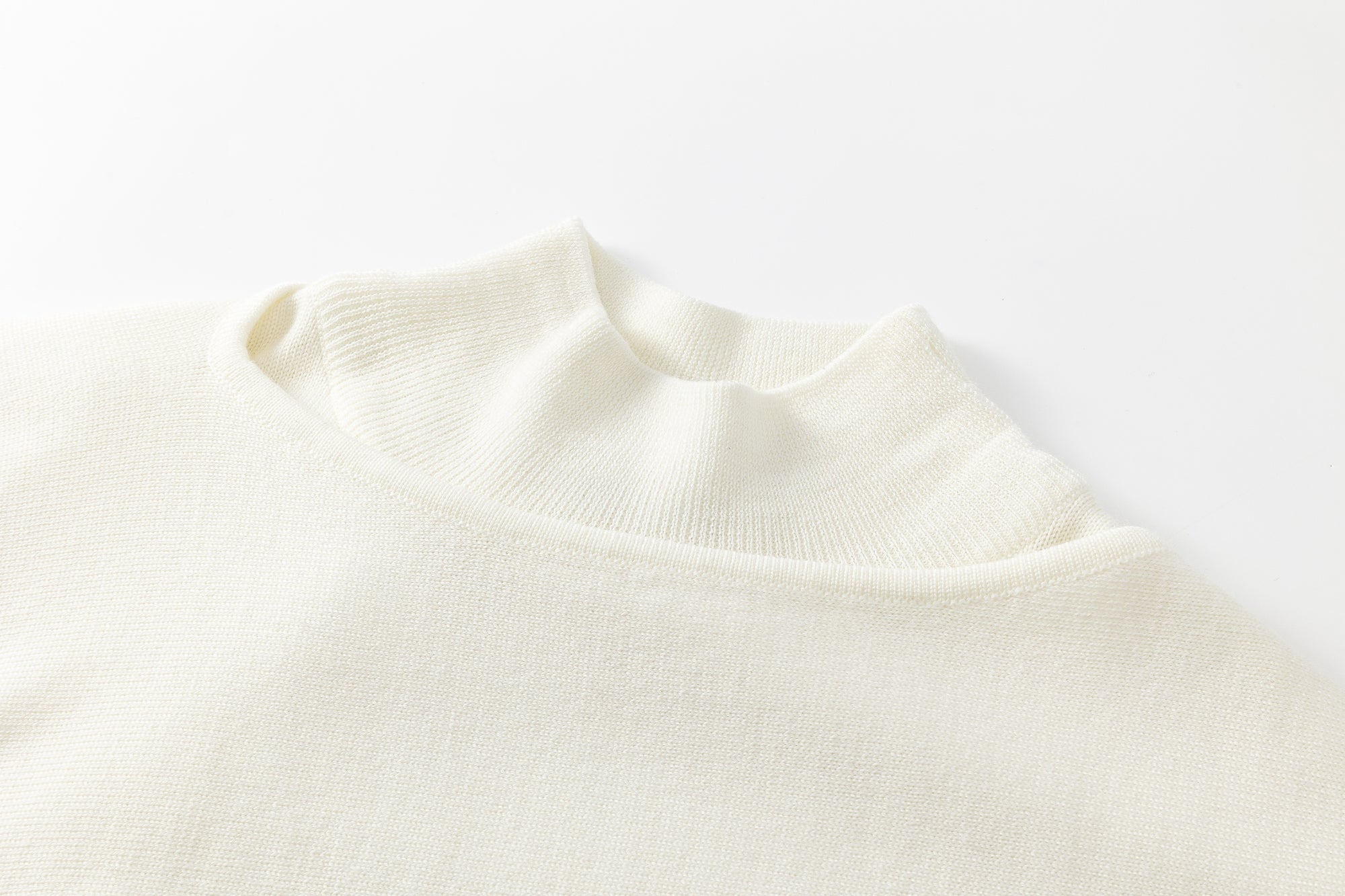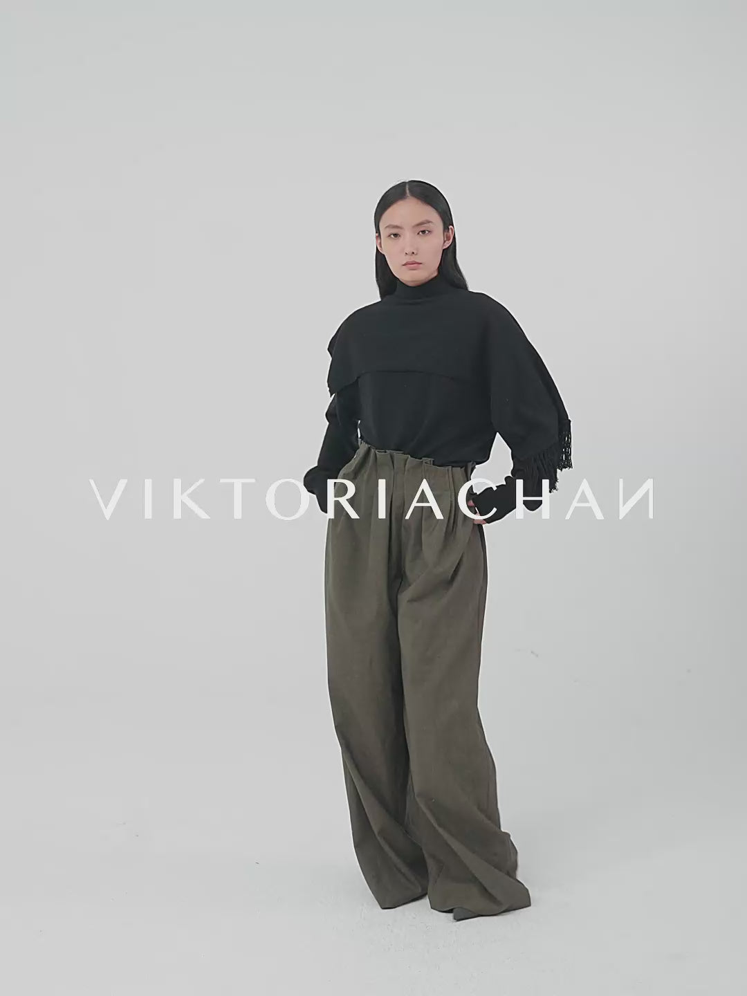 Soft 100% wool knit turtleneck featuring an attached scarf that drapes horizontally like a poncho. The scarf ends in playful tassels, adding movement and texture to the silhouette
