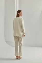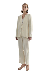 Straight constructed thick blazer that gives you the 100 billion look. The blazer has slits on the sides where all edged are framed. The cut for the neckline and the sleeves are both sig...