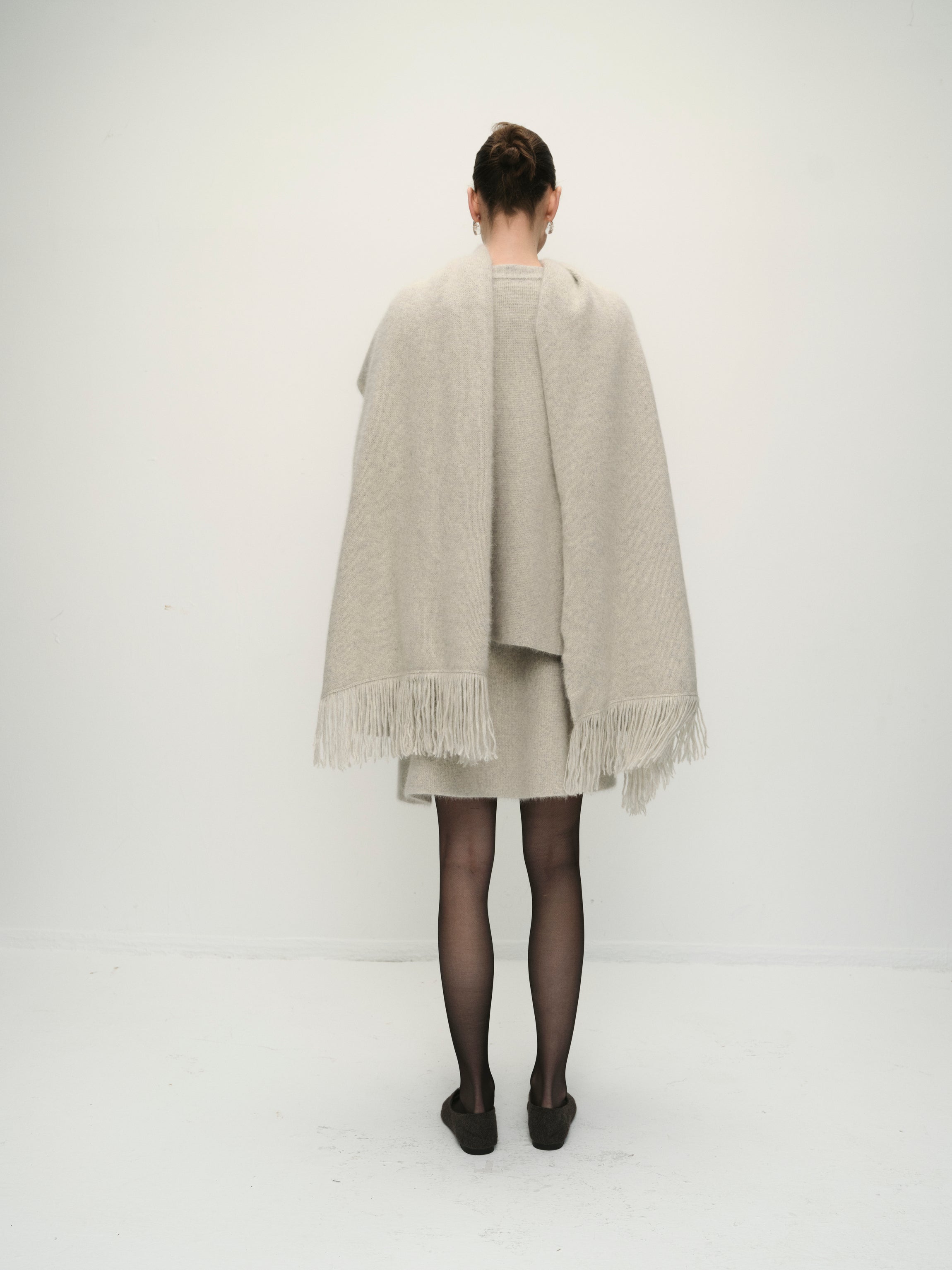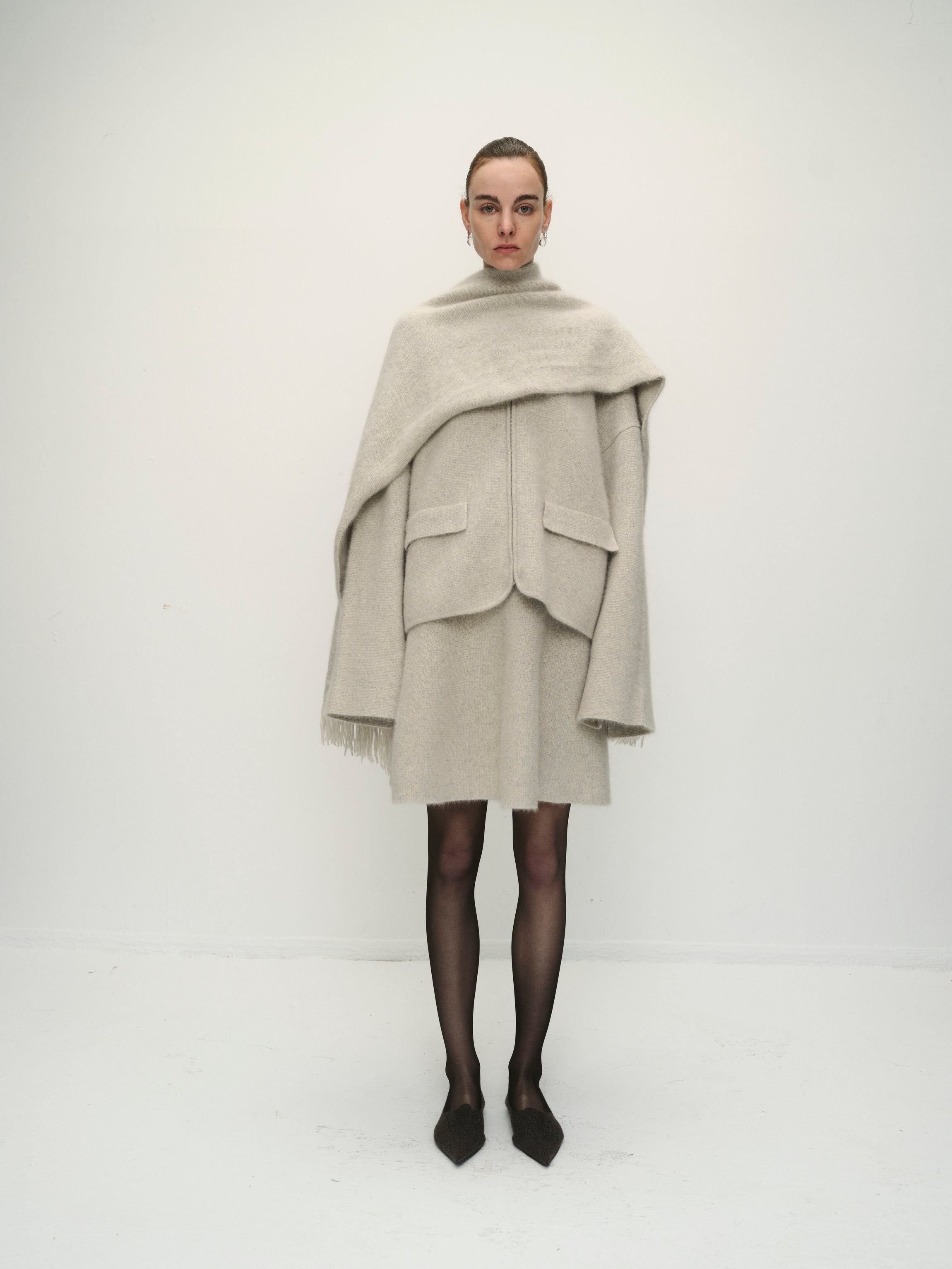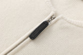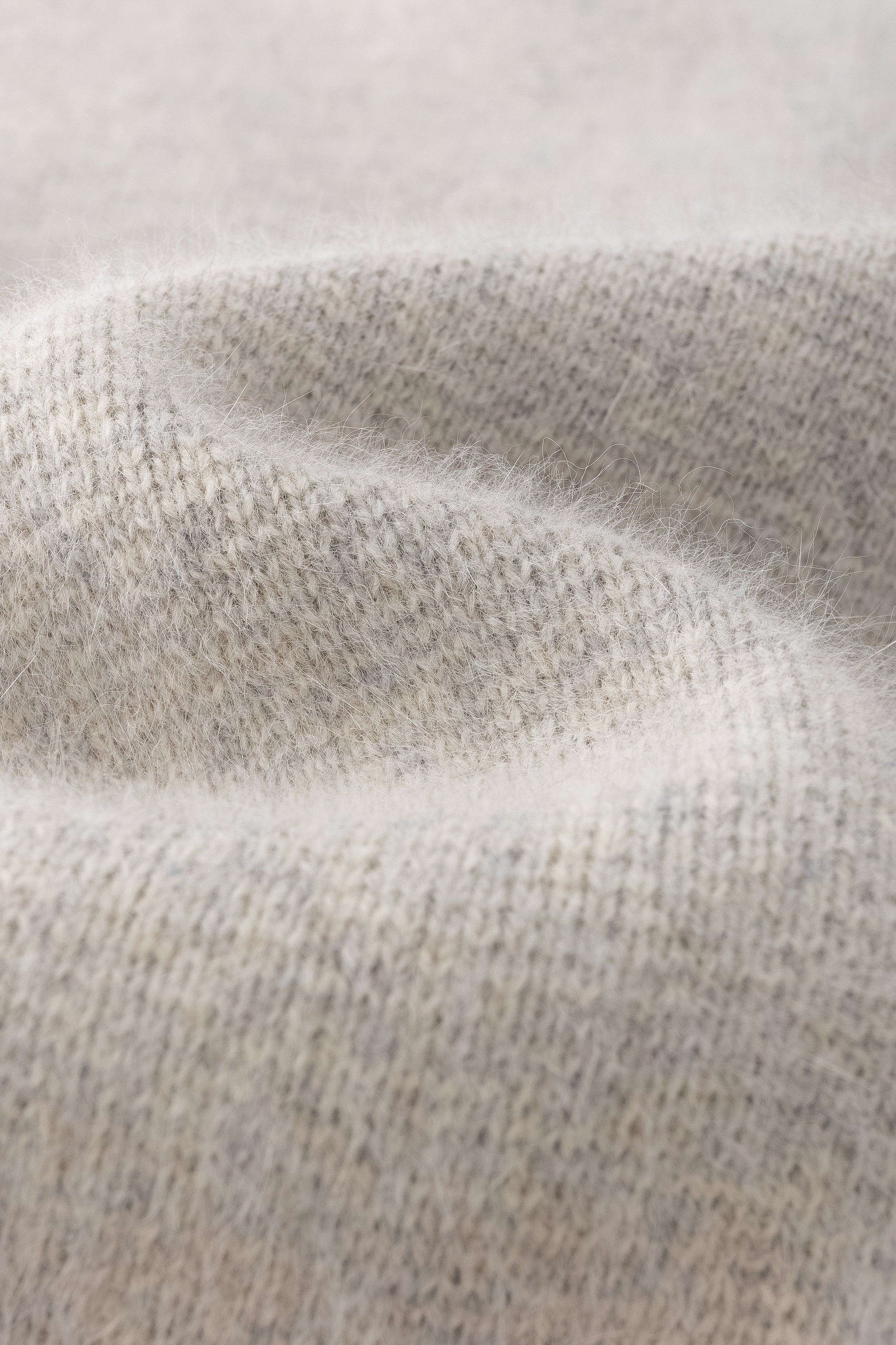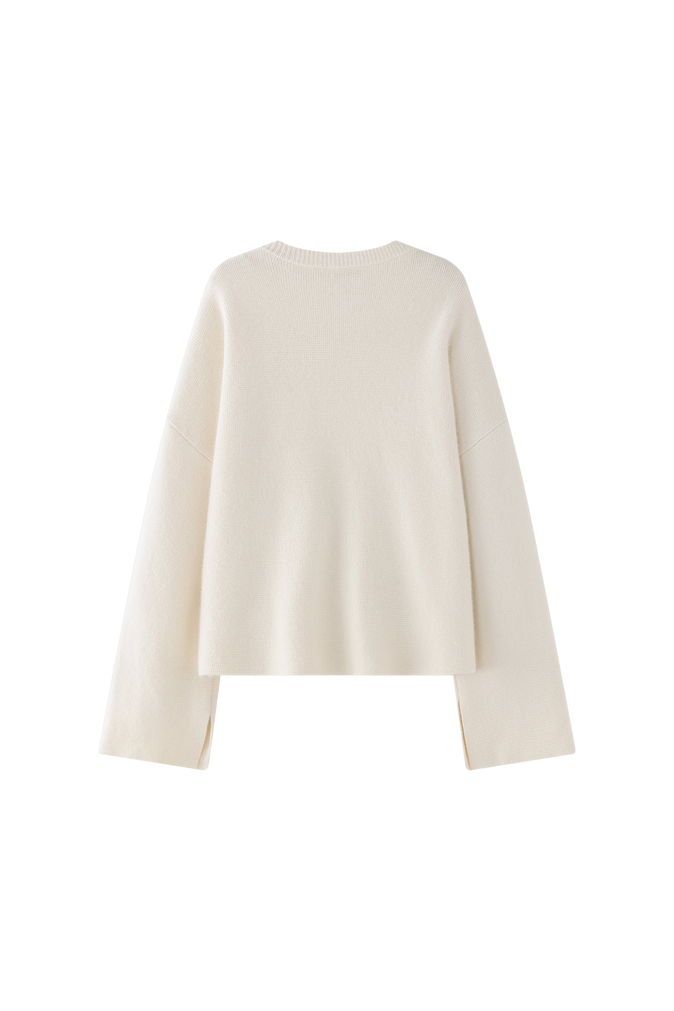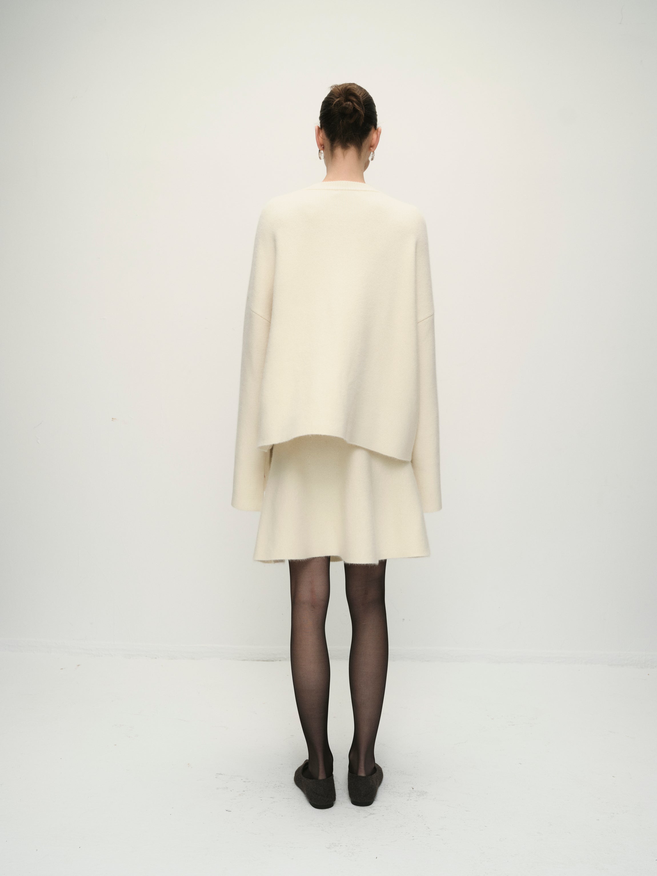 Cardigan with zipper and leather zipper. Wide sleeves with slit. Dropping shoulders. Thicker in style.