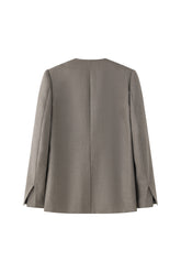 This 100% wool blazer is designed with a unique double opening that incorporates additional fabric in a rounded shape, enhancing its distinctive look. The hem of the sleeve features a un...
