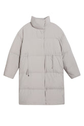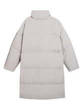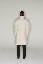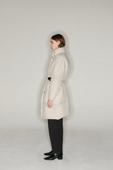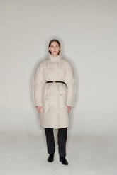 Puffy and light down jacket with bold arms. Push button and high collar. Falls below the knees. Saved for the winter! Style with the VIKTORIACHAN belt for a chic look. Model is 177cm tal...