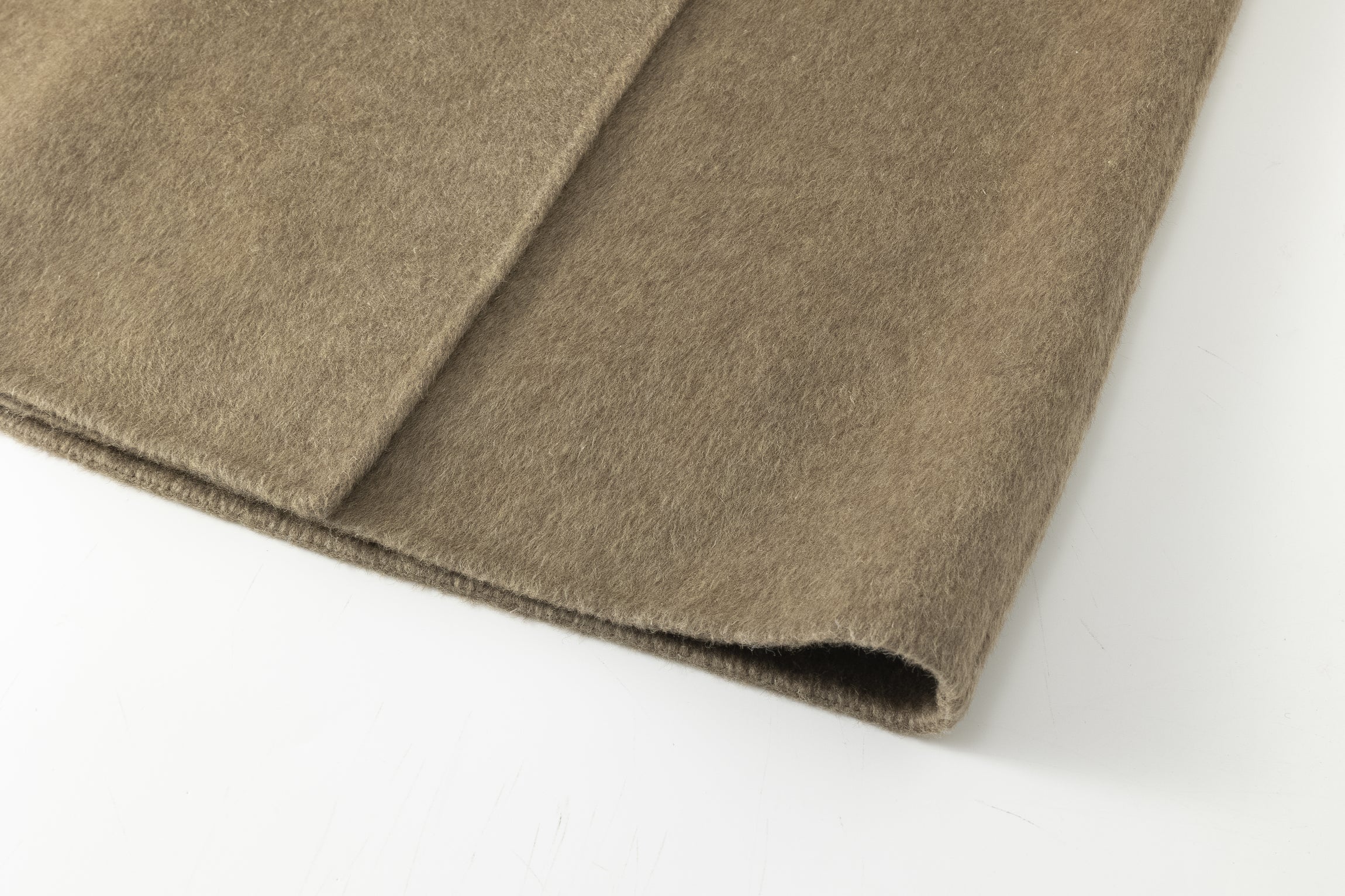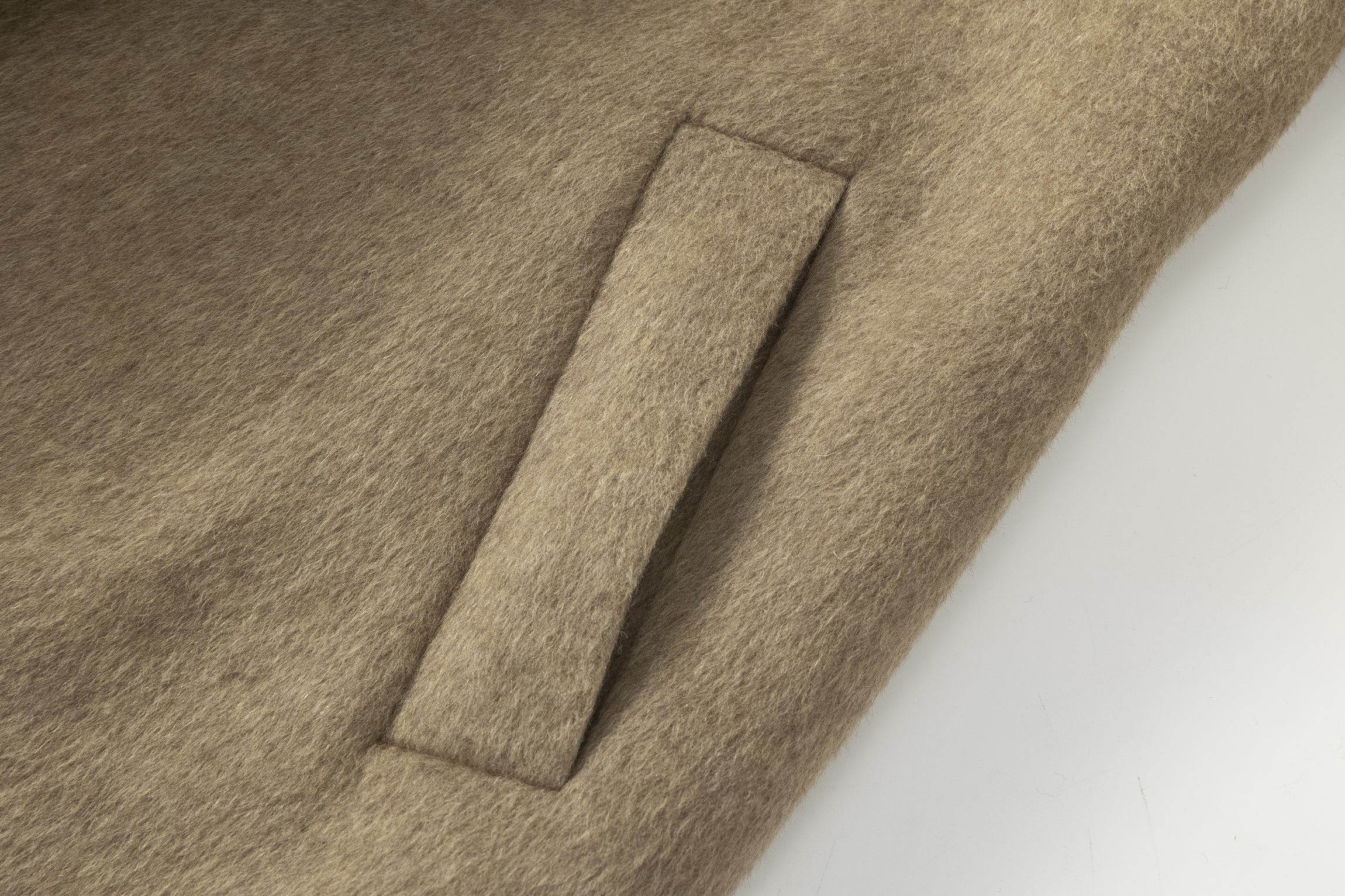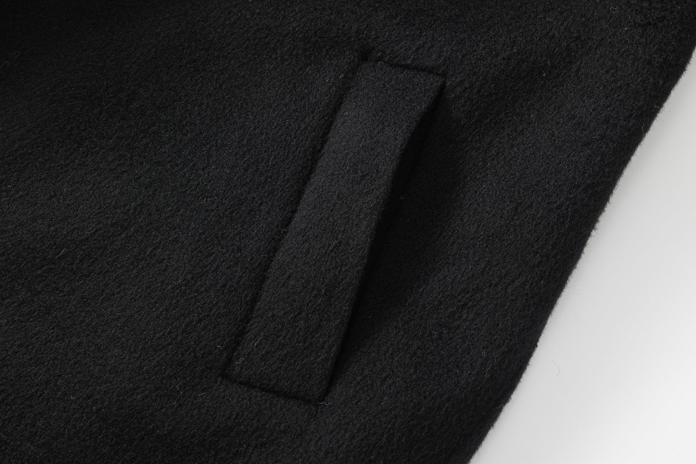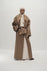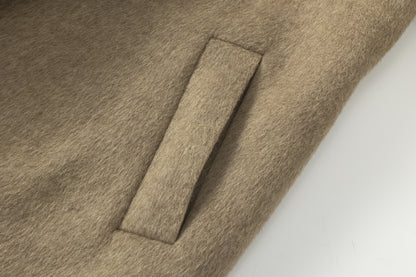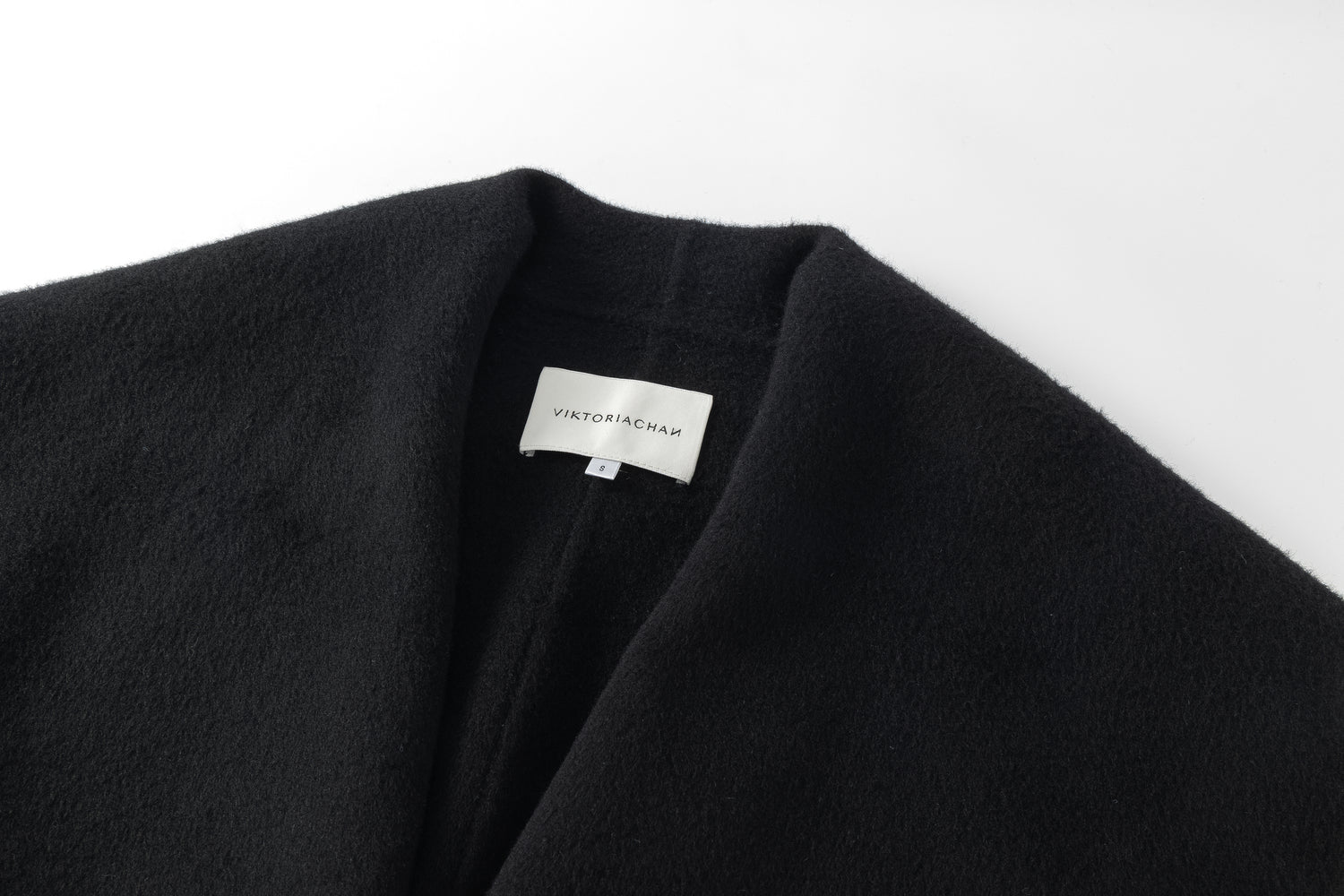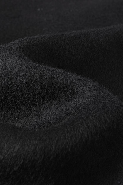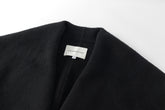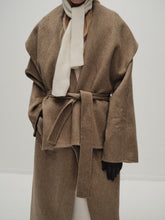 Unlined long coat with oversized shawl collar. Belted waist. Side-seam pockets. Back slit.