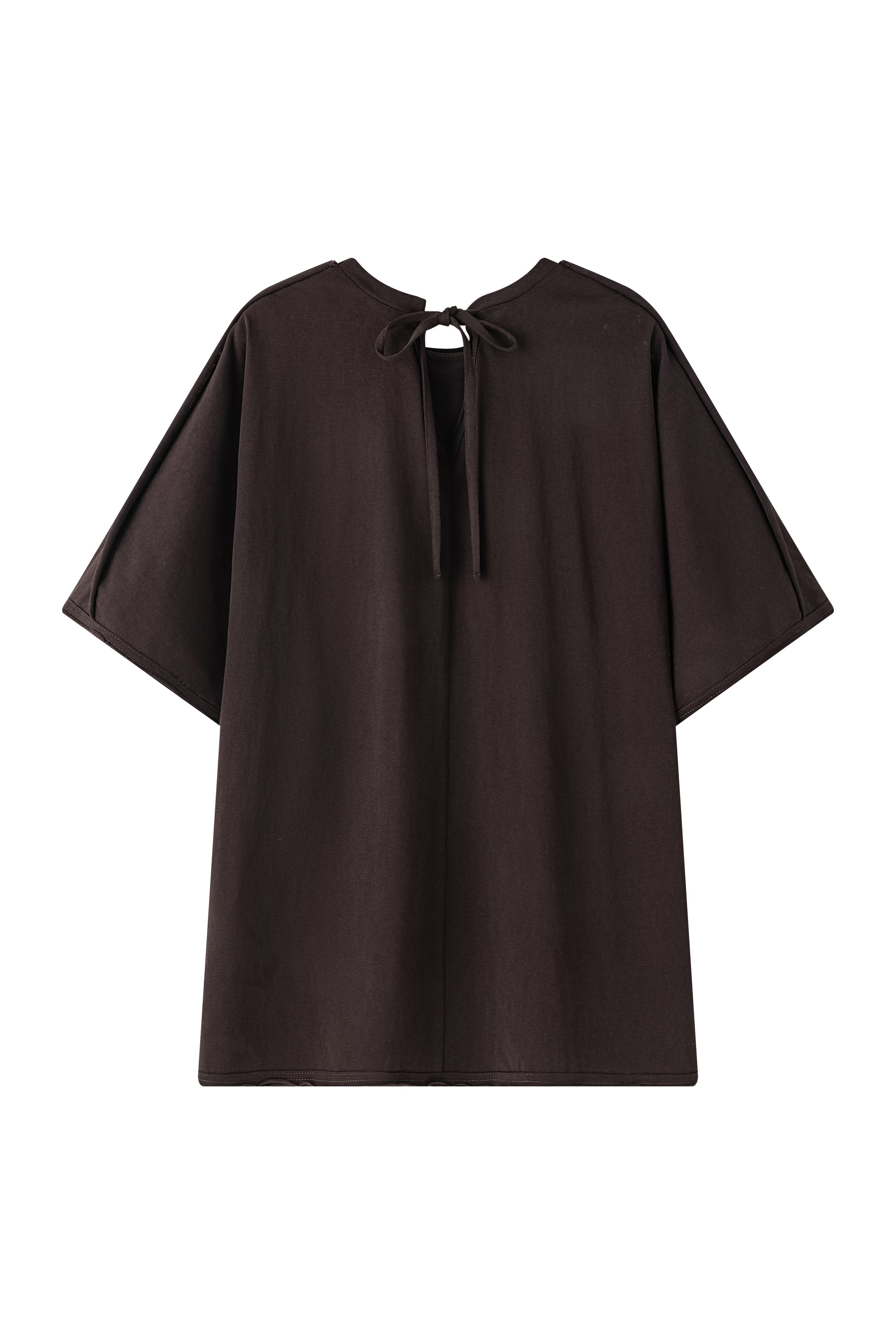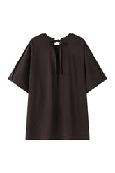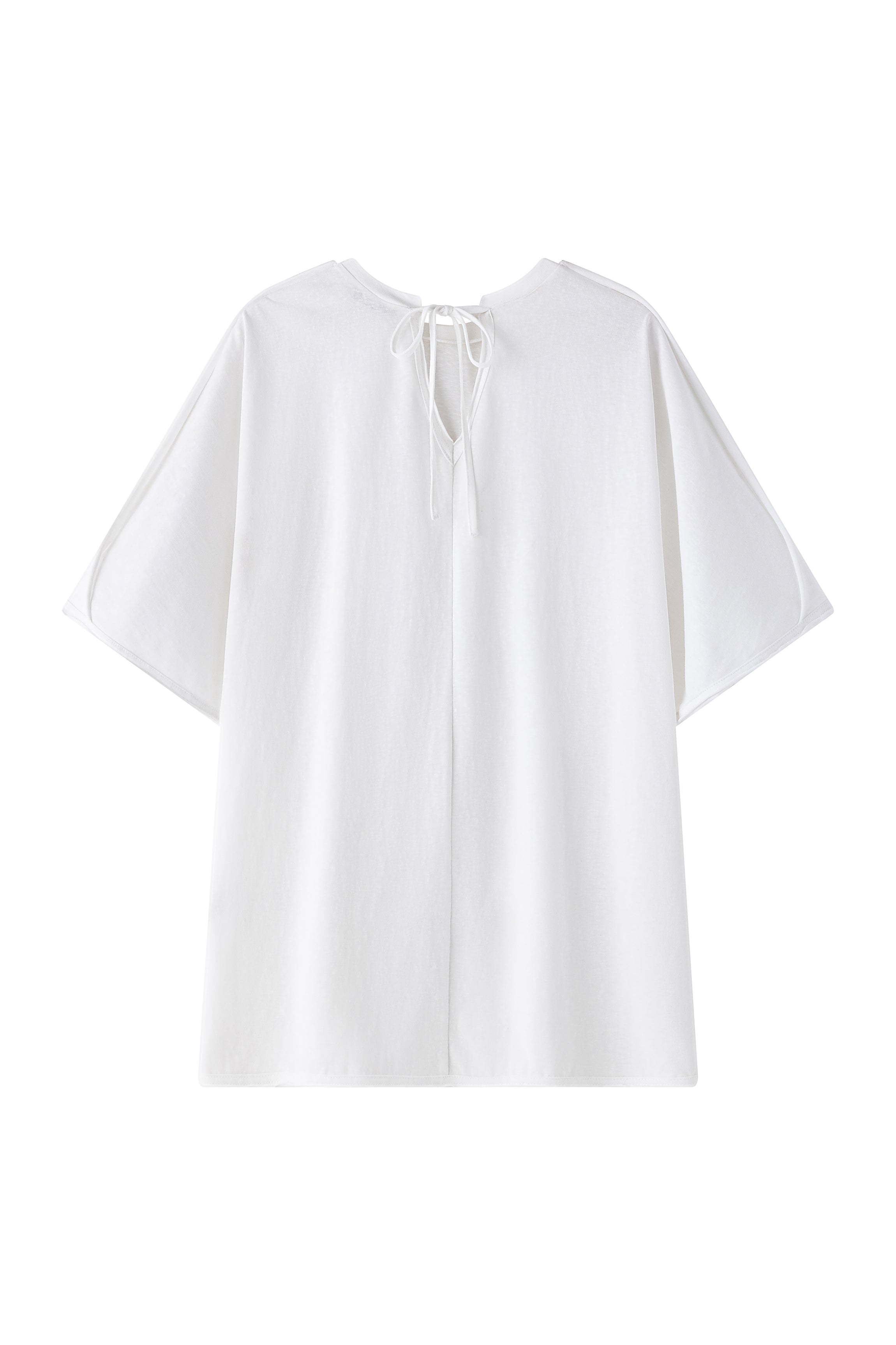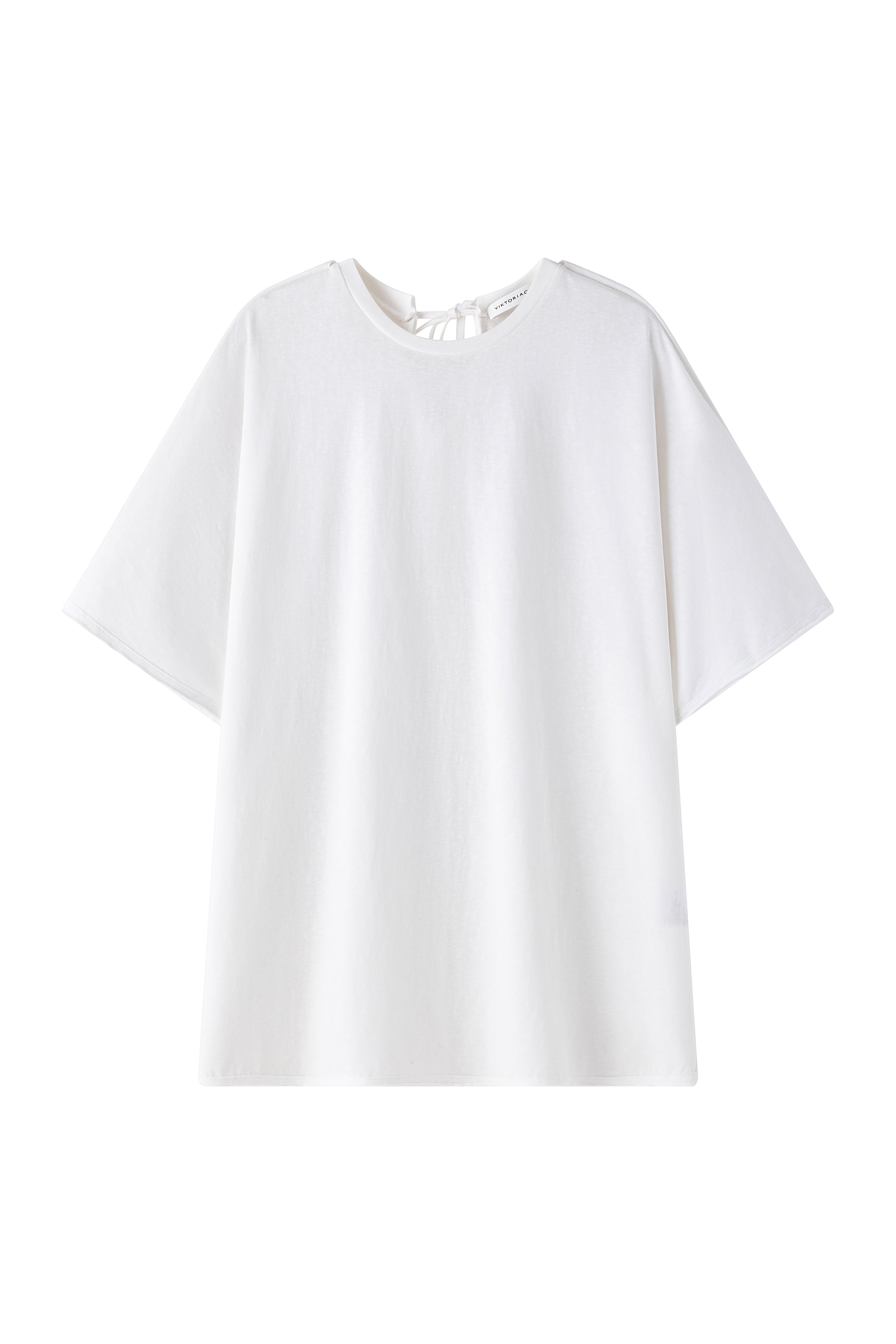 Oversized T-shirt with tie detail at the upper back. To be paired with the Sabina wide skirt.