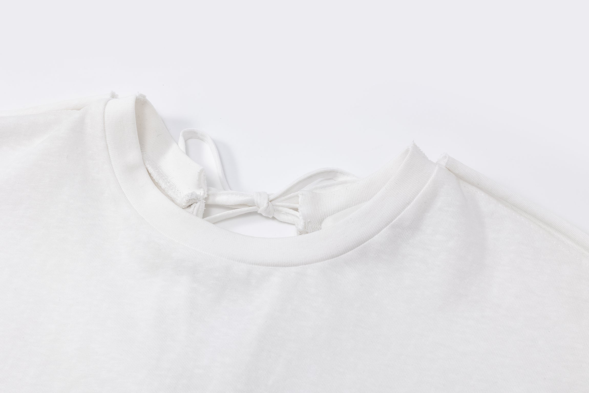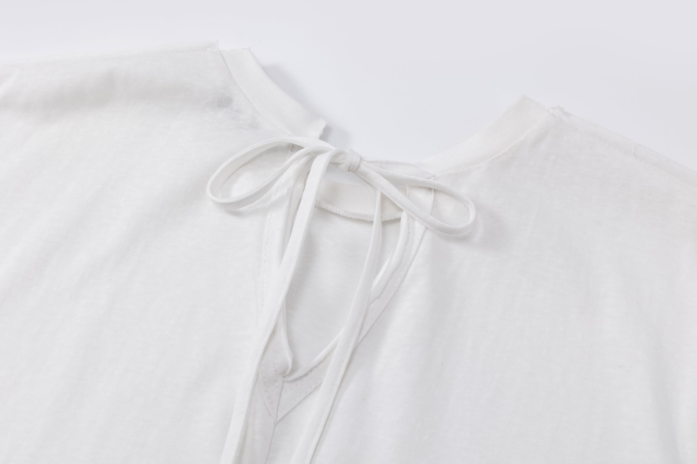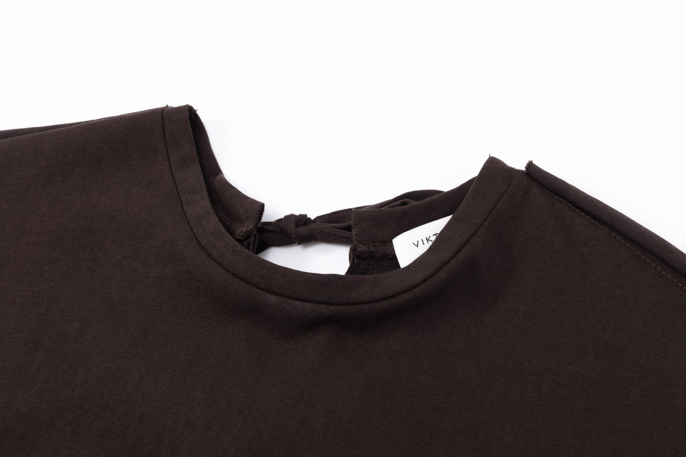 Oversized T-shirt with tie detail at the upper back. To be paired with the Sabina wide skirt.