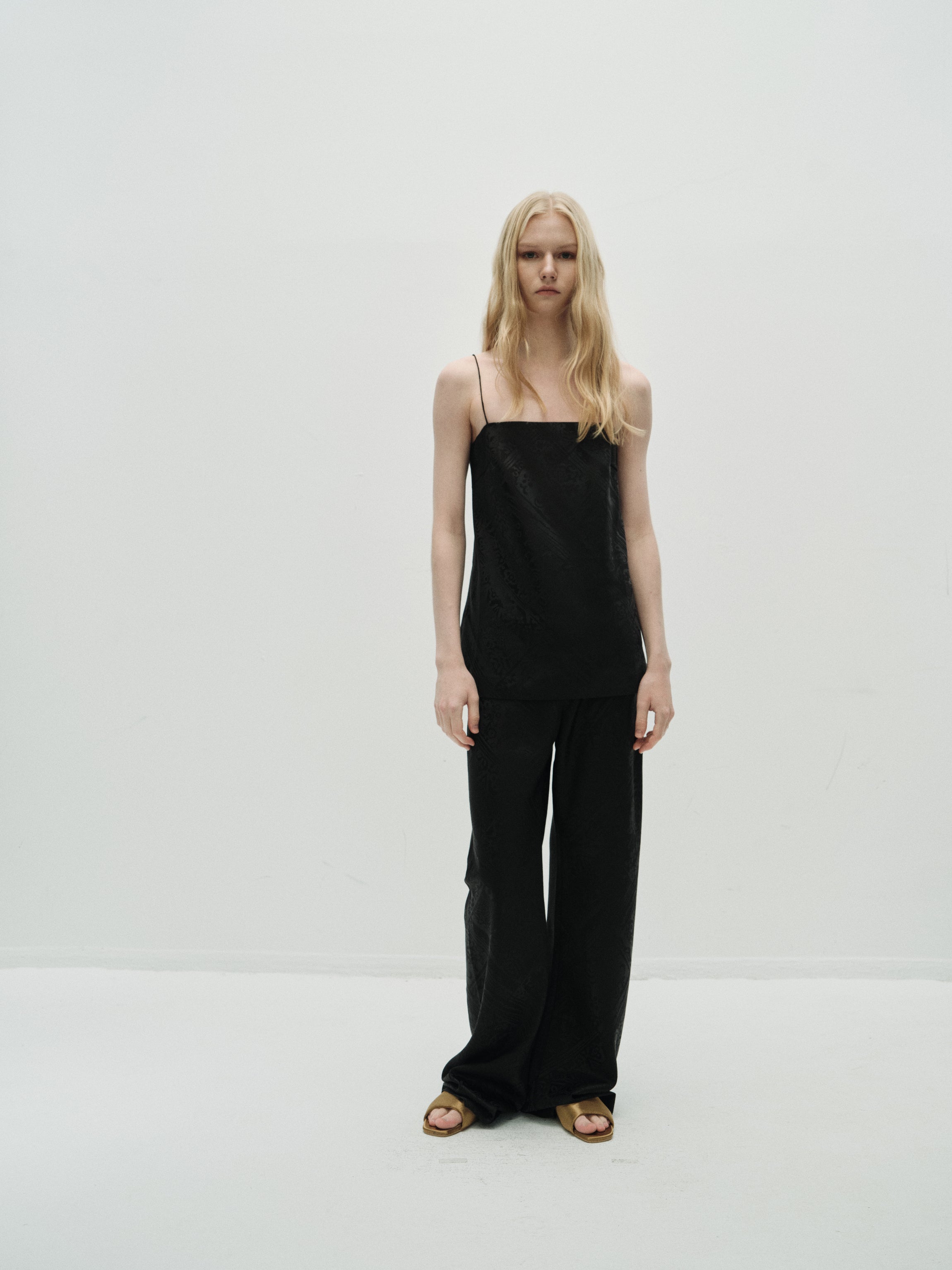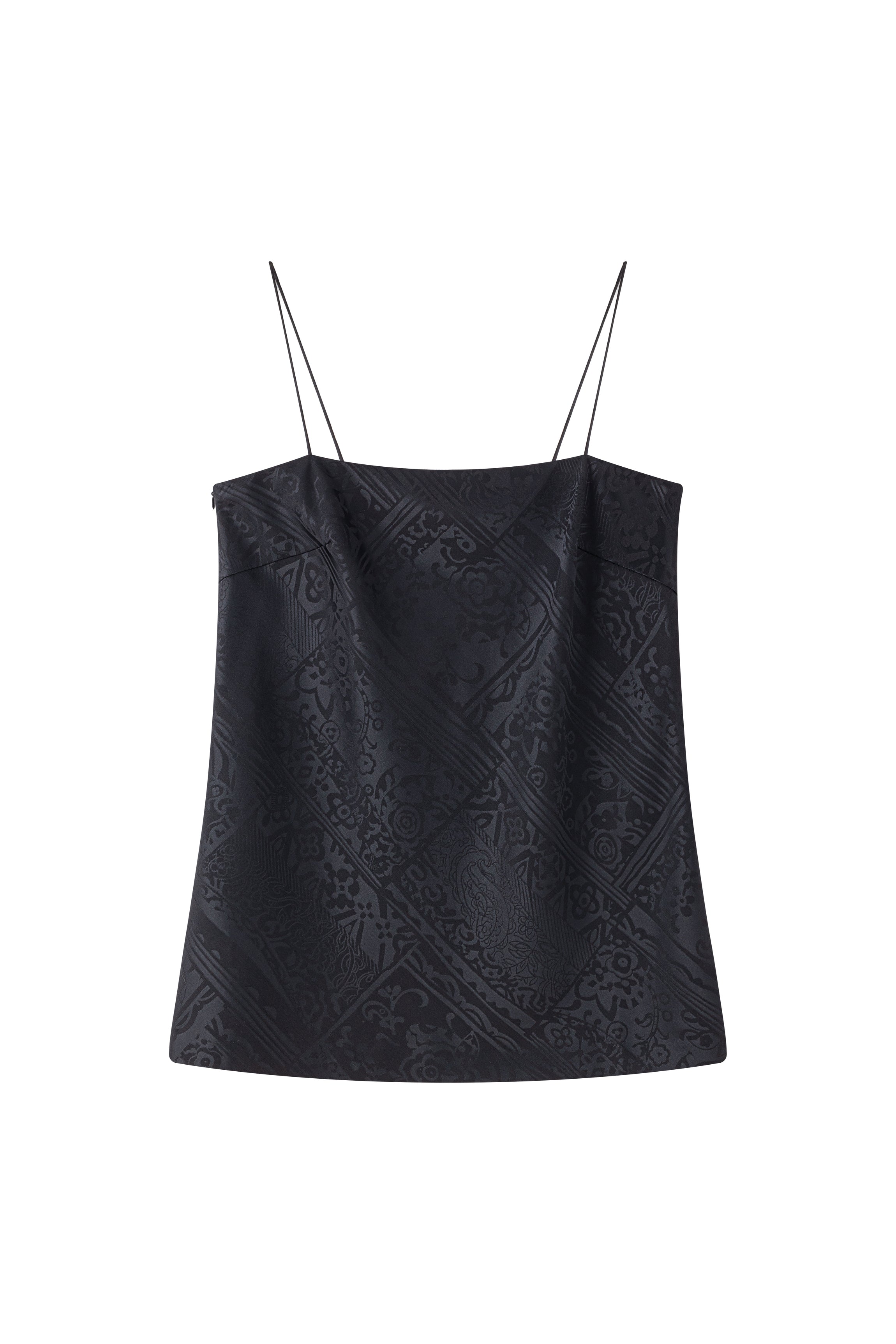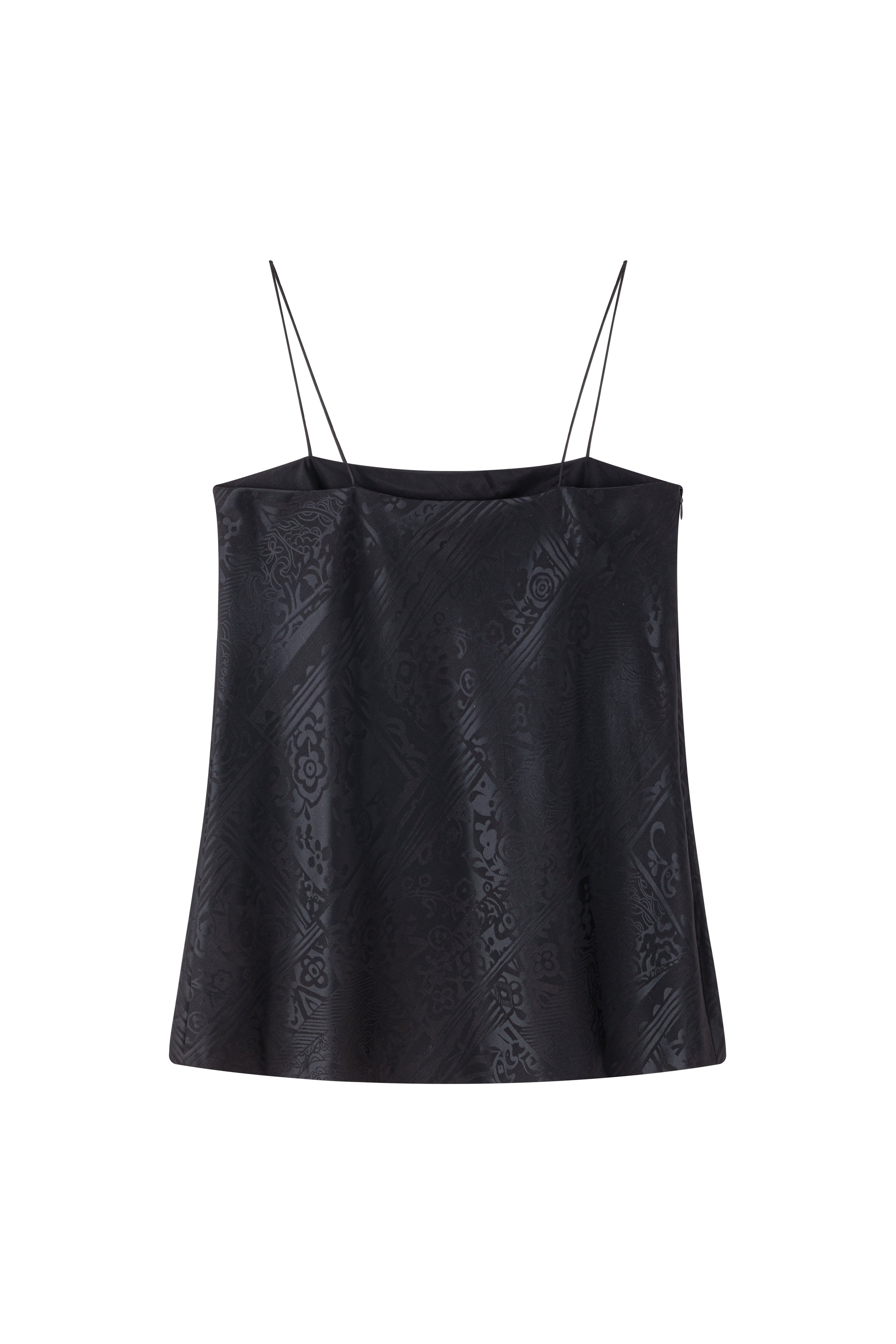Spaghetti strap top in a silk-like jacquard, featuring a delicate shine and an all-over woven pattern. To be paired with the Tina jacquard trousers.