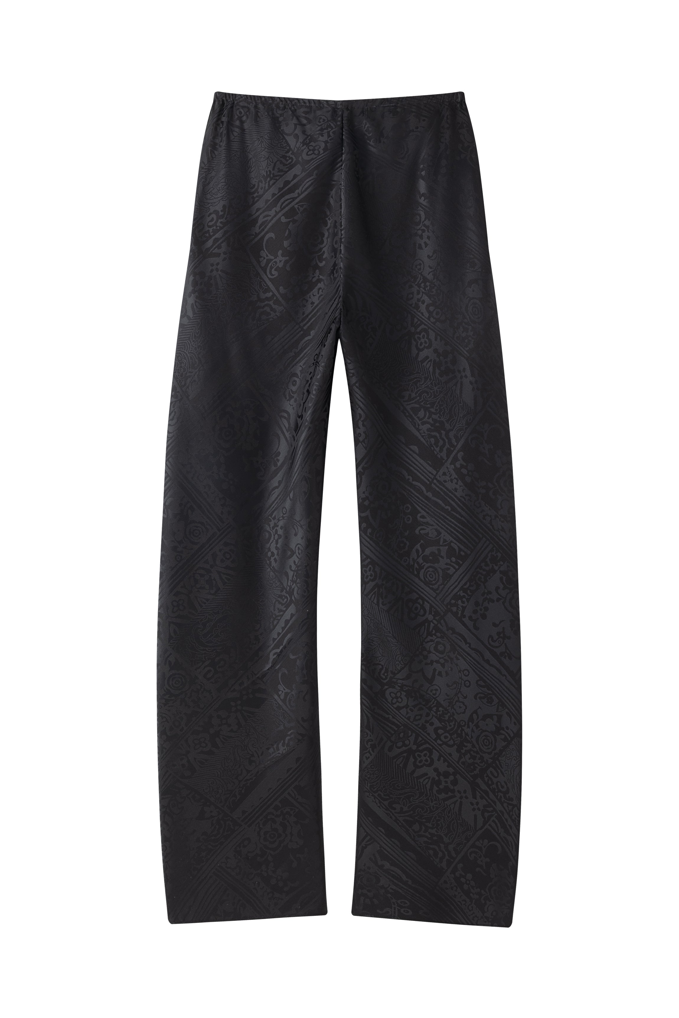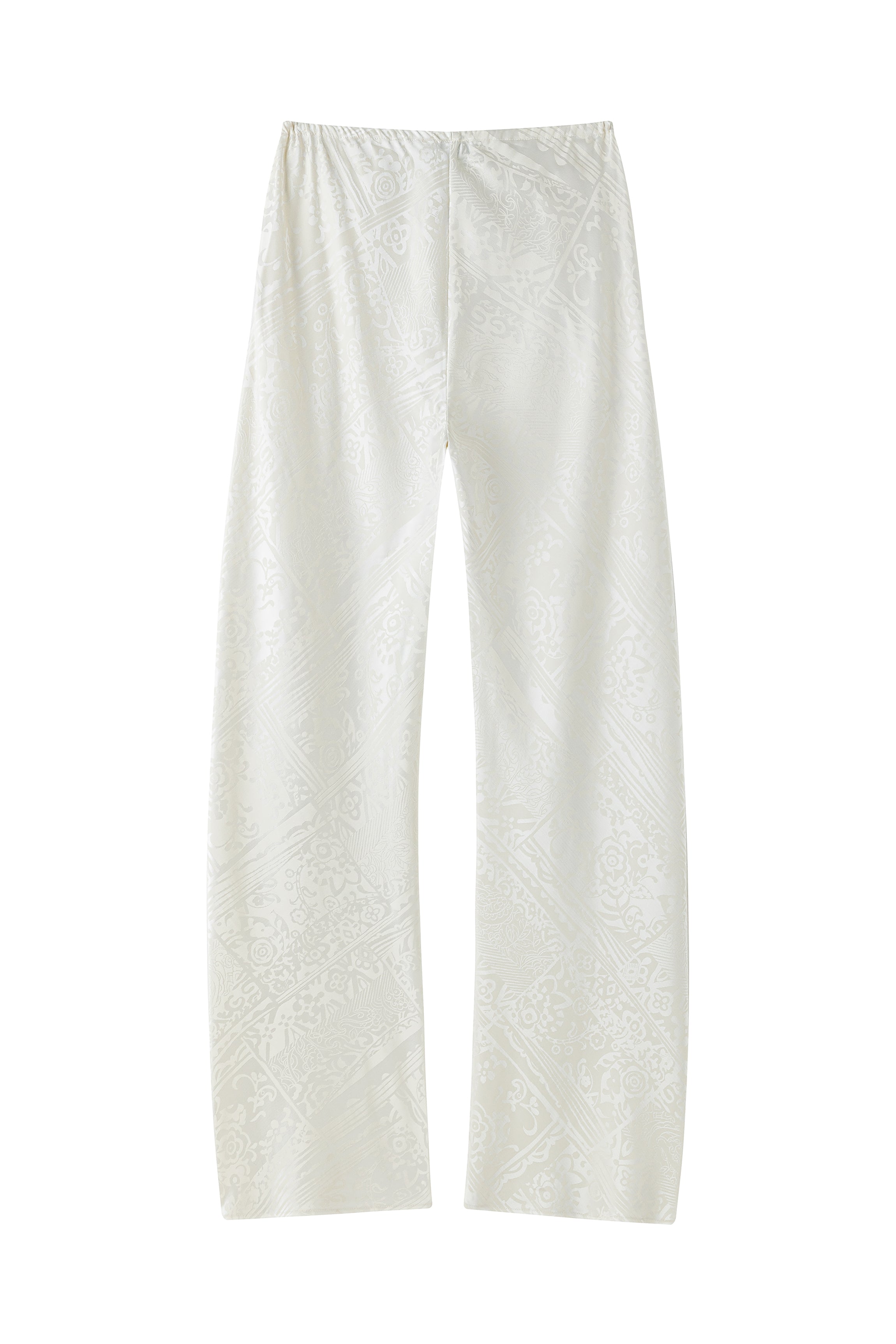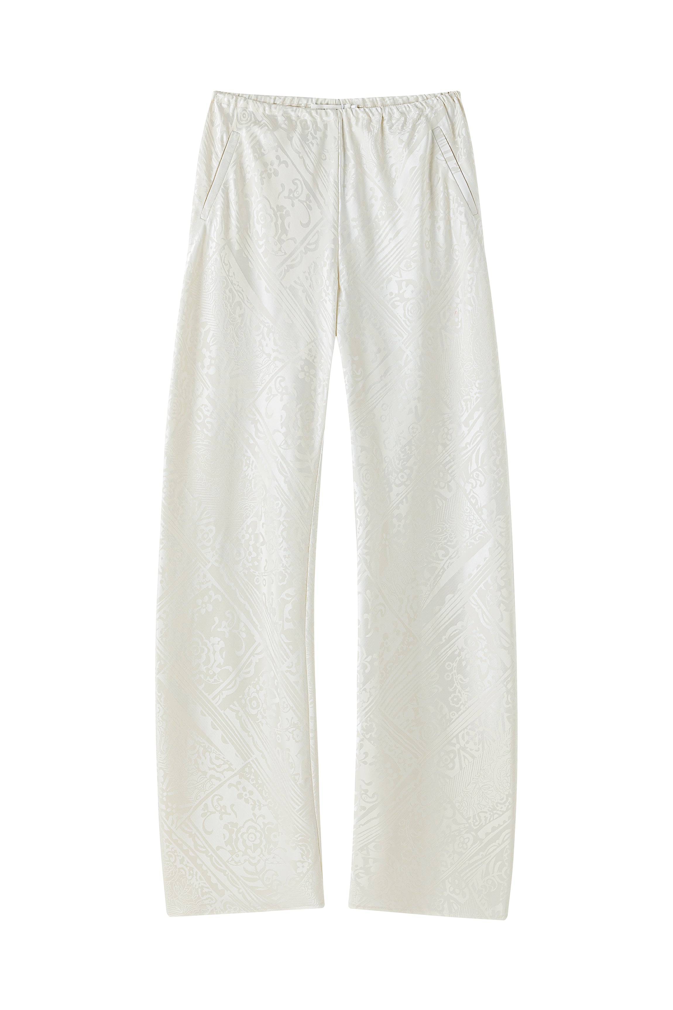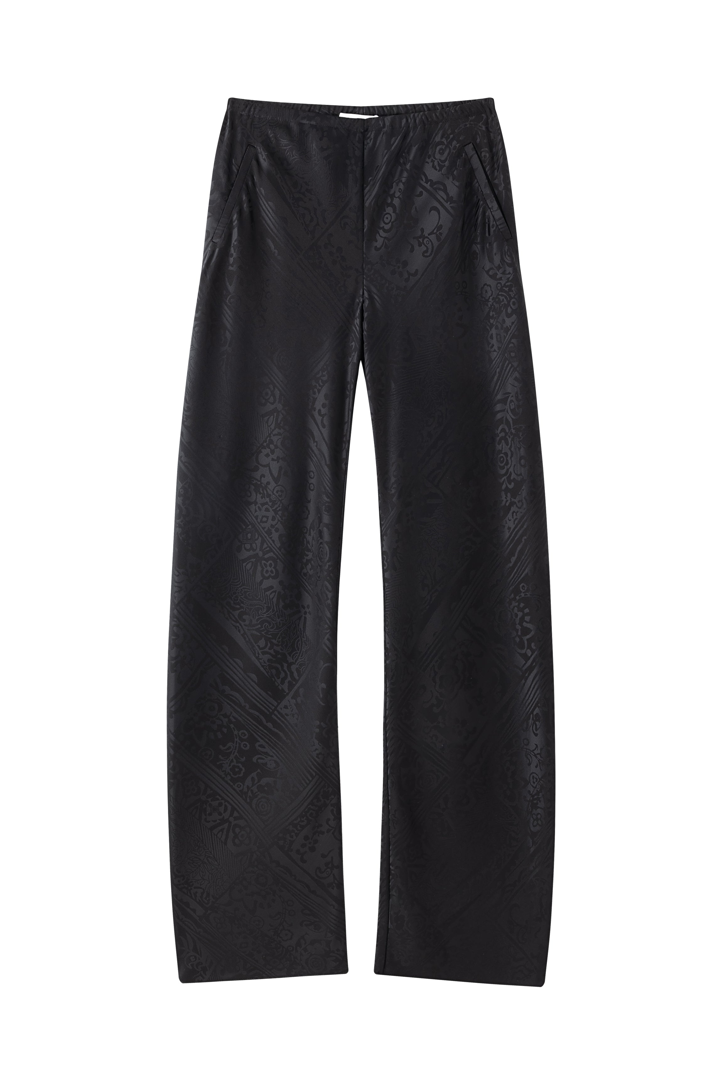 Trousers in silk-like jacquard, detailed with a subtle shine and side welt pockets for a clean finish. Elastic waistband.