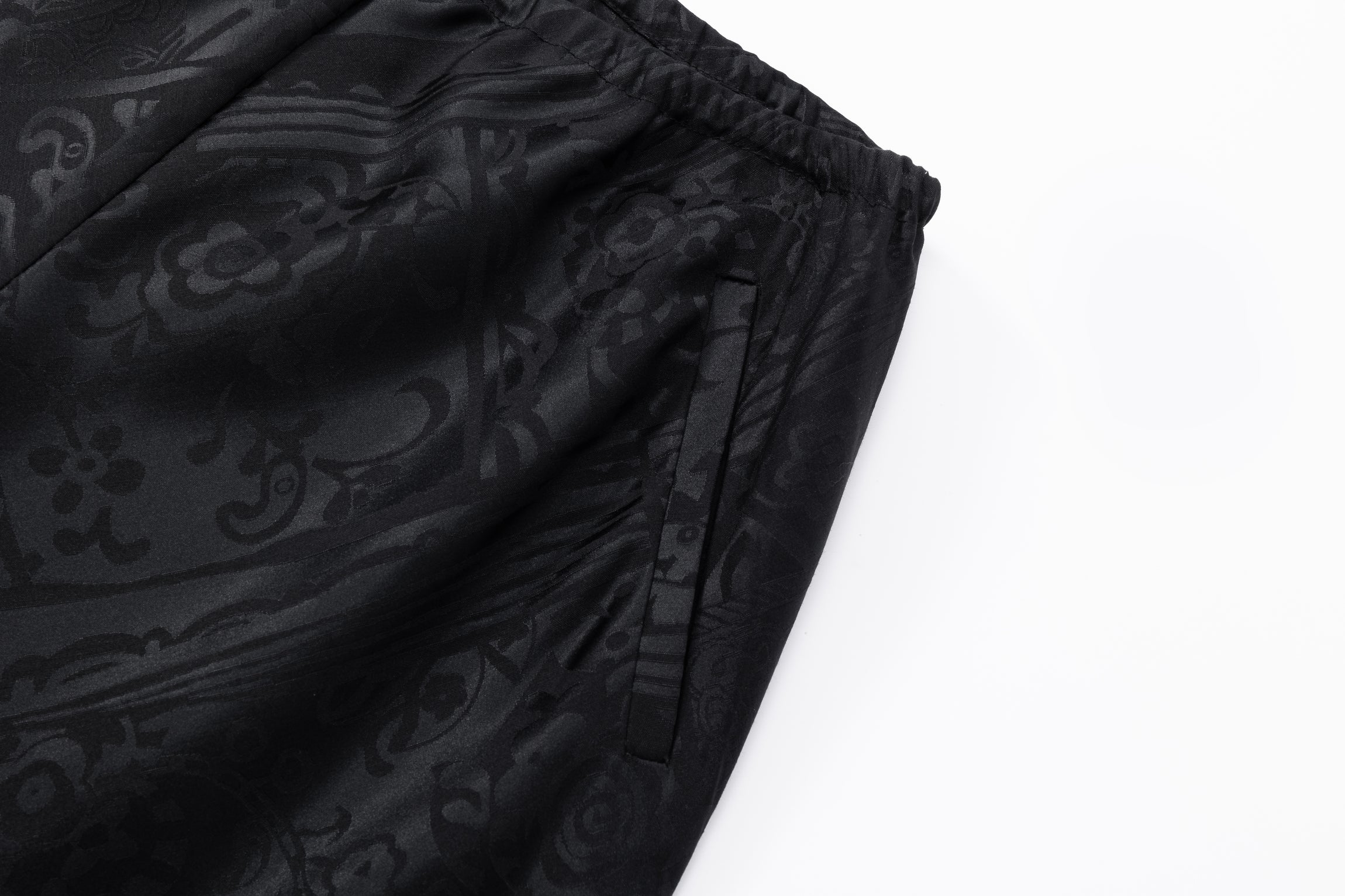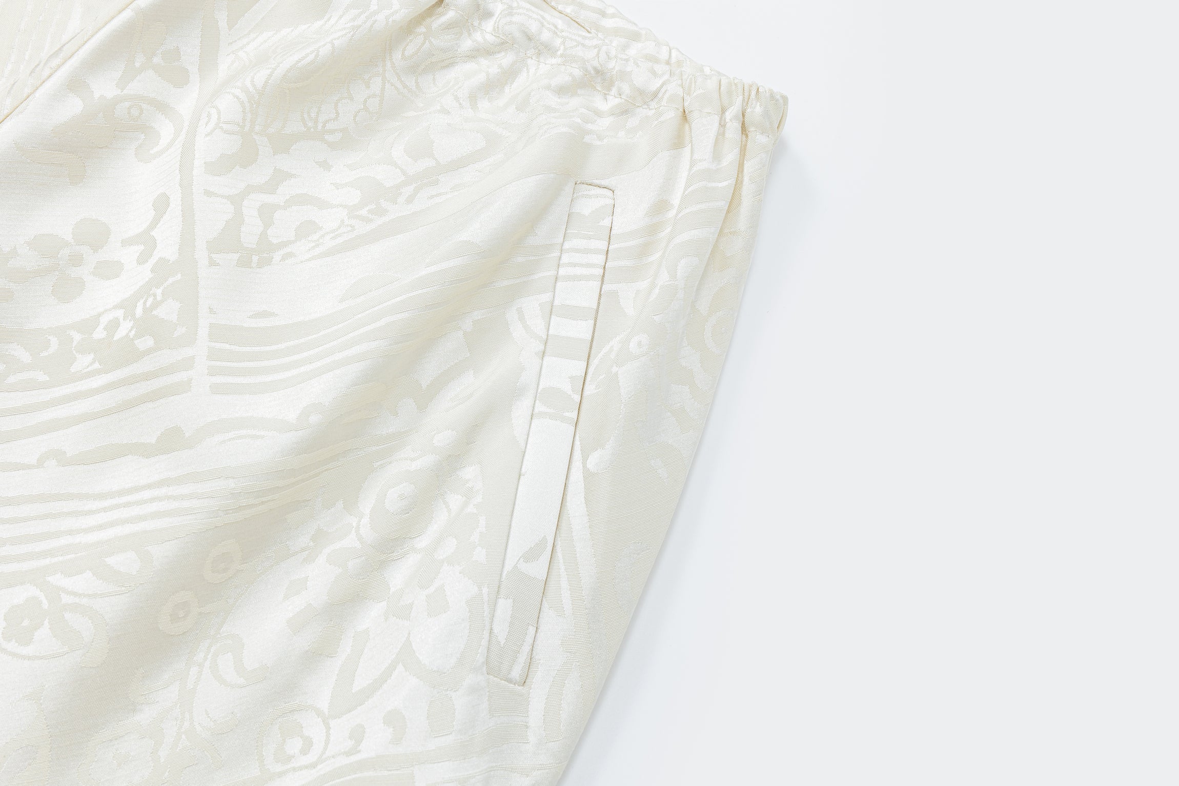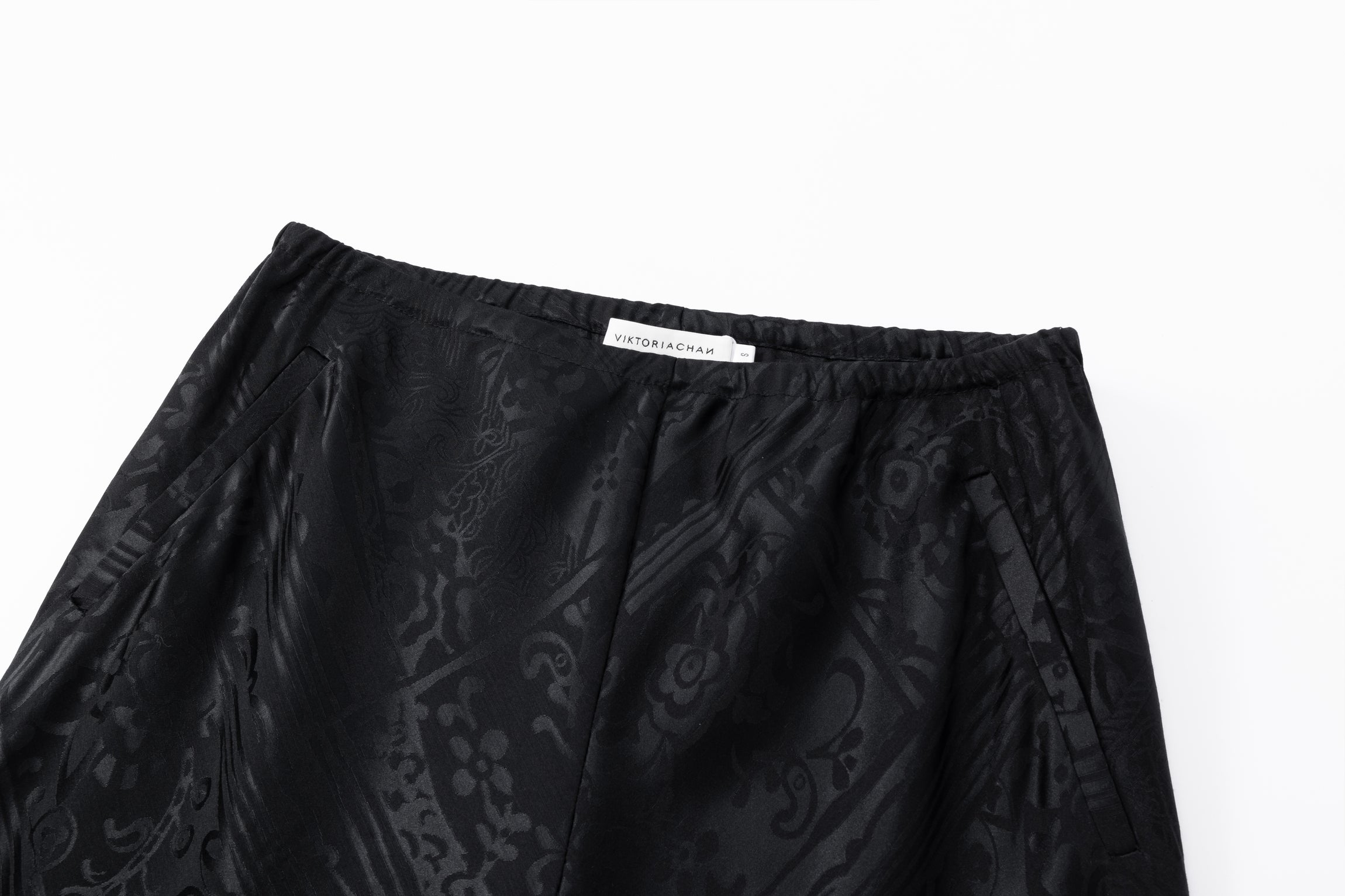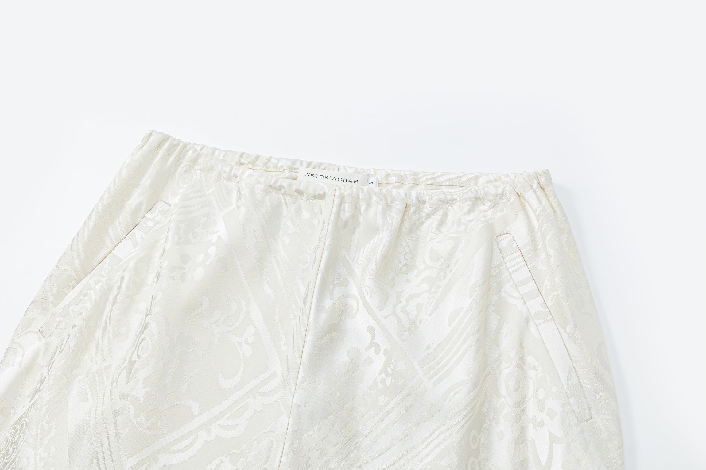 Trousers in silk-like jacquard, detailed with a subtle shine and side welt pockets for a clean finish. Elastic waistband.