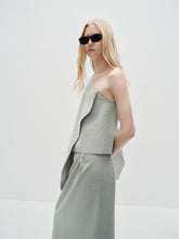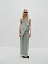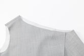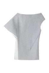 This asymmetrical blouse features a raw, unfinished edge for a deconstructed look. The silhouette is irregular and fluid, with a visible white lining that subtly contrasts the outer fabr...