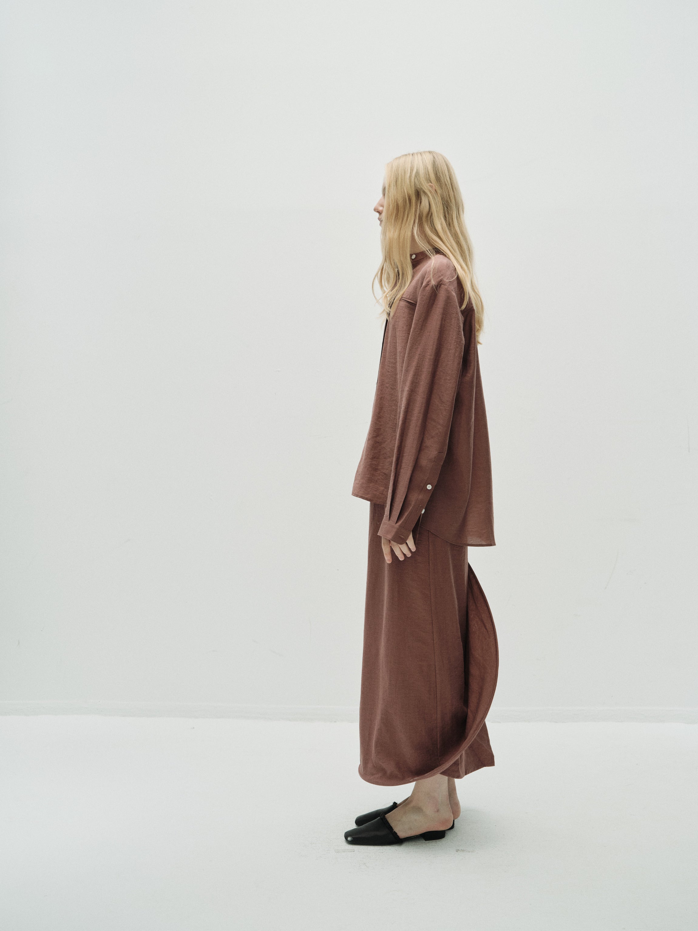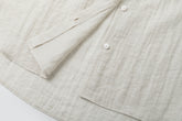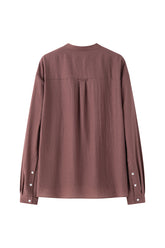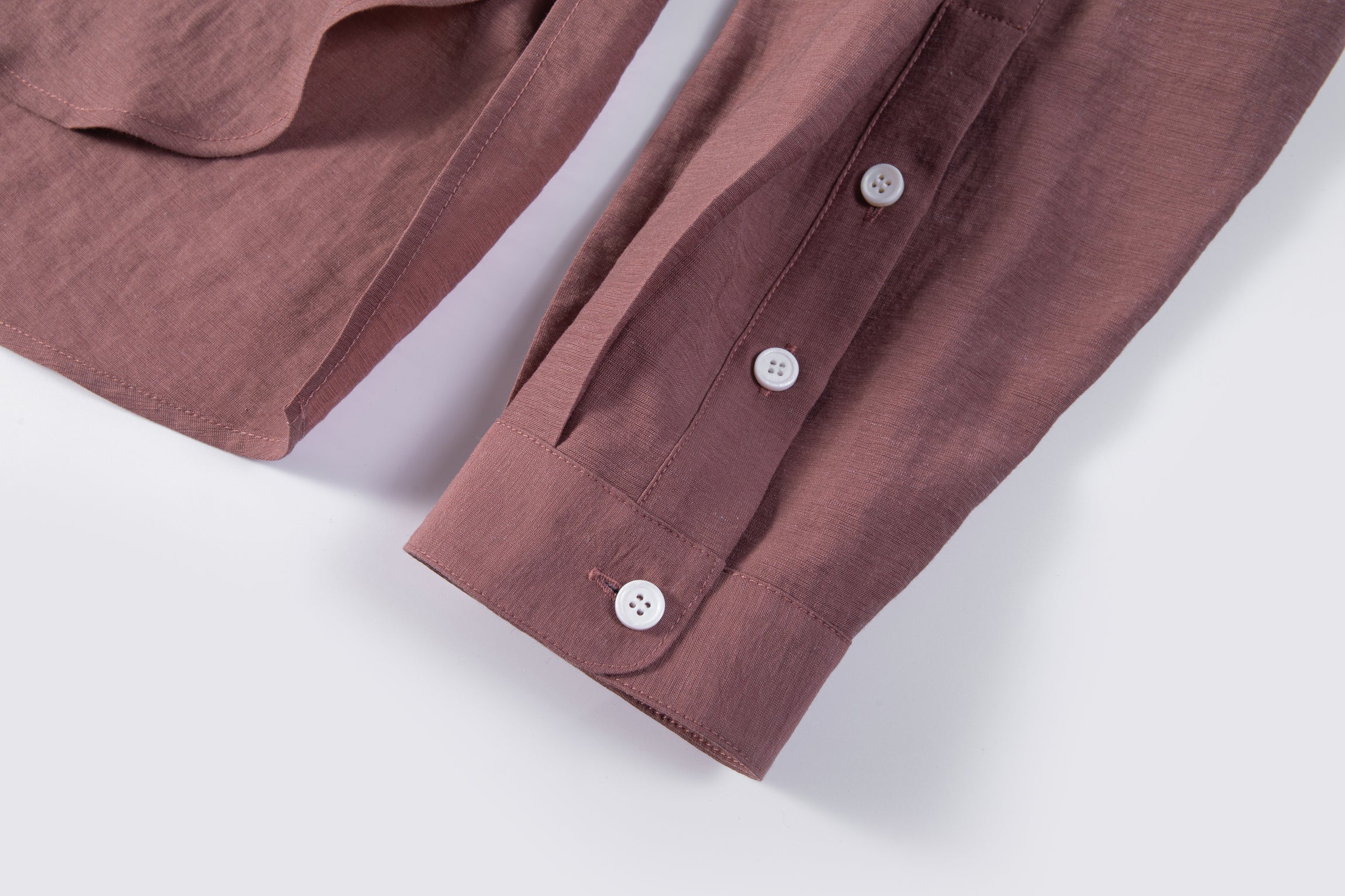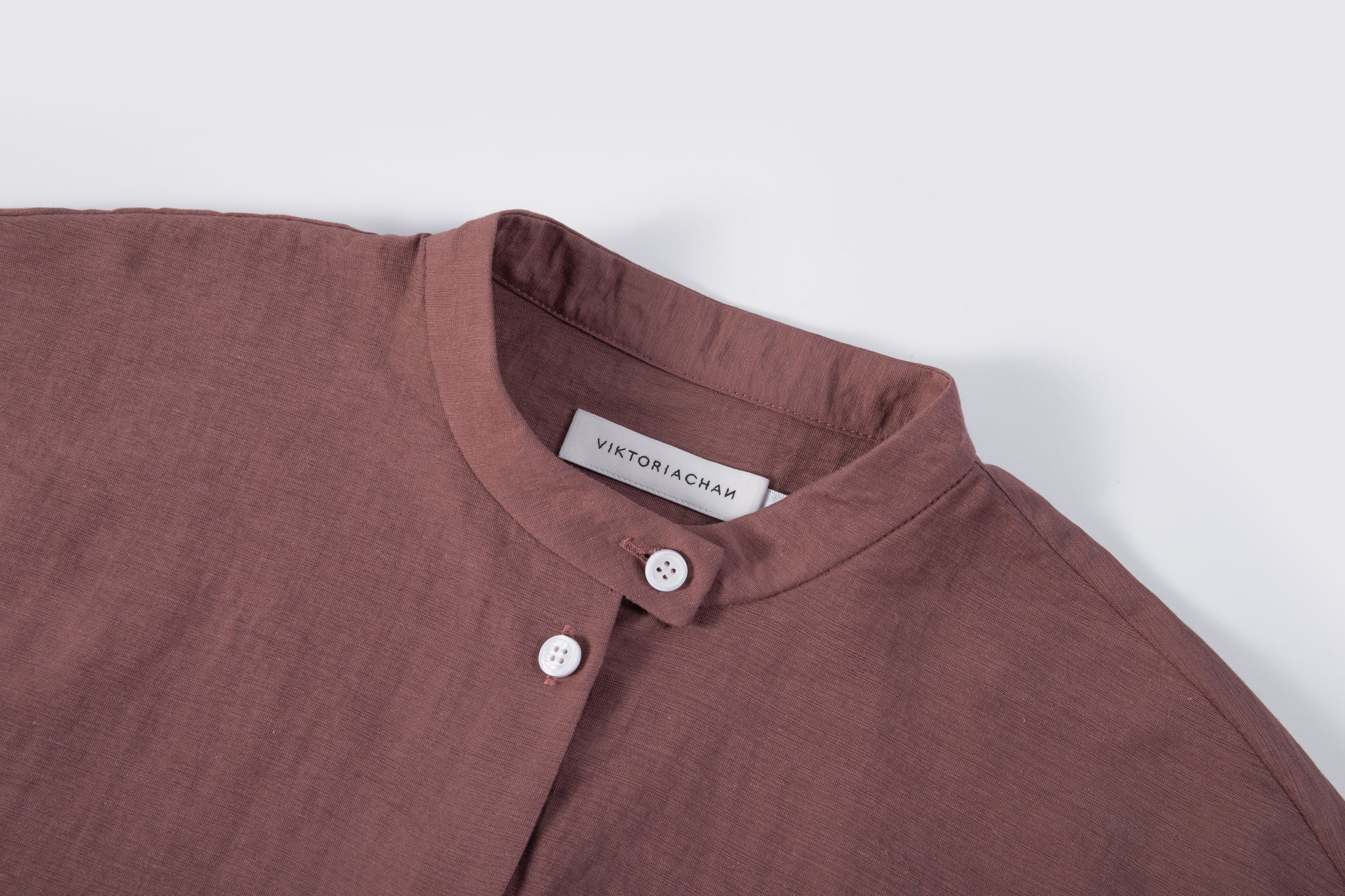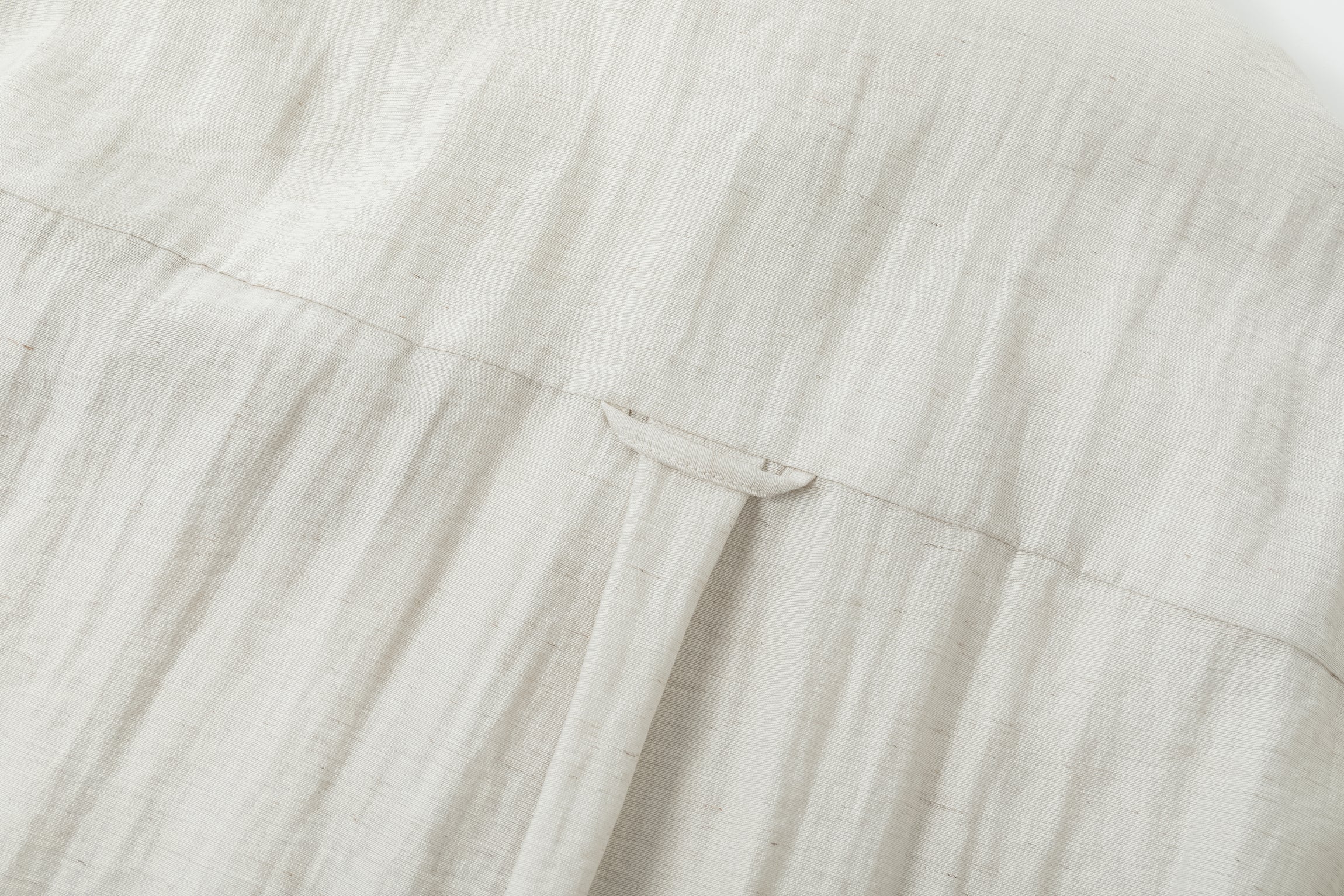 Lightweight shirt featuring a minimalist Mao collar, a single front welt pocket and delicate white buttons. Designed with dropped shoulders for a relaxed silhouette and an airy, effort...