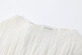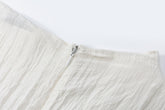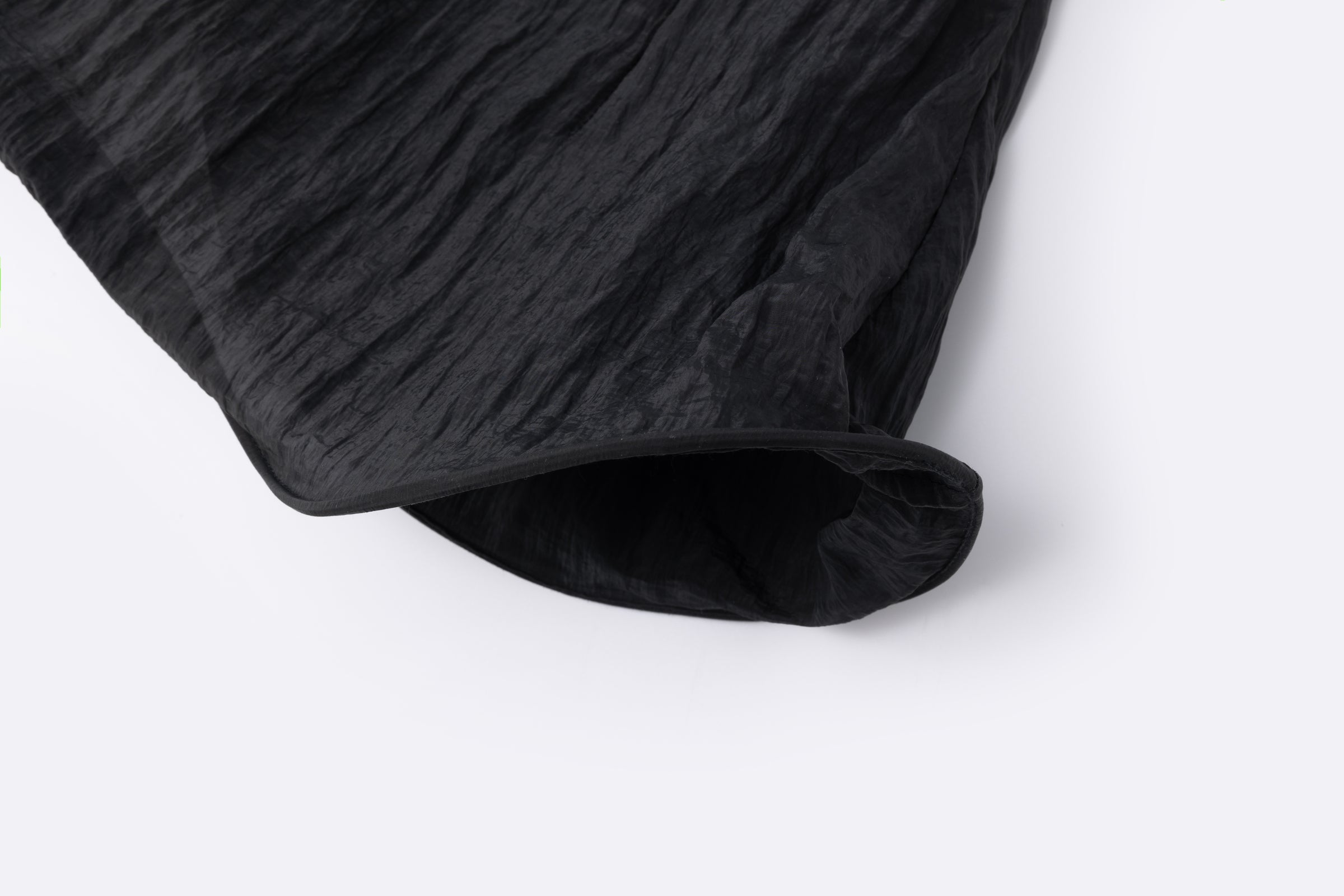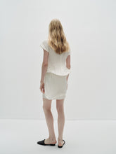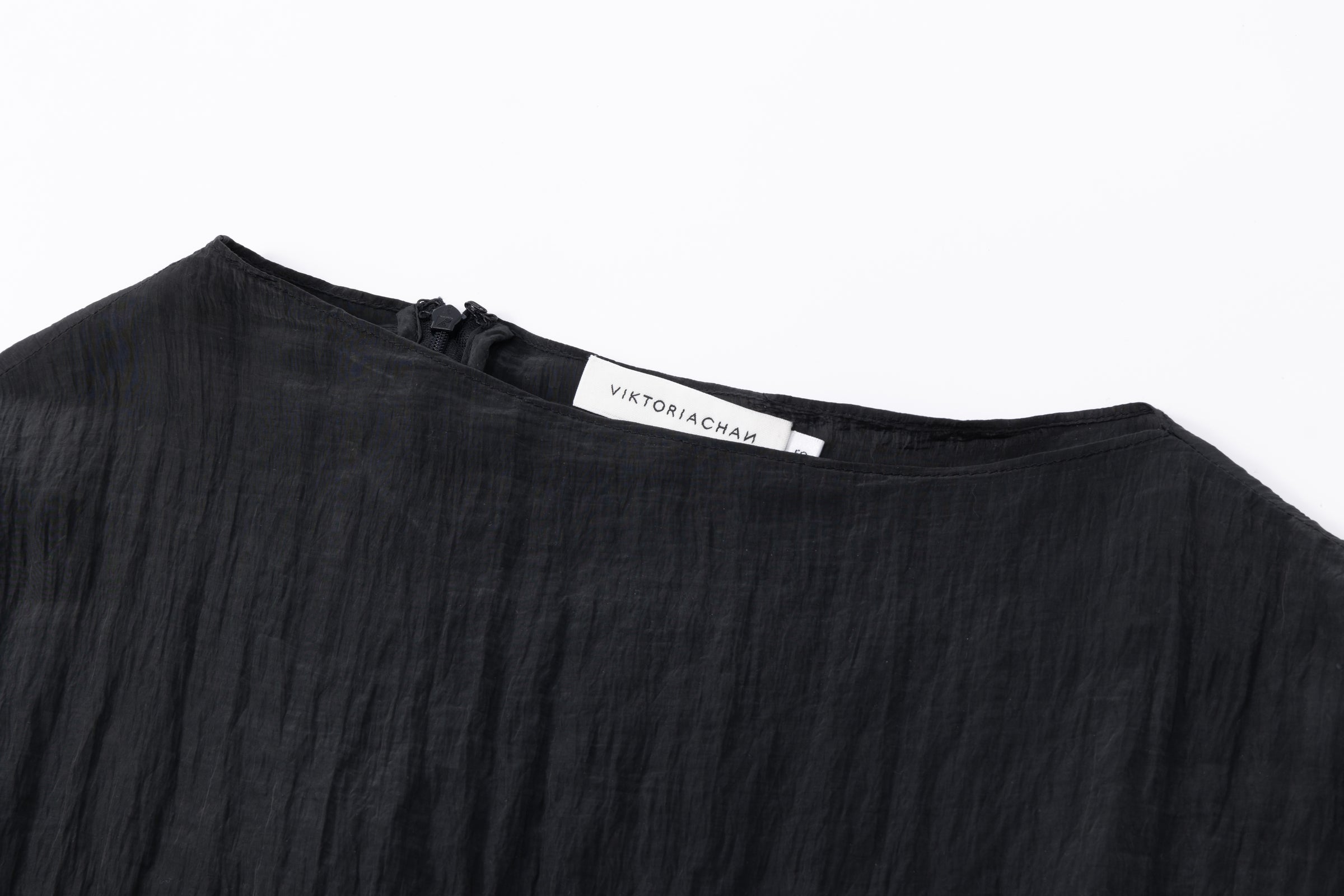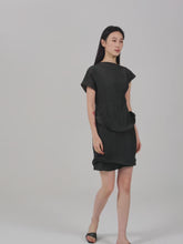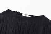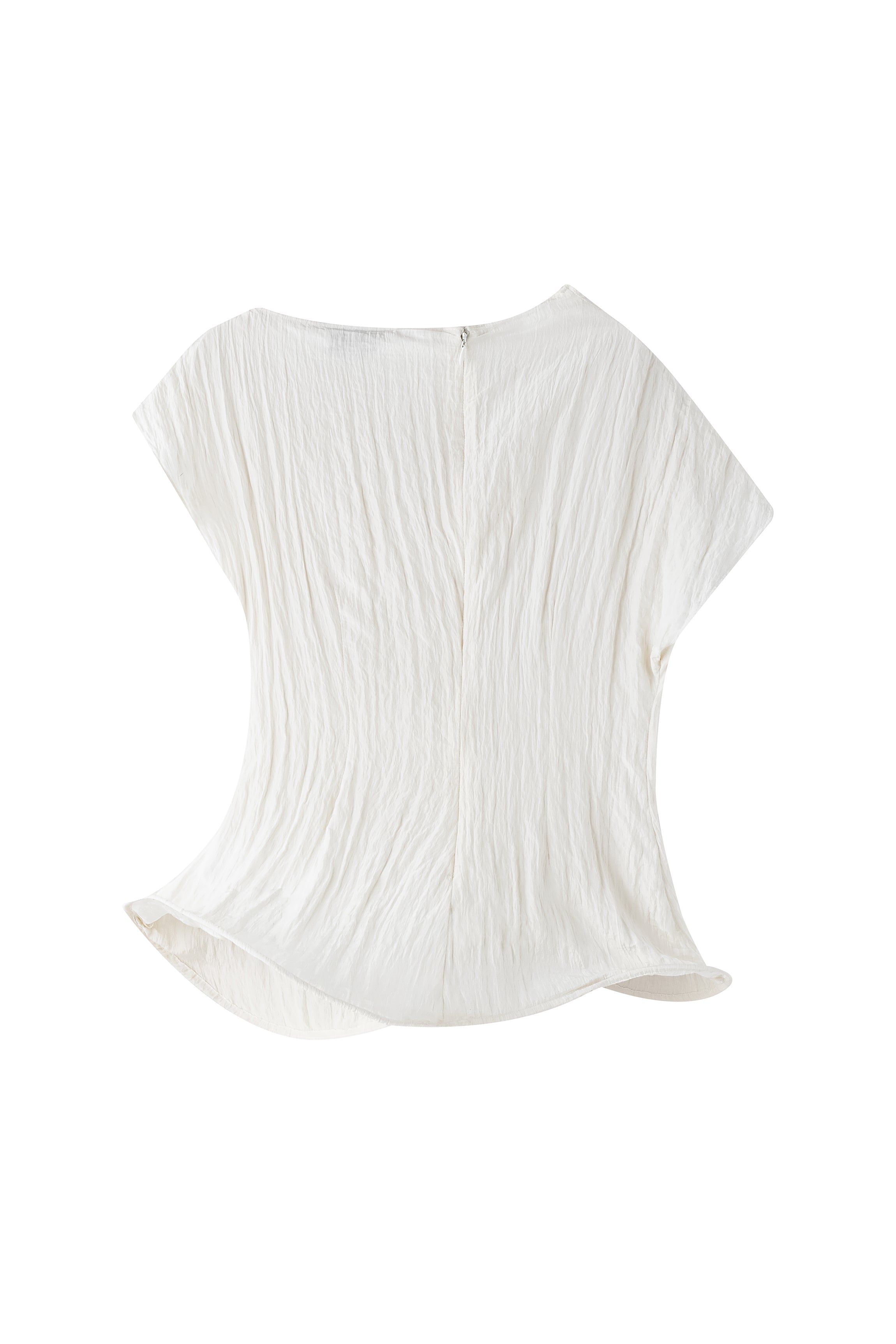 Crinkled short-sleeved top with an asymmetrical stiff hemline creating a gentle twirling effect. To be paired with the matching Uni short skirt.