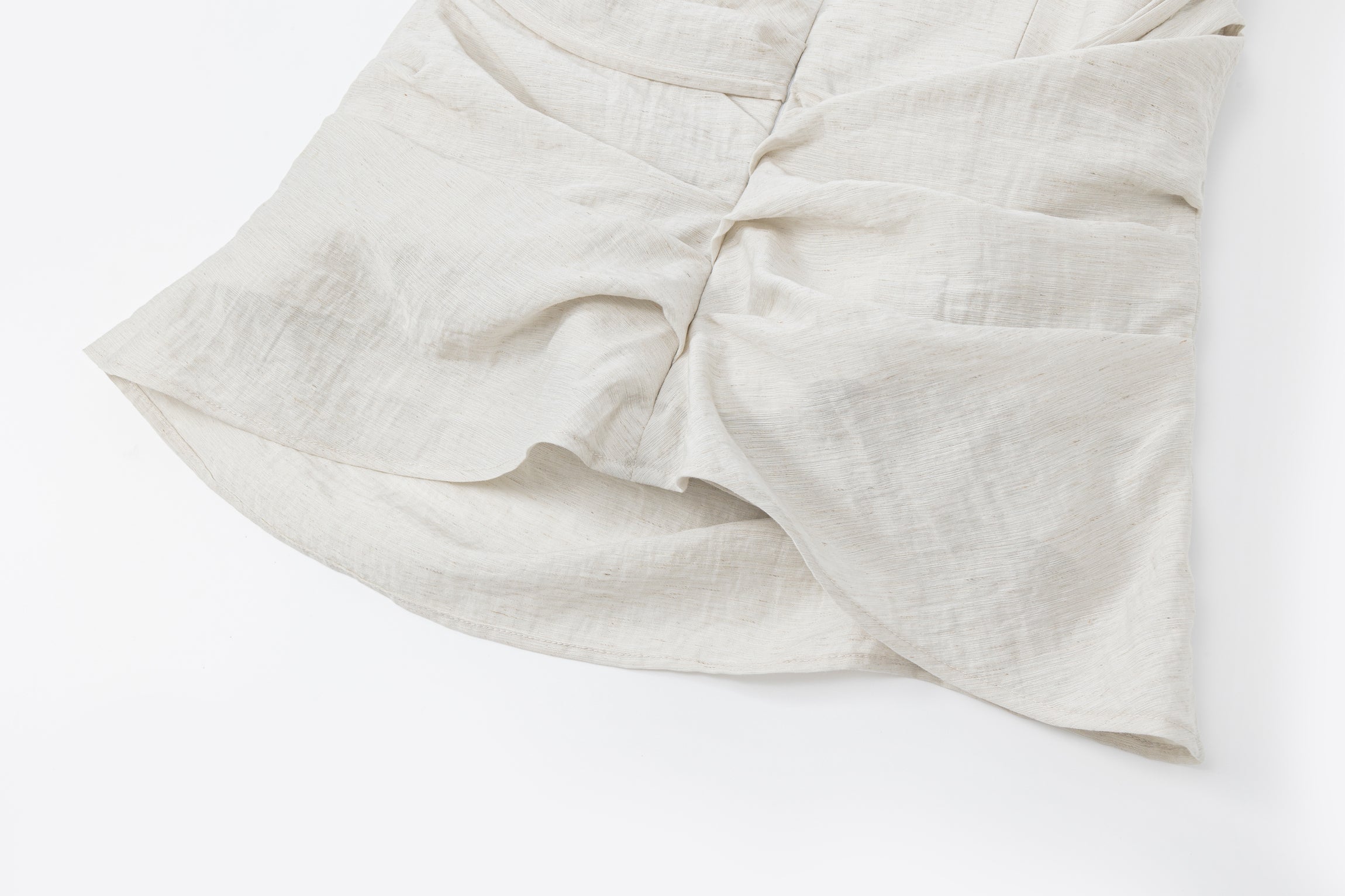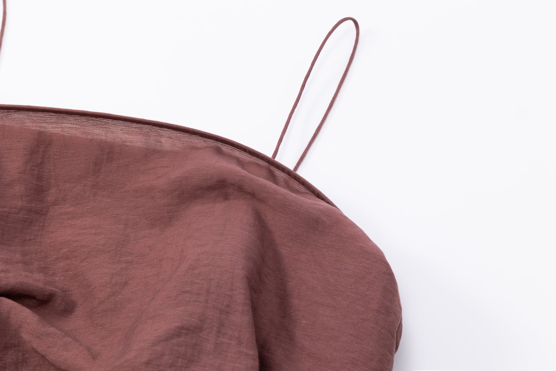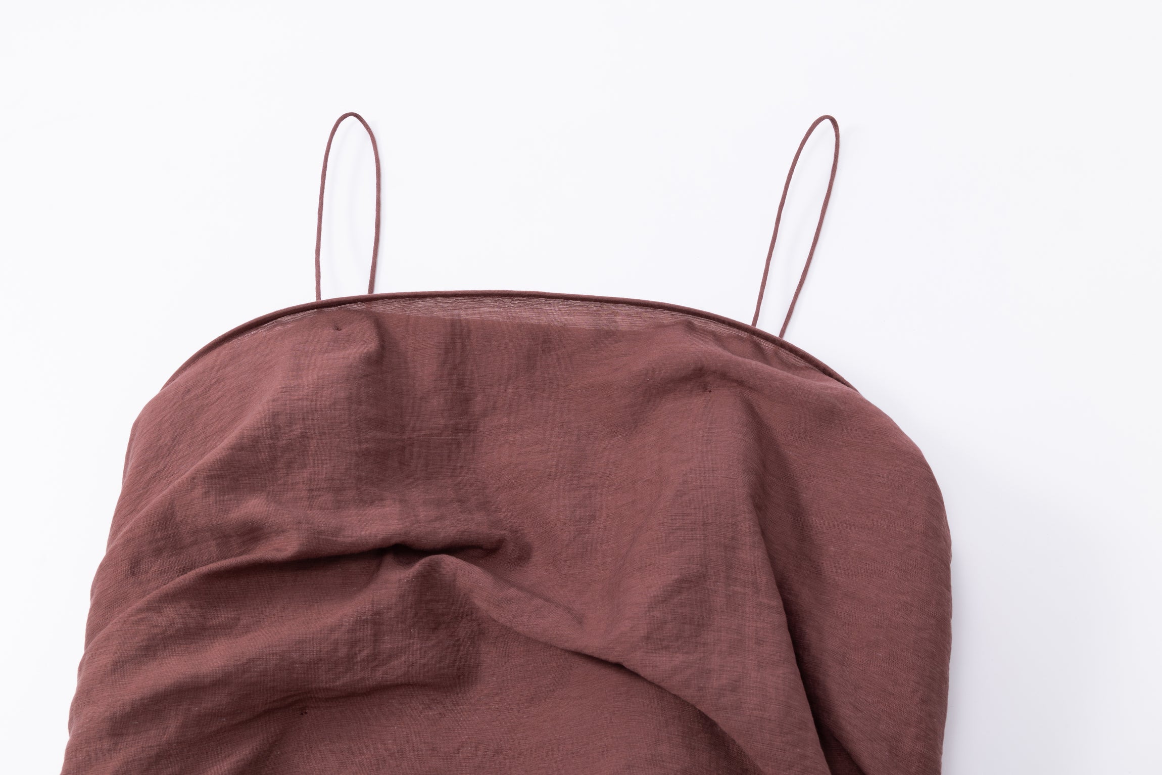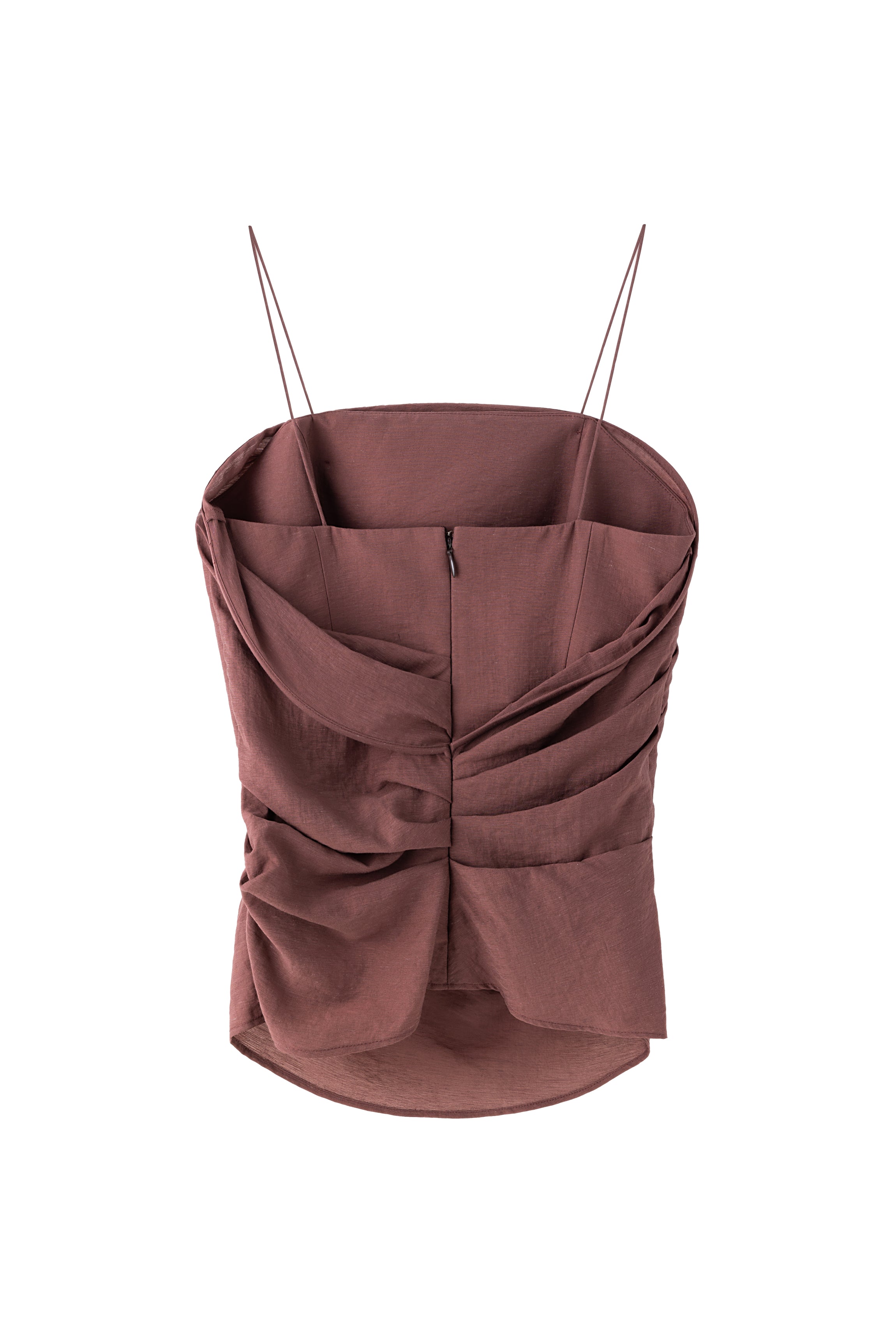 Spaghetti strap top featuring a horizontal gathered swirl detail that wraps around the bodice. Designed to be worn with the matching Uni Twirl skirt for a cohesive, sculptural look.