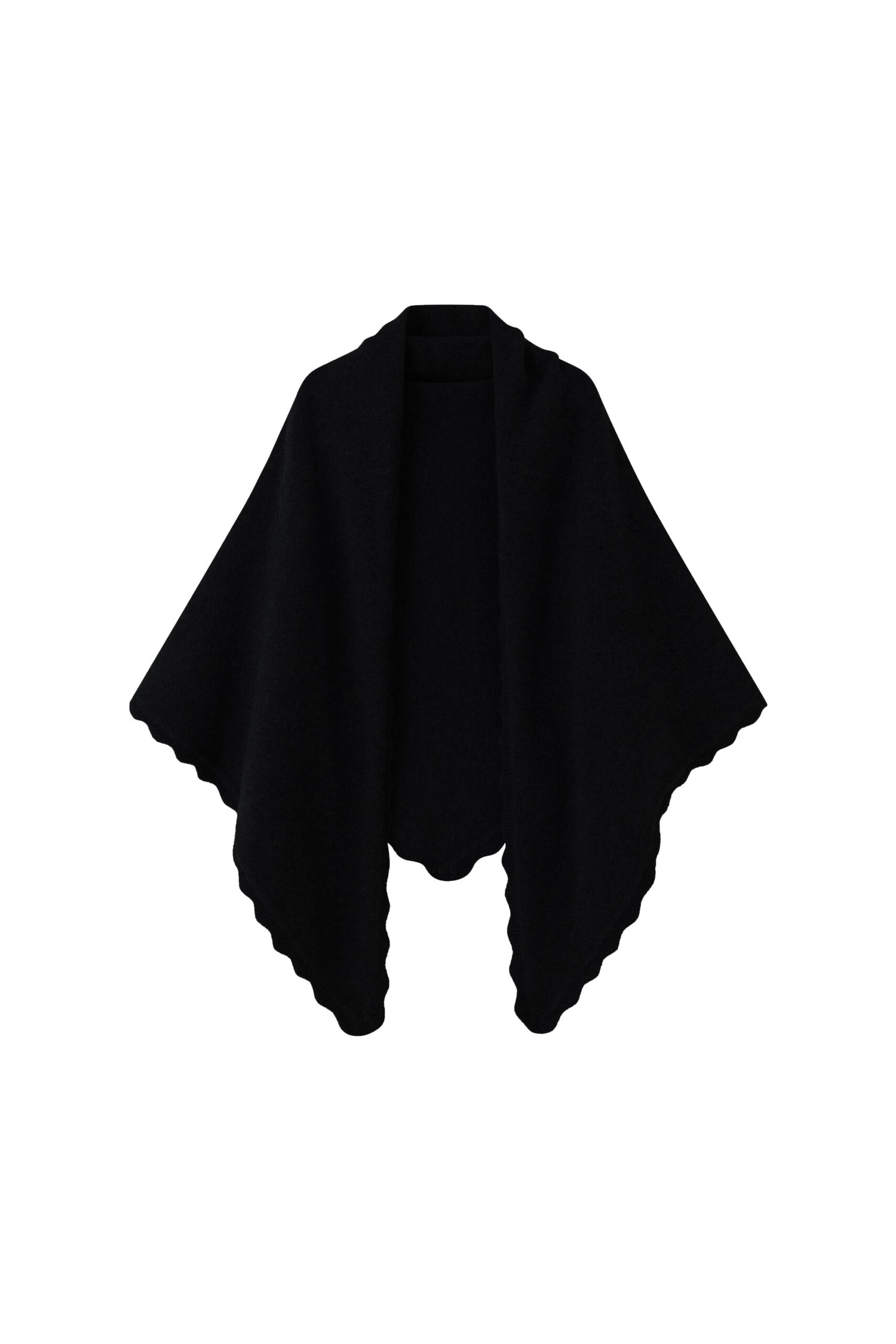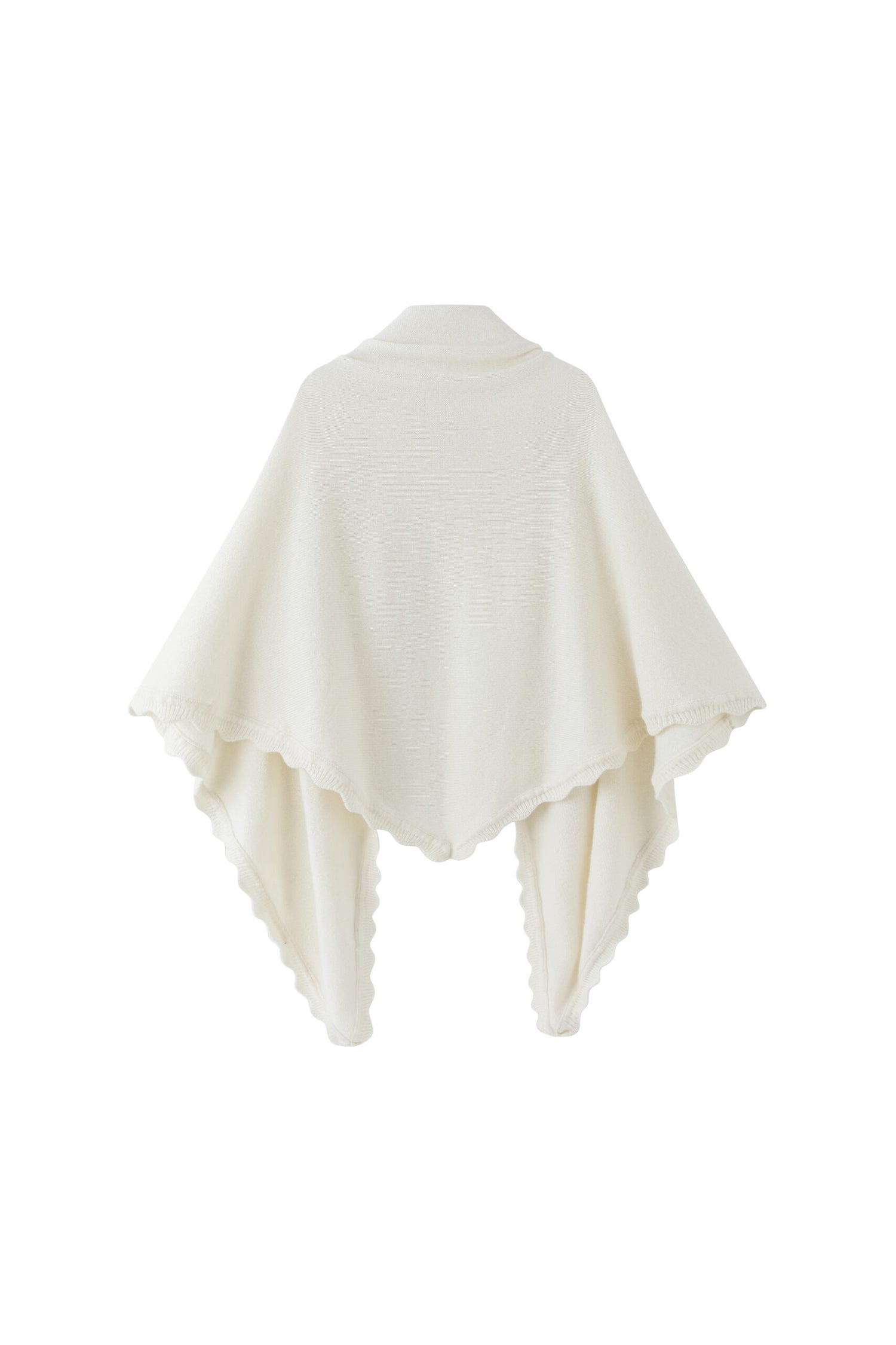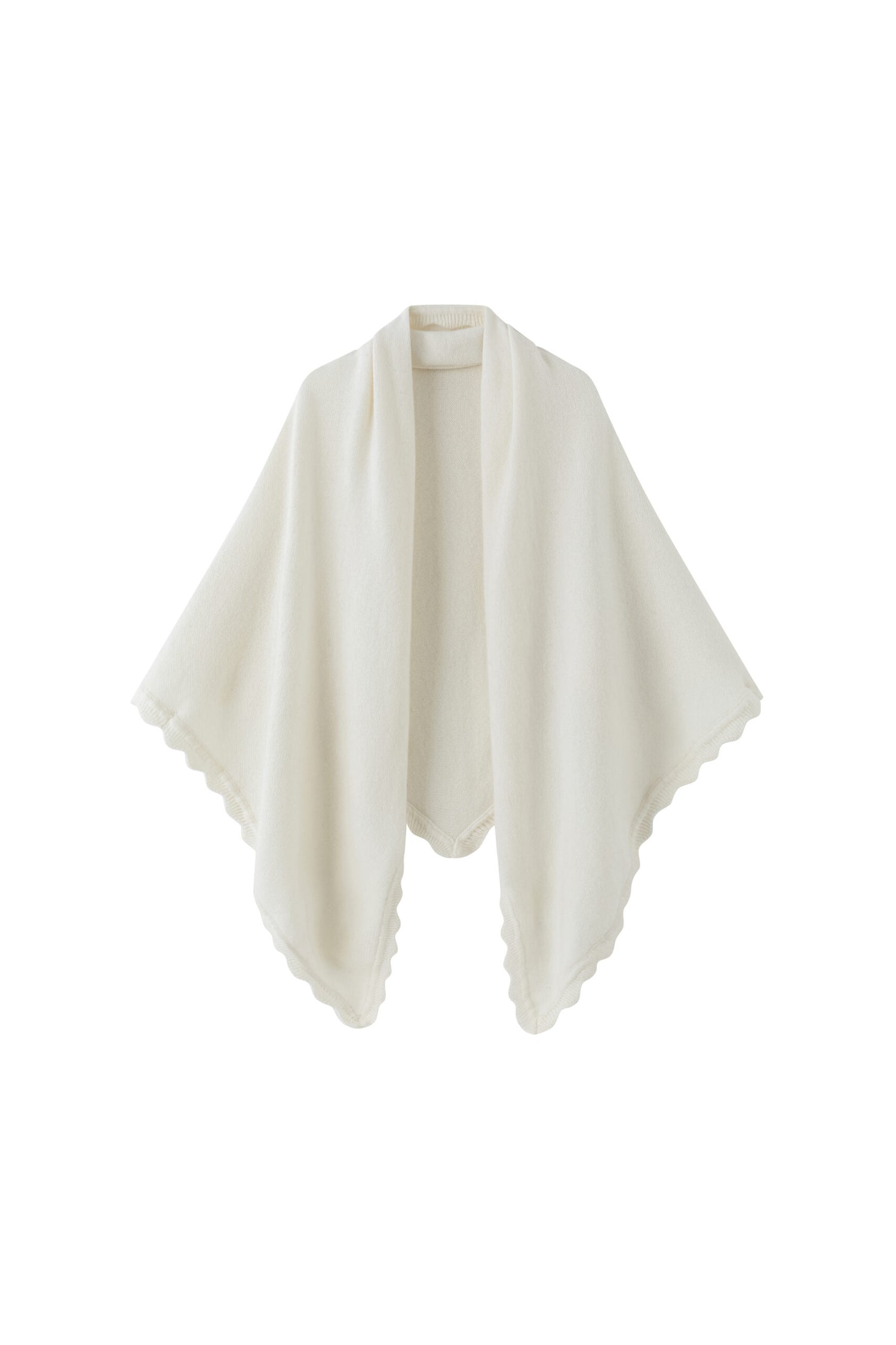 This wool and cashmere blend scarf features a subtle scalloped trim, adding a delicate and feminine touch. The soft fabric is perfect for layering during cooler weat...