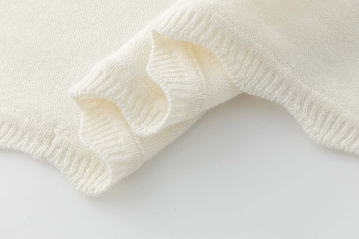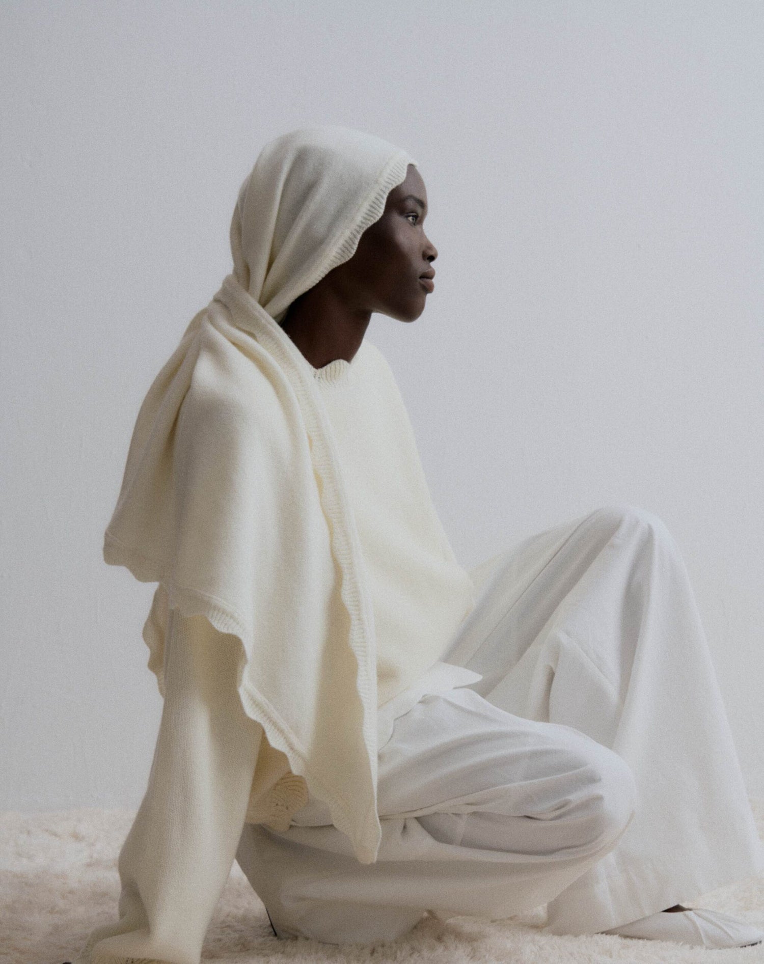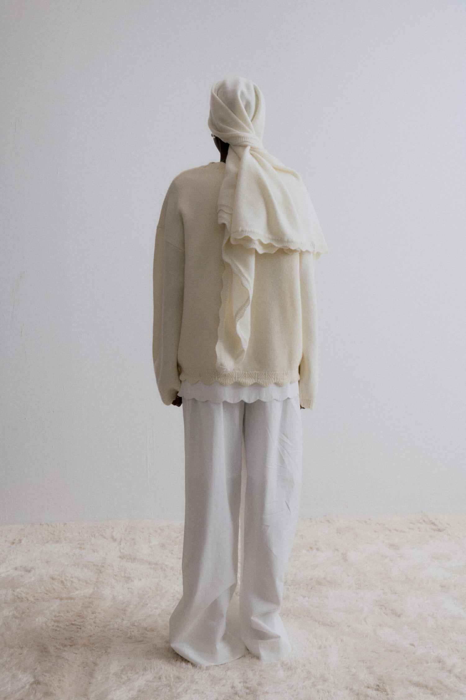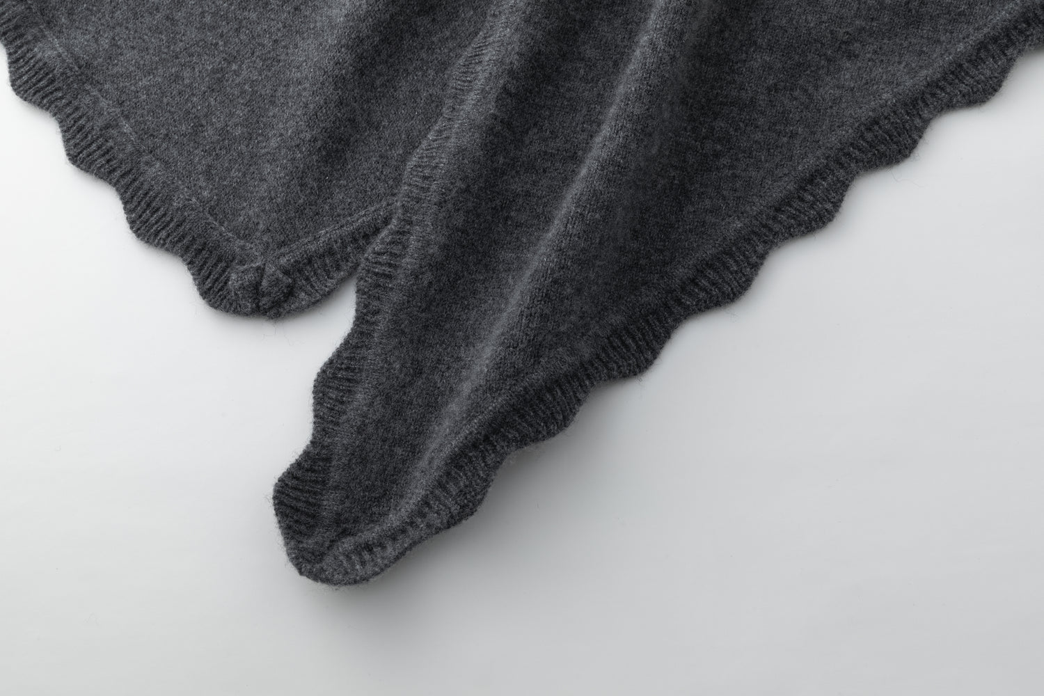 This wool and cashmere blend scarf features a subtle scalloped trim, adding a delicate and feminine touch. The soft fabric is perfect for layering during cooler weat...