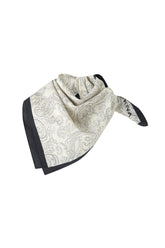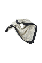 Silk scarf in light beige with a subtle parsley pattern, featuring bold black lines for a graphic, modern touch. Including brand logo. 60cmx60cm