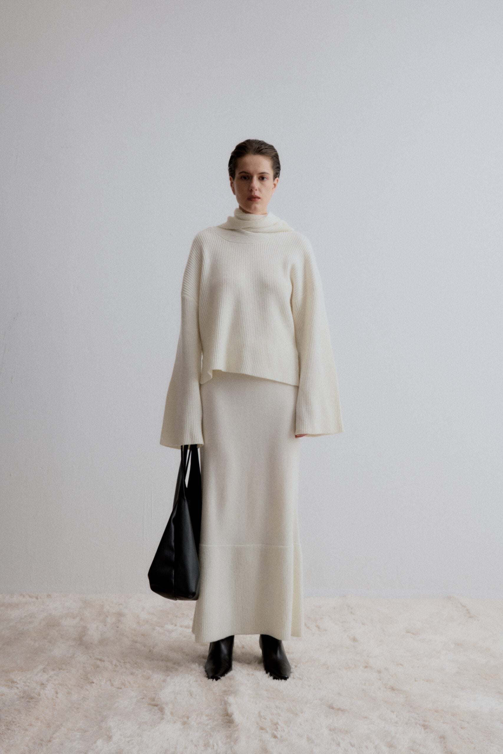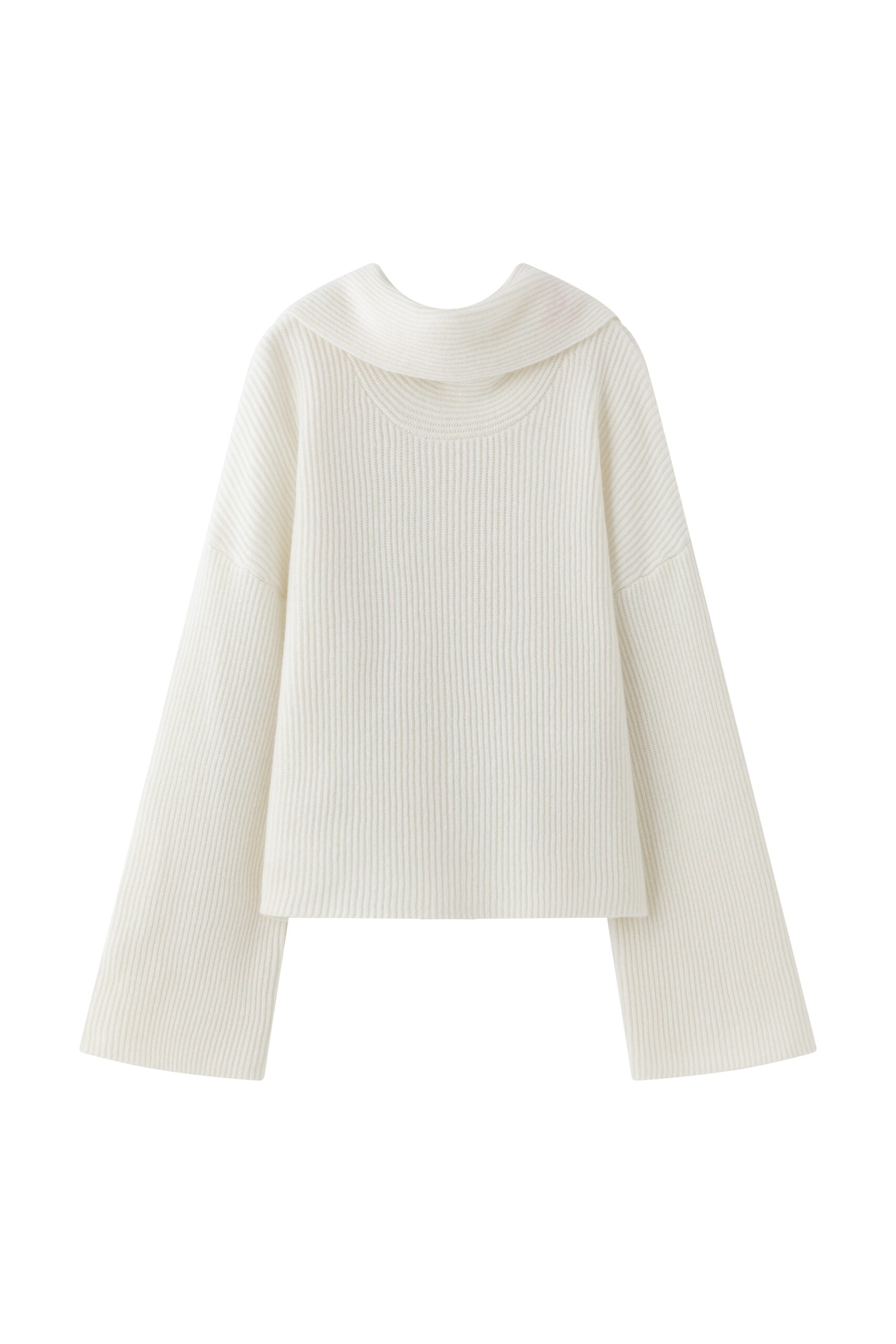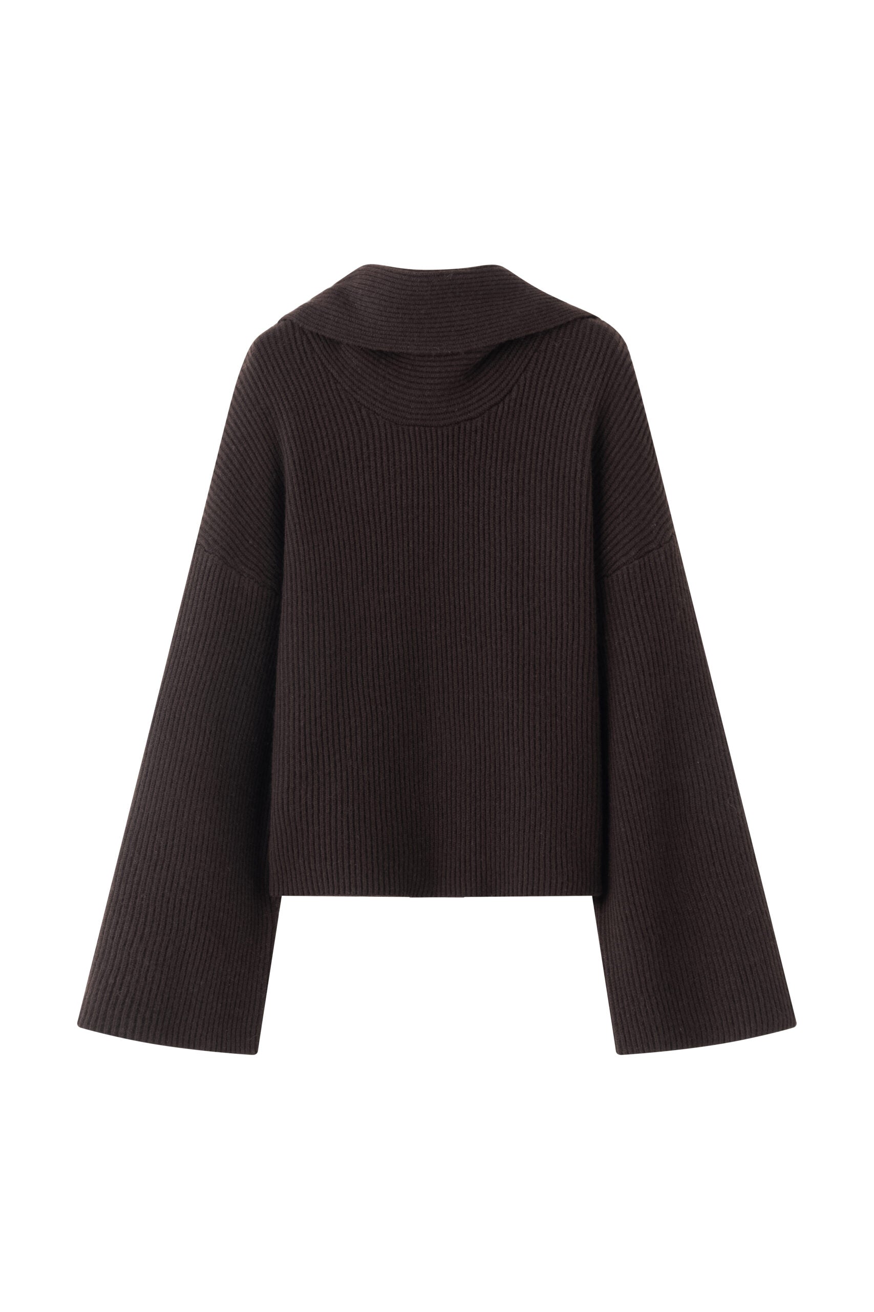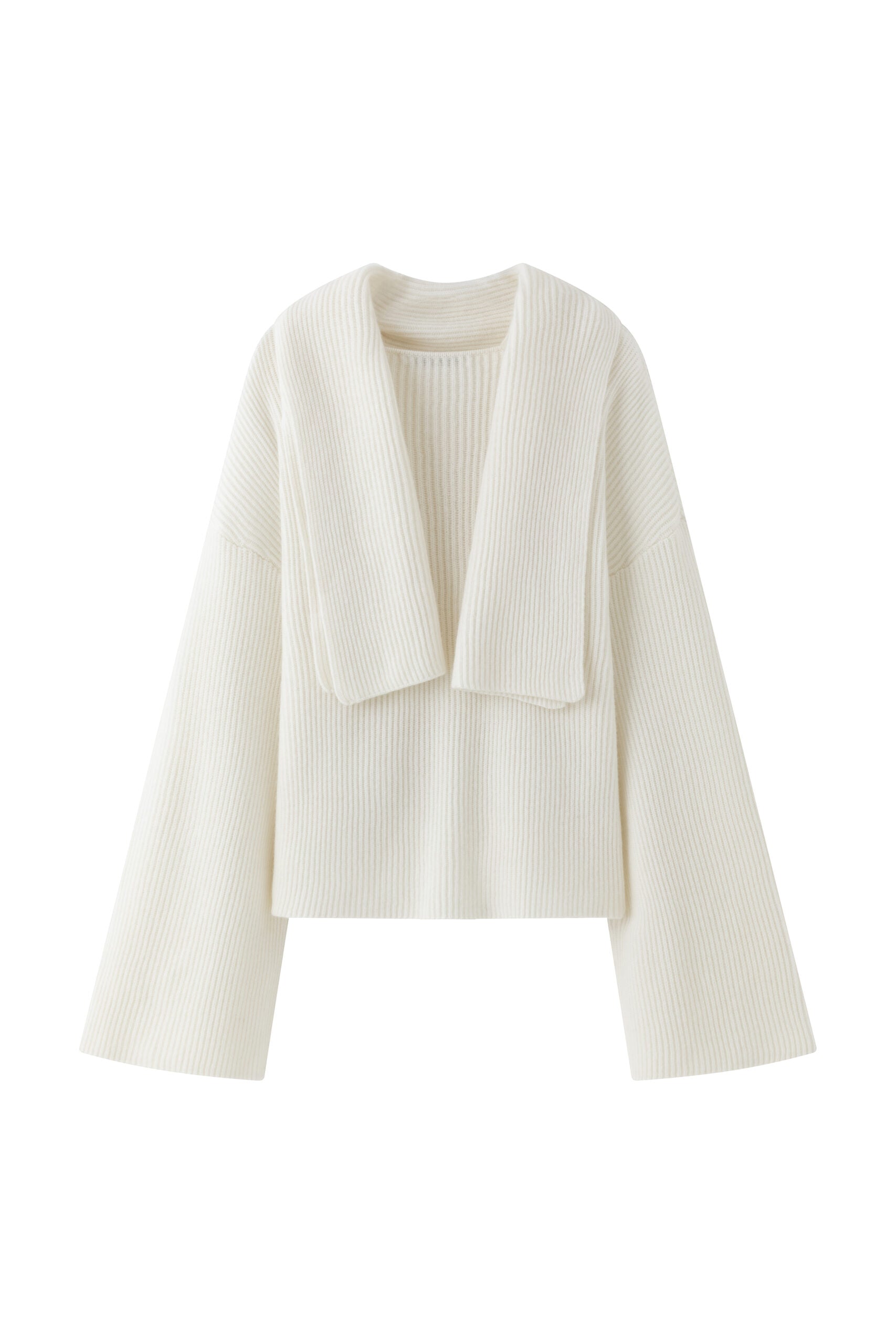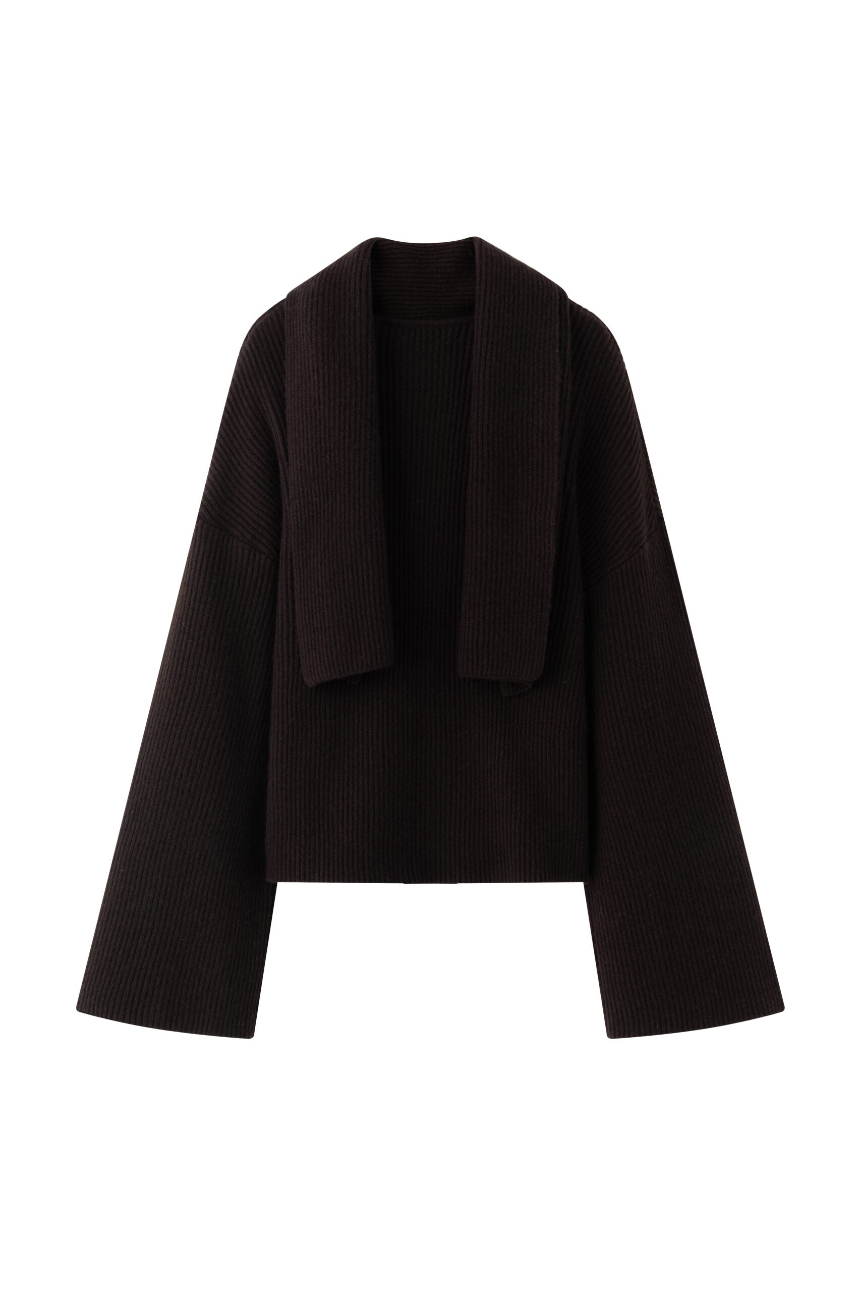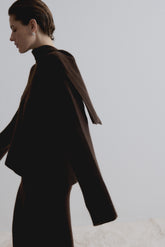 Discover our ribbed knit blouse crafted from a luxurious blend of cashmere and wool, designed with an embedded scarf, seamlessly integrated into its design, adding both functionality and...