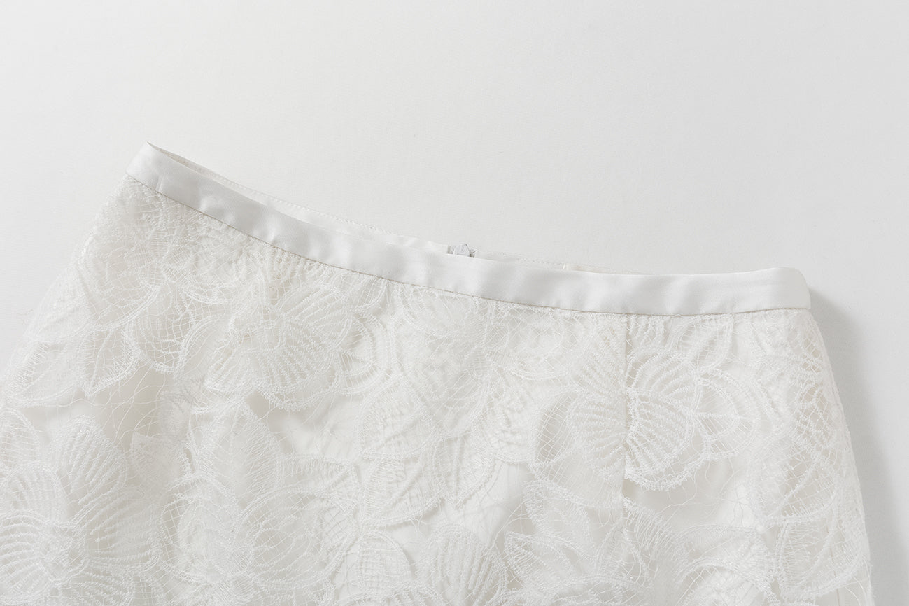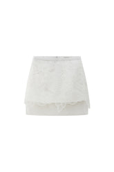 Short lace skirt with layered tulle. Both the lace and the lining are thicker which gives it a great structure. Style with a simple top, oversized T-shirt or shirt for balancing the roma...