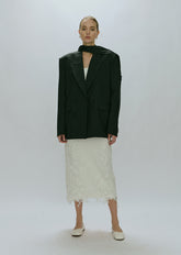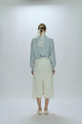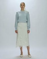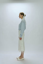 Midi skirt in cut out lace details for a unique and lively look. Thicker inner lining that makes the skirt more structured. Style the skirt with an oversized blazer or knit, stockings or...