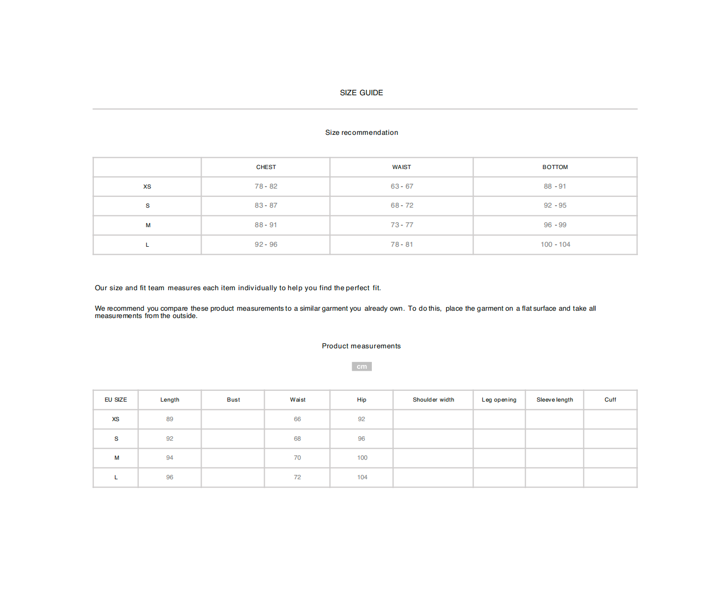 The model is 1.76 m tall and wears a size S. For more detailed sizing information, please consult our size charts.