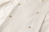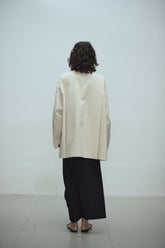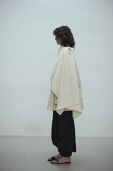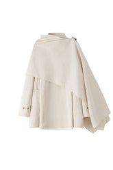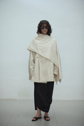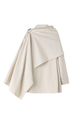 100% cotton beige midi trench coat with tortoise shell buttons, features an extra piece of soft cotton fabric that can be worn on top like a scarf or poncho. This added fabric provides e...