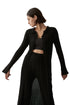 Ribbed cardigan with logo button in the front. Slit in sleeves and falls below the knees. Super slimming effect. Style with the matching trousers and a tank top underneath. Model is 176c...