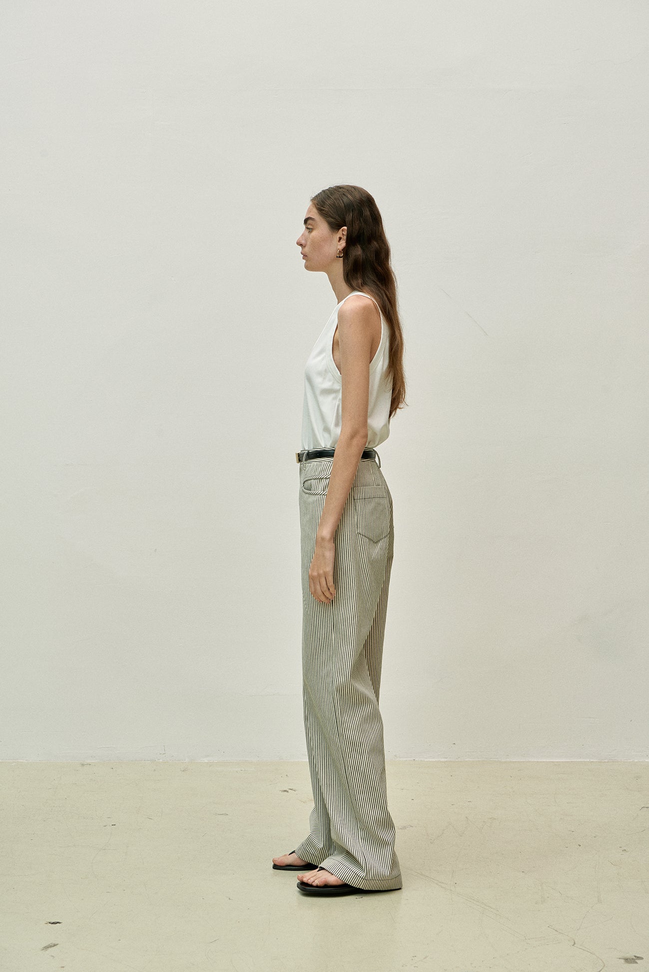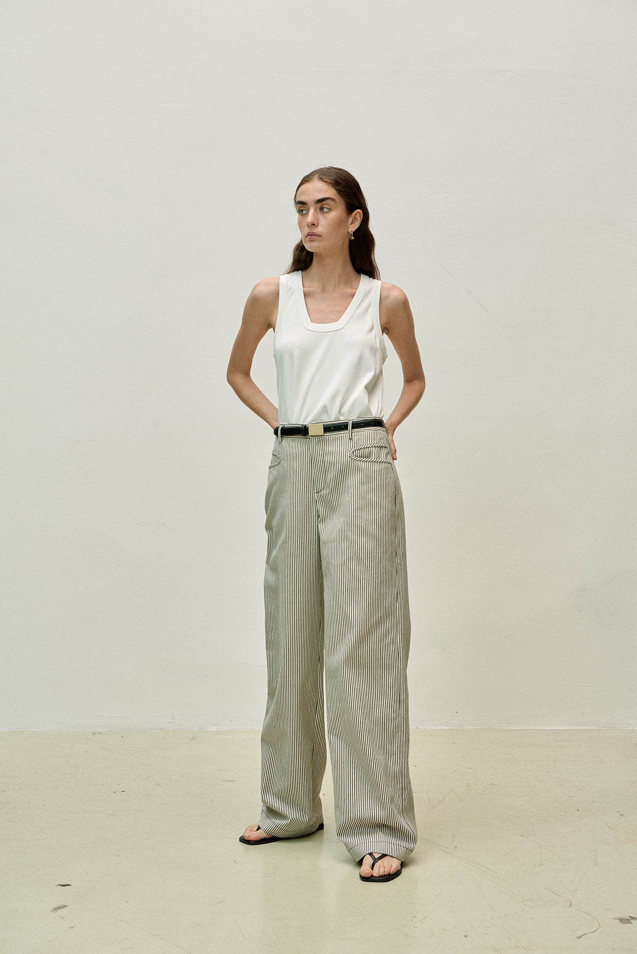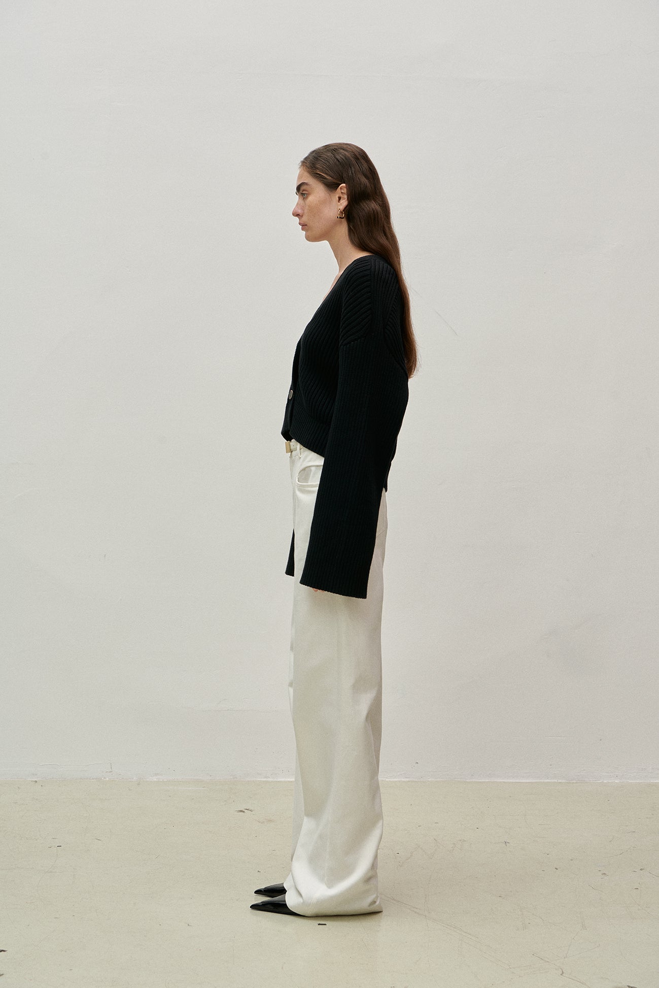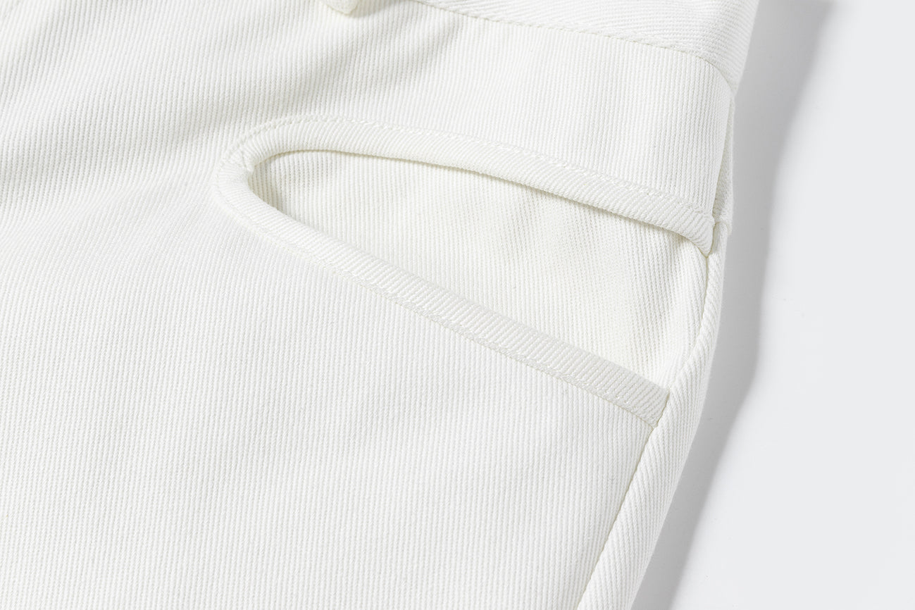 Wide cut jeans with rounded cut pocket details. Mid raise to high waist and not transparent. Decorated with a silver logo button. A great pair of essentials that goes with any top. Comes...