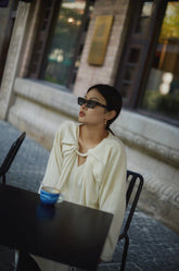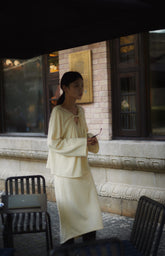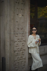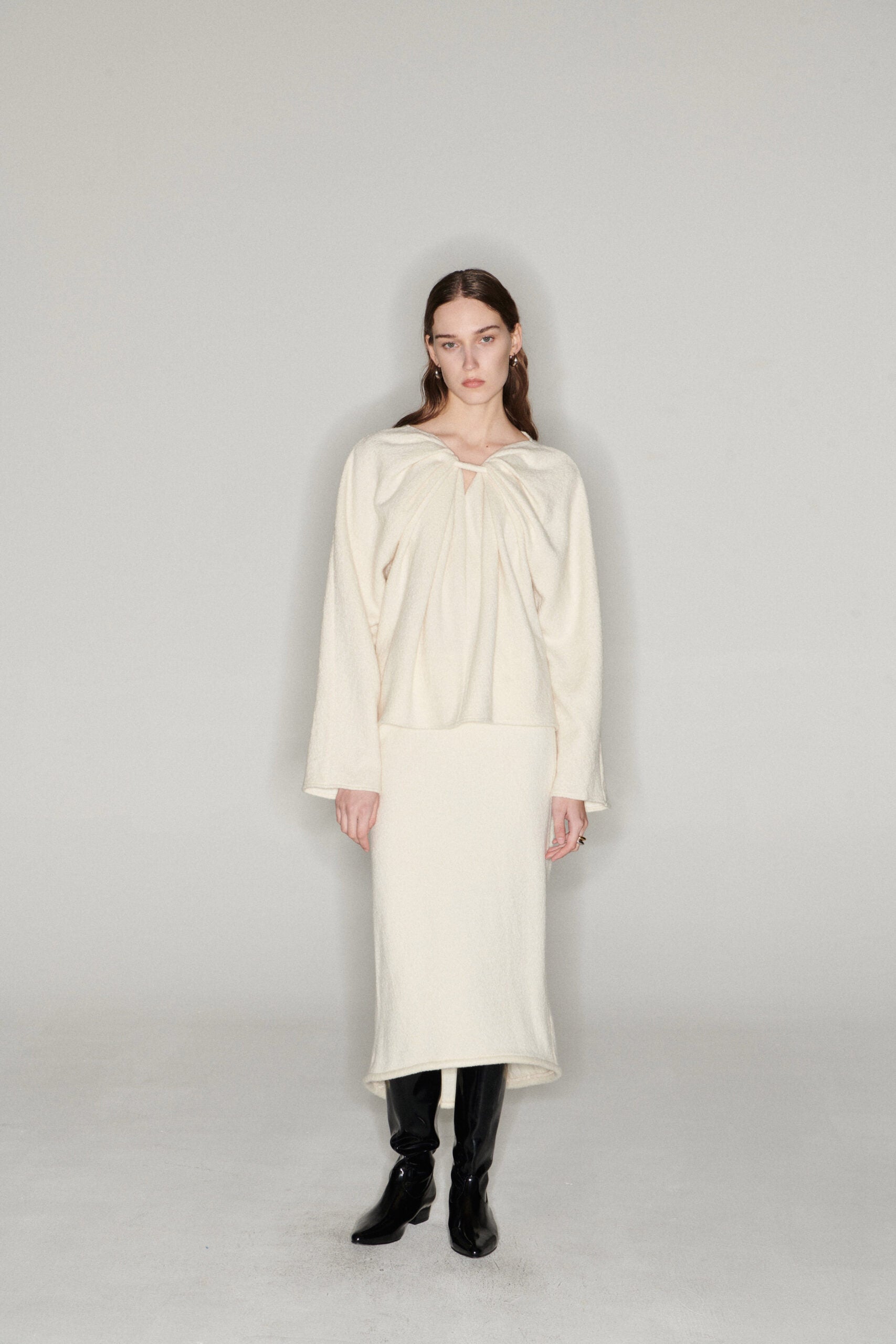 The signature Allie knot in a wool knitted fabric. Wear the top with the matching pencil skirt or a pair of trousers for a more cool look. Tips: Go up one or two sizes for a more oversiz...