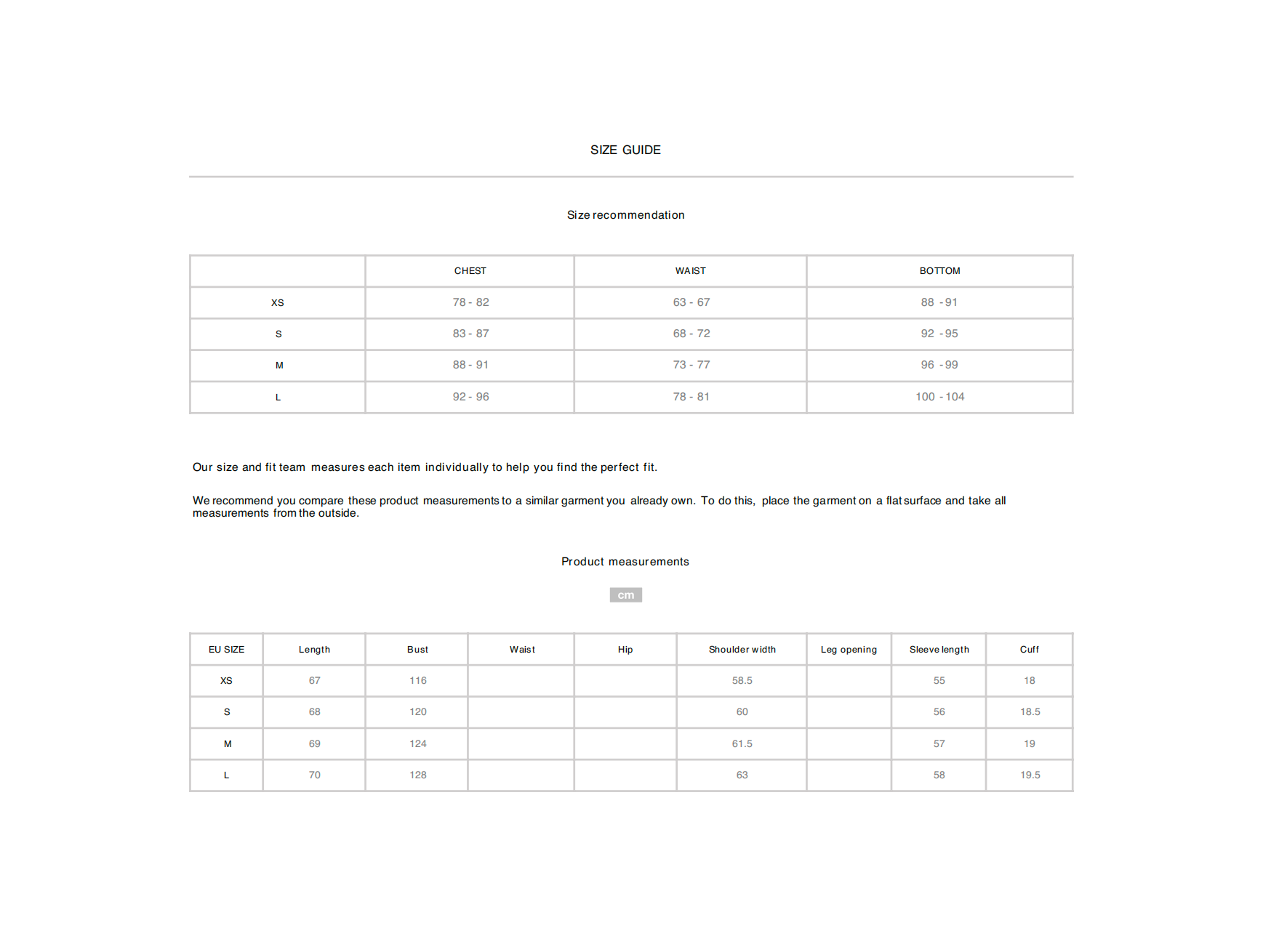 The model is 1.76 m tall and wears a size S. For more detailed sizing information, please consult our size charts.