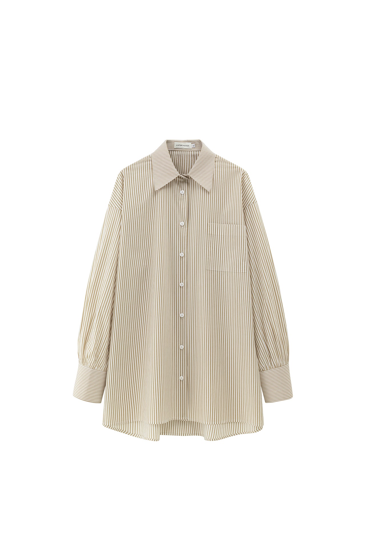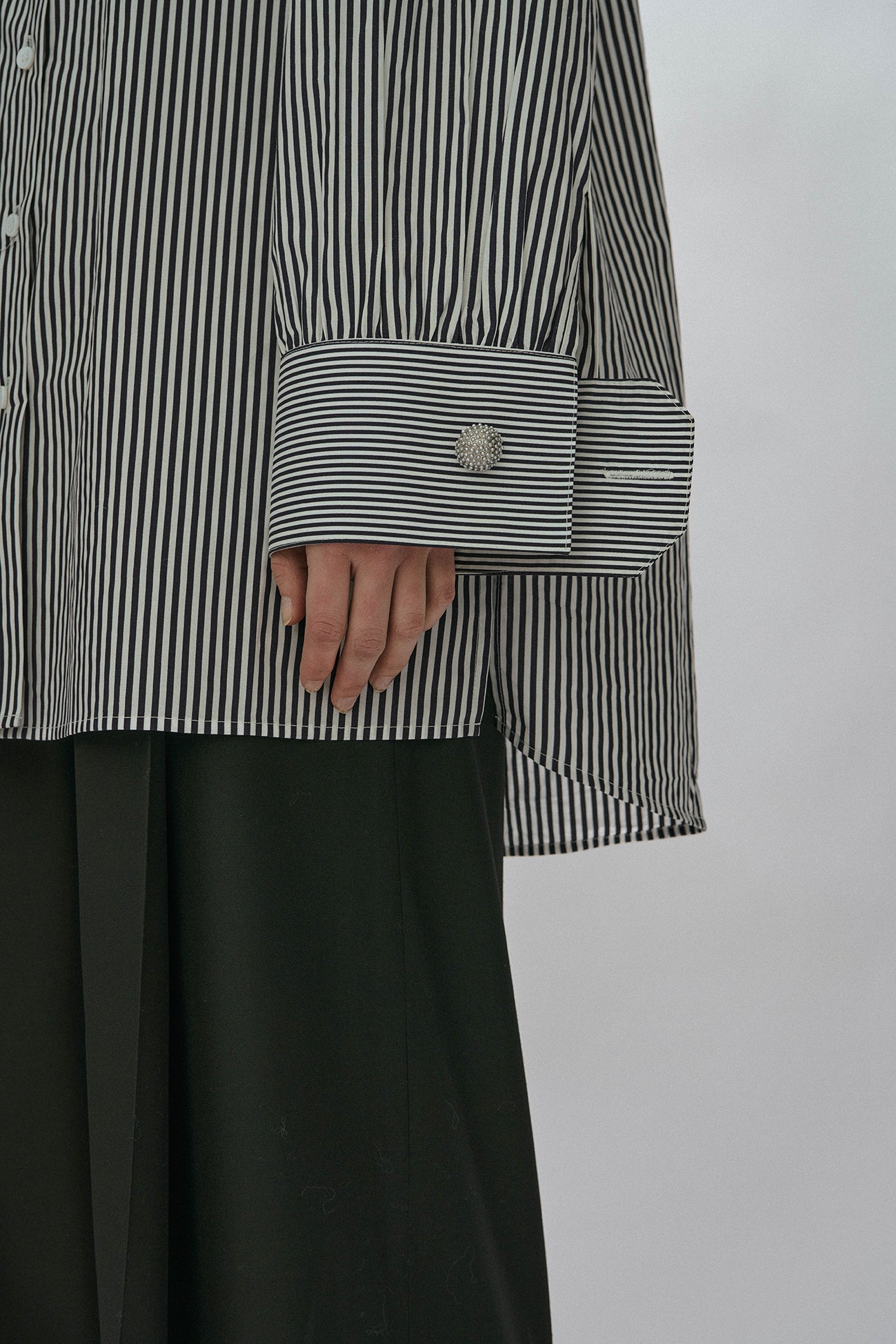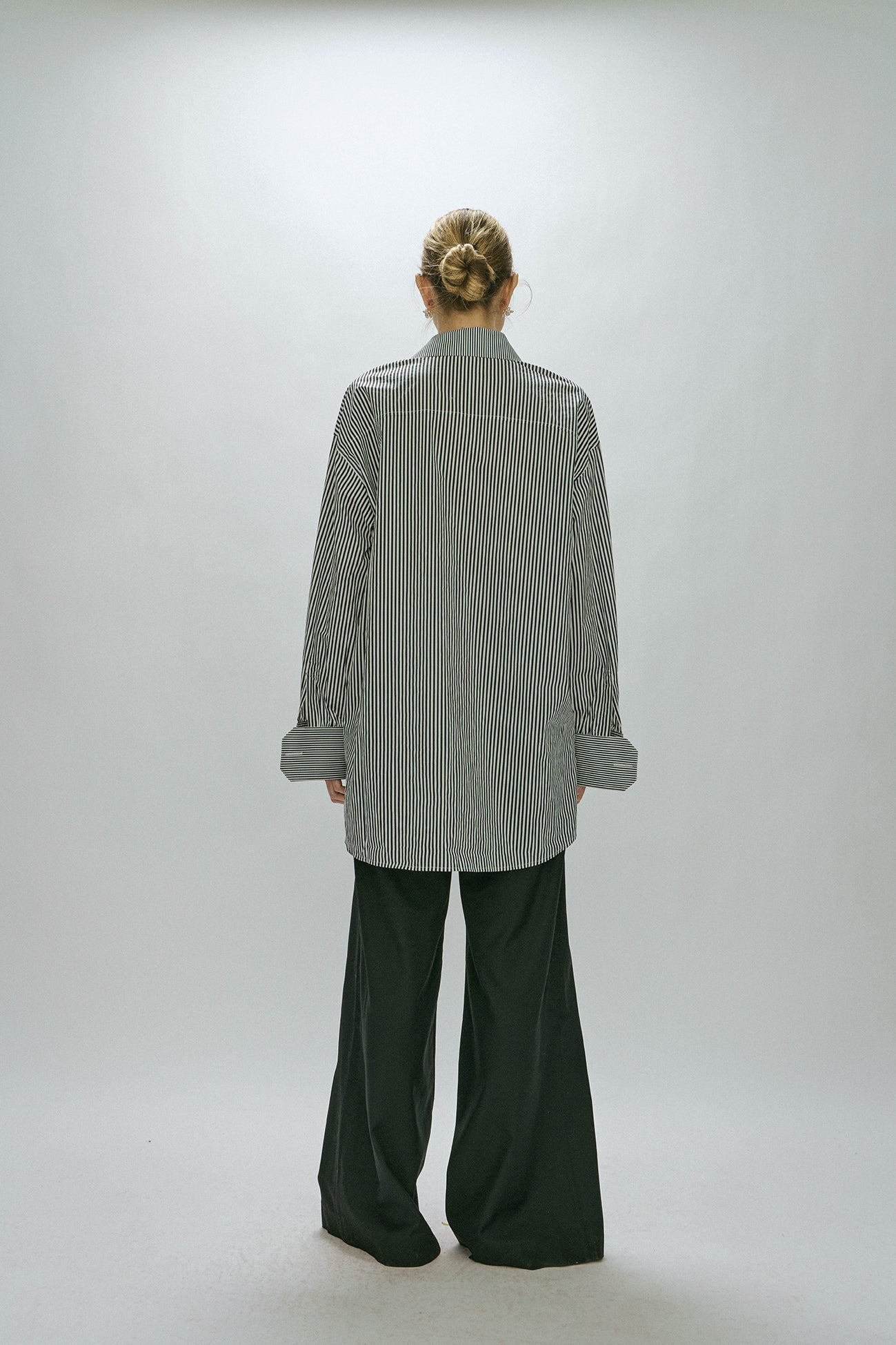 Oversized shirt with wide wrinkled cuffs decorated with a silver pearl button. Long in style and makes the perfect everyday shirt for work. Comes in three colors. Model is 176cm tall and...